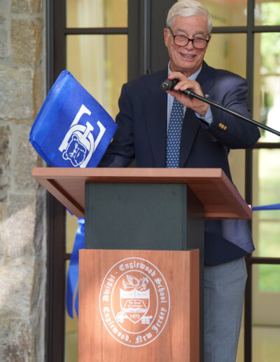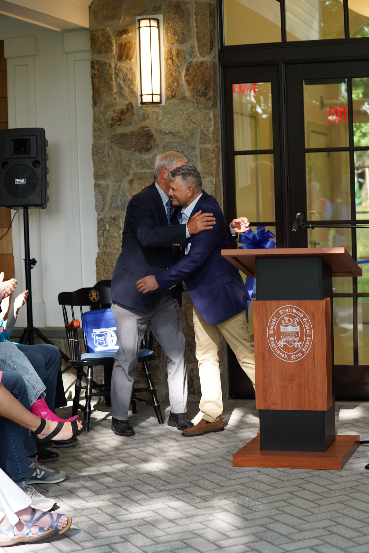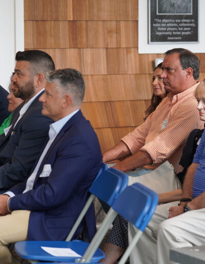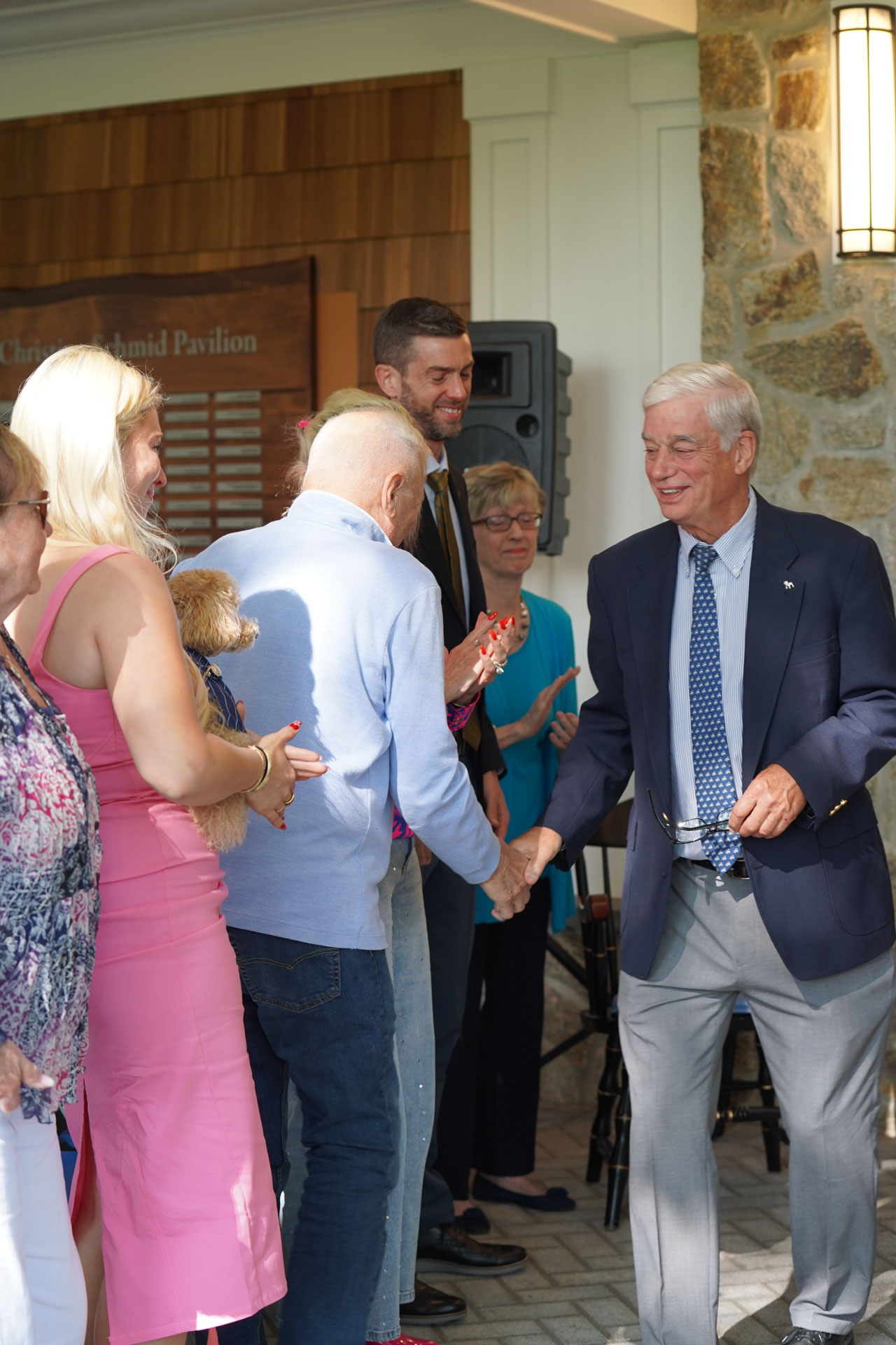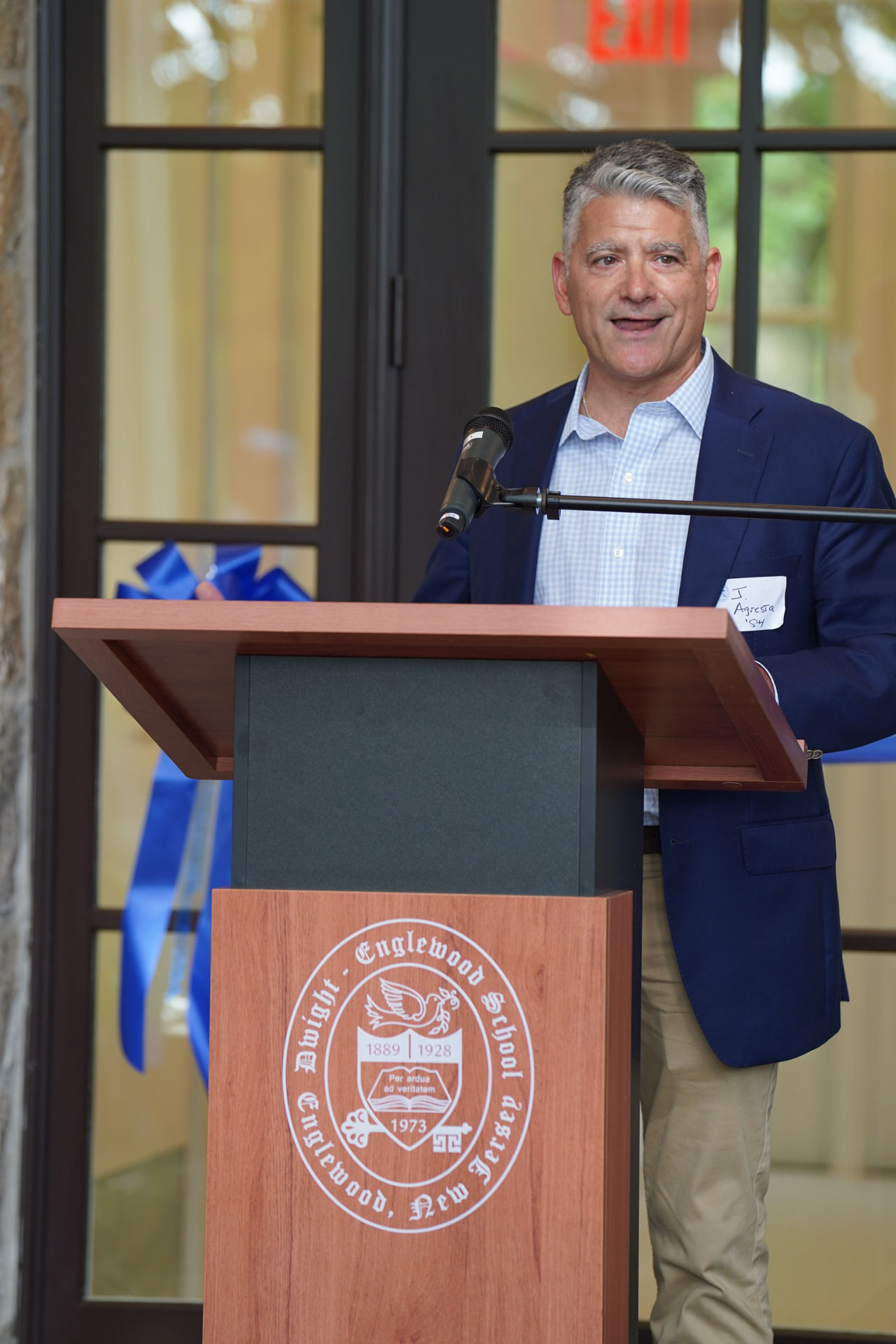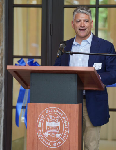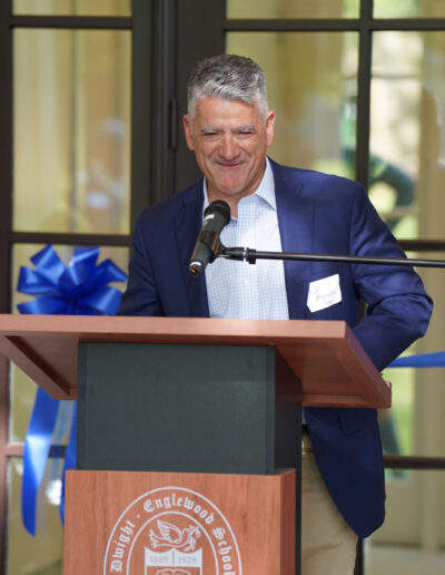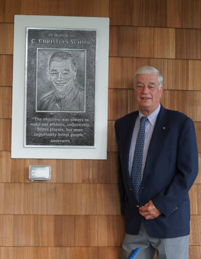 Other event highlights included words from Jay Agresta ’84 P ’22, ’28, who described Schmiddy as a pioneer and “a builder of programs, of teams, of opportunities, and mostly of character in his students and his players.” He also acknowledged D-E leadership and the Schmid Pavilion committee members, including Maria Sanchez Gardner ’78 and former D-E Interim Head of School / Assistant Head of School for Advancement Pat Boig, for working toward the completion of this years-long project.