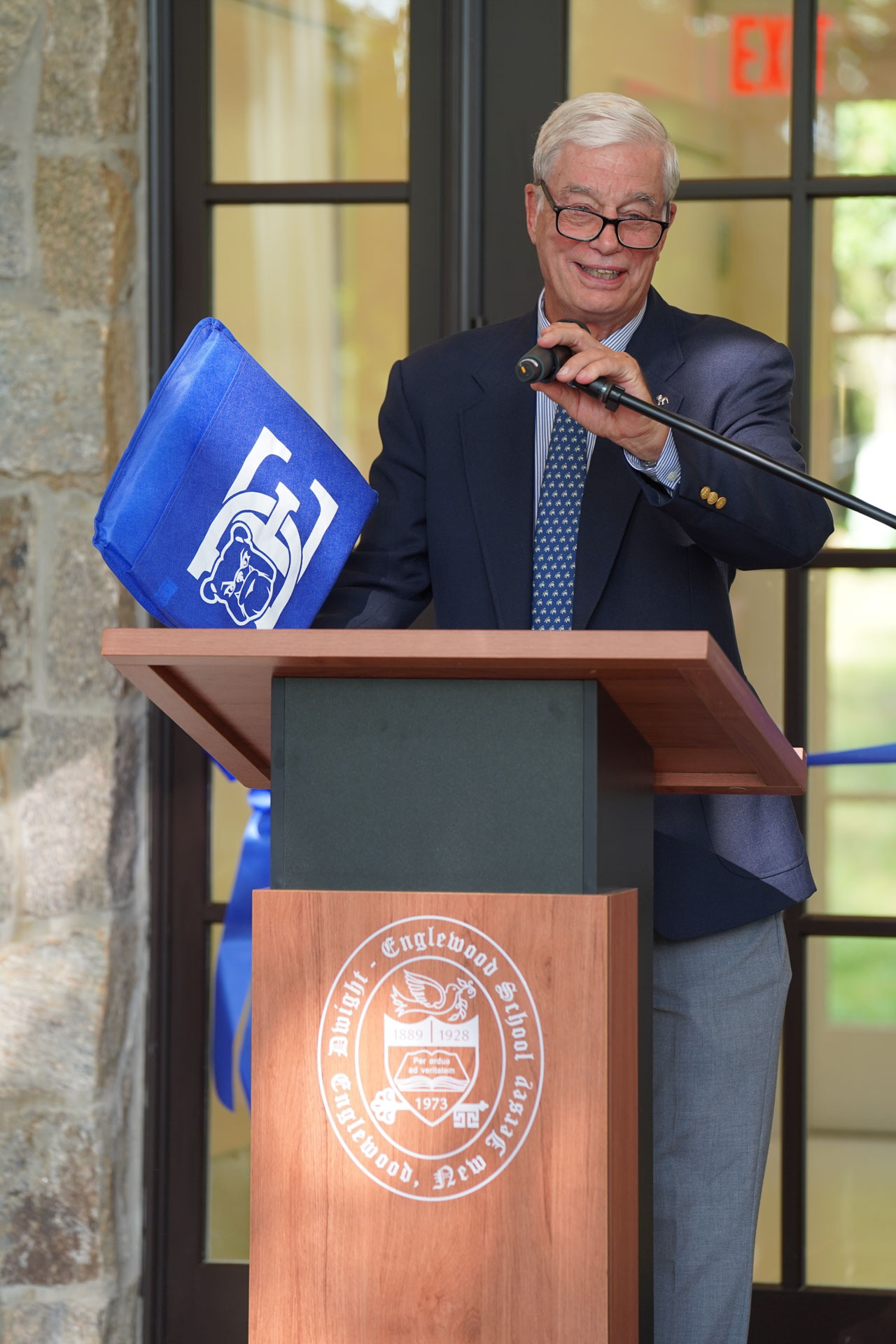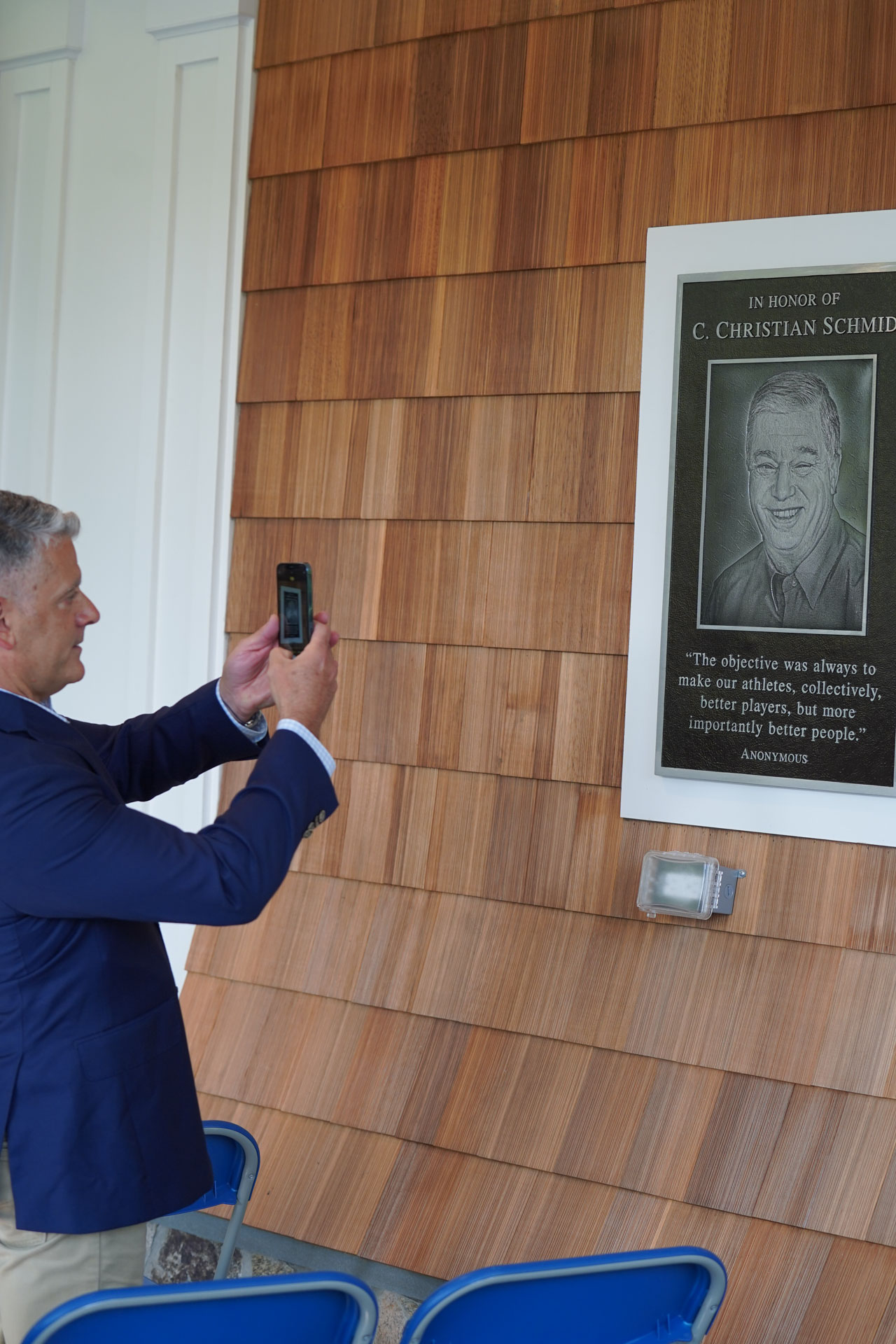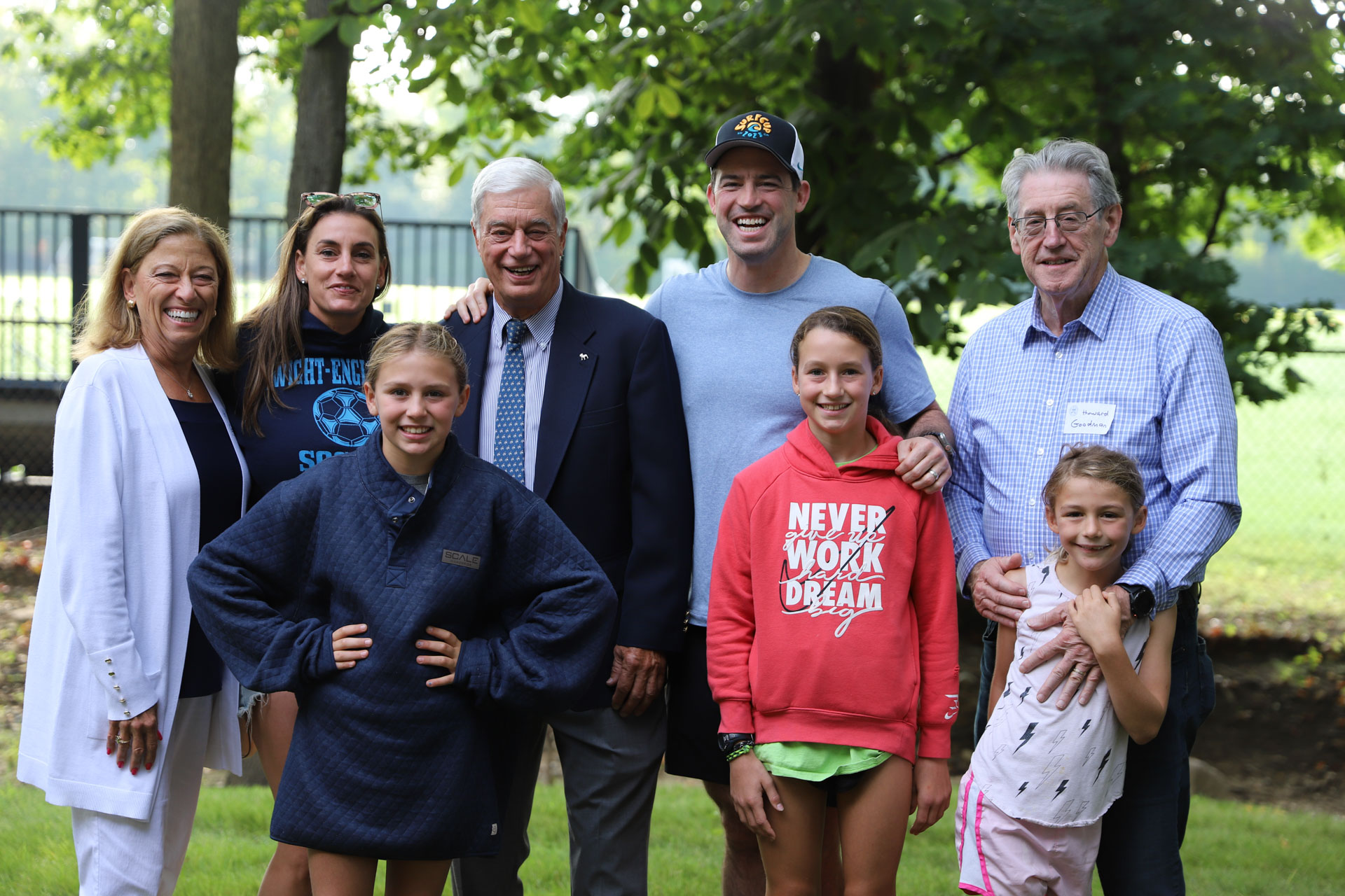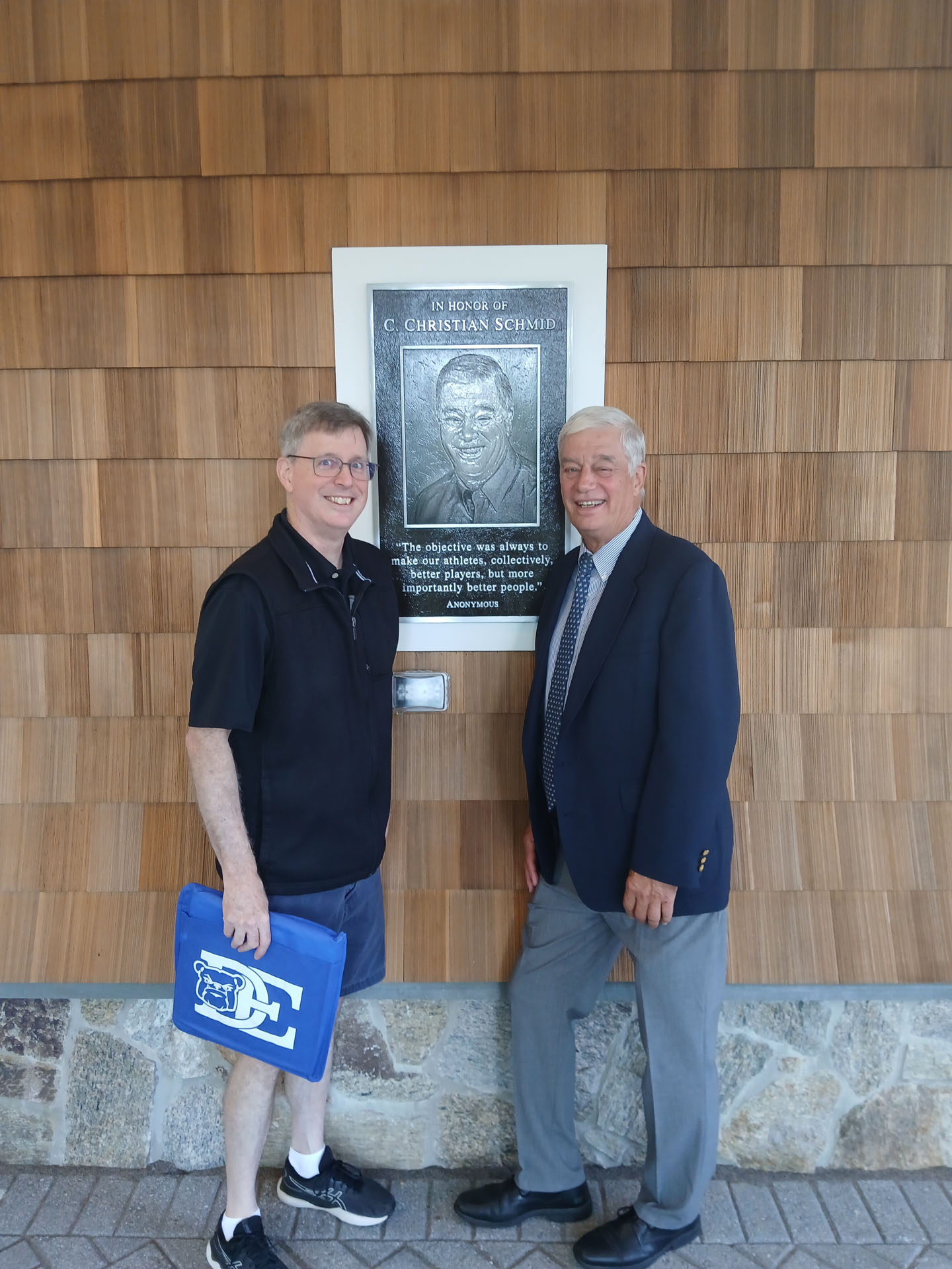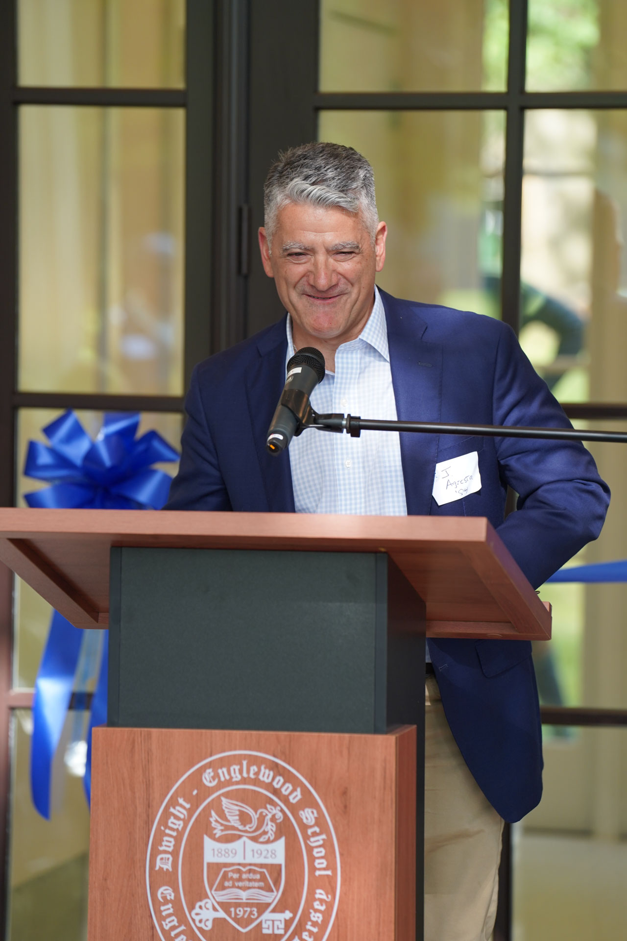 Other event highlights included words from Jay Agresta ’84 P ’22, ’28, who described Schmiddy as a pioneer and “a builder of programs, of teams, of opportunities, and mostly of character in his students and his players.” He also acknowledged D-E leadership and the Schmid Pavilion committee members, including Maria Sanchez Gardner ’78 and former D-E Interim Head of School / Assistant Head of School for Advancement Pat Boig, for working toward the completion of this years-long project.