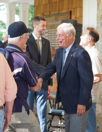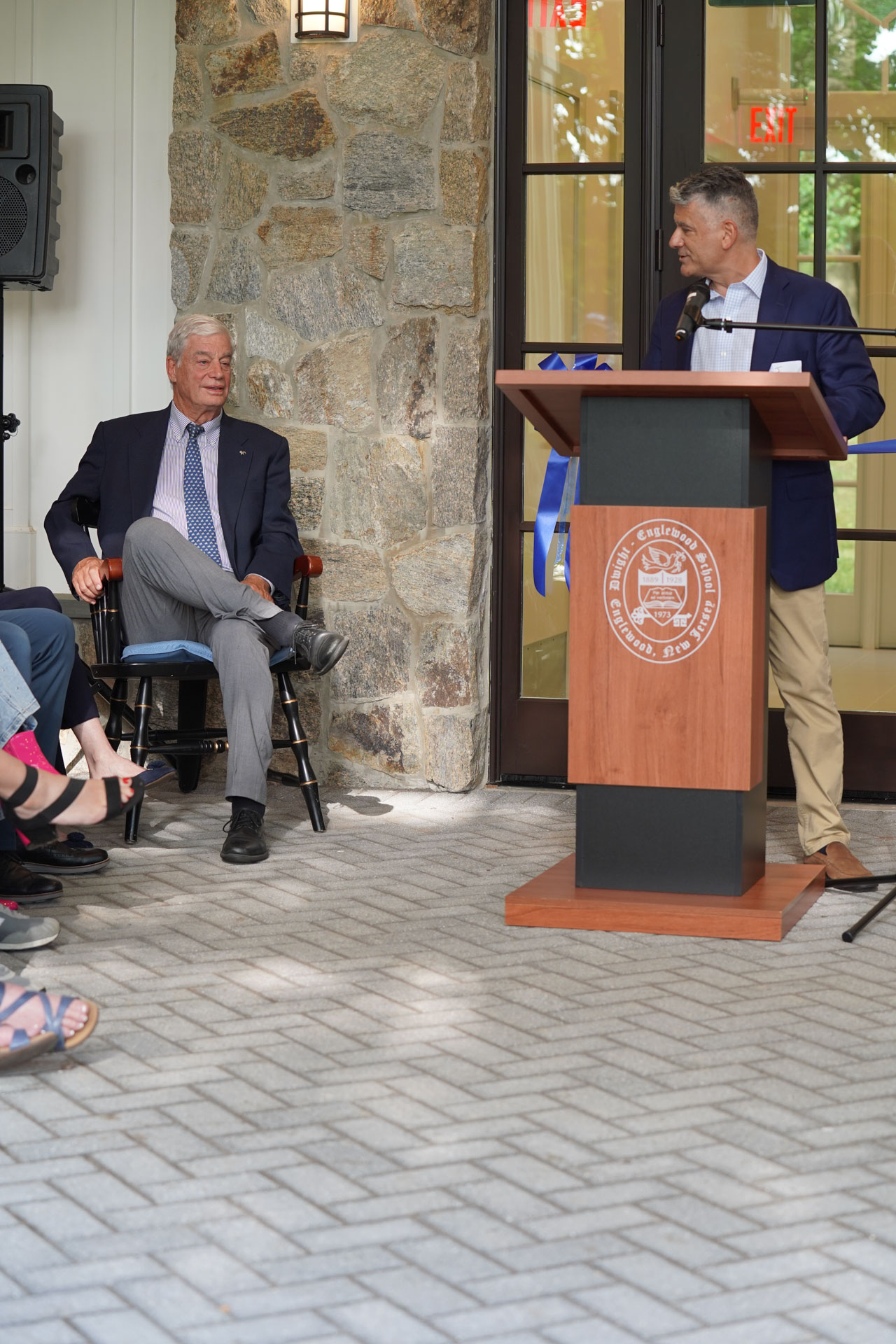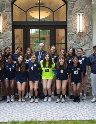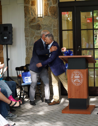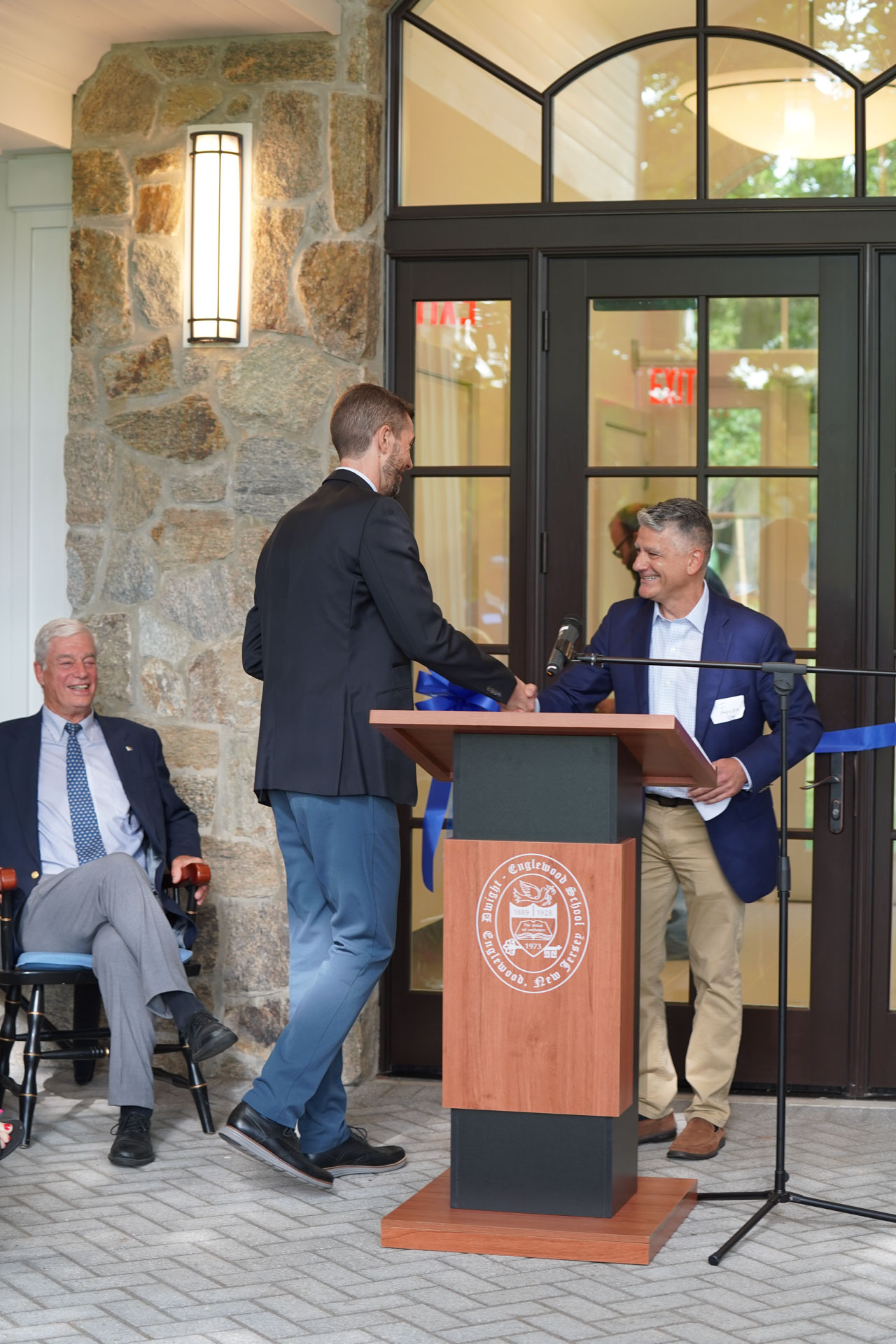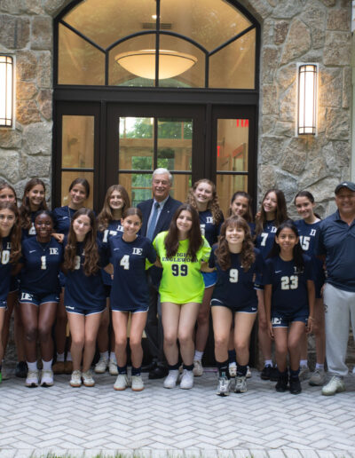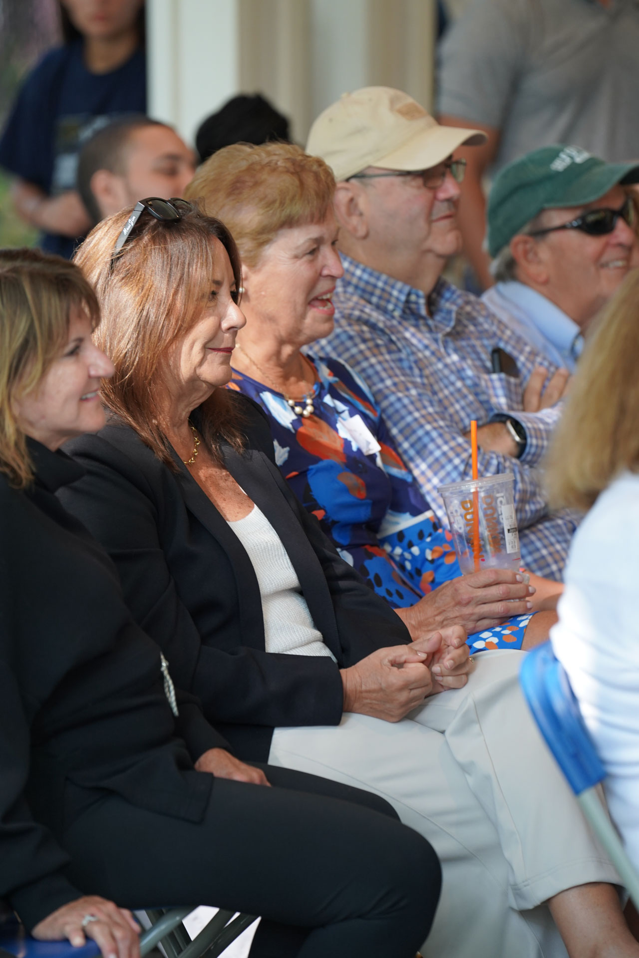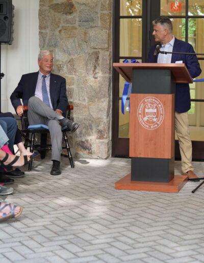 Other event highlights included words from Jay Agresta ’84 P ’22, ’28, who described Schmiddy as a pioneer and “a builder of programs, of teams, of opportunities, and mostly of character in his students and his players.” He also acknowledged D-E leadership and the Schmid Pavilion committee members, including Maria Sanchez Gardner ’78 and former D-E Interim Head of School / Assistant Head of School for Advancement Pat Boig, for working toward the completion of this years-long project.