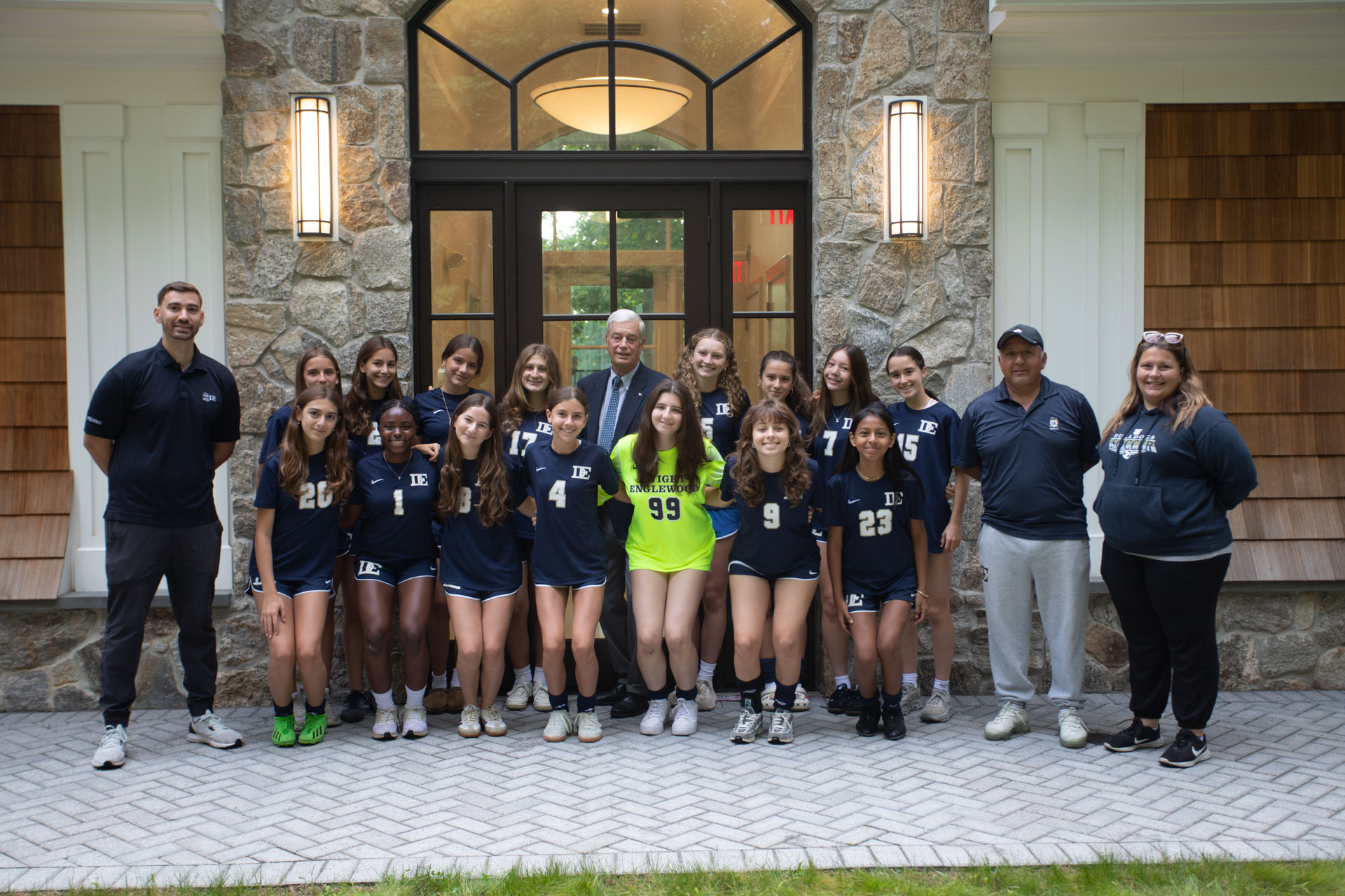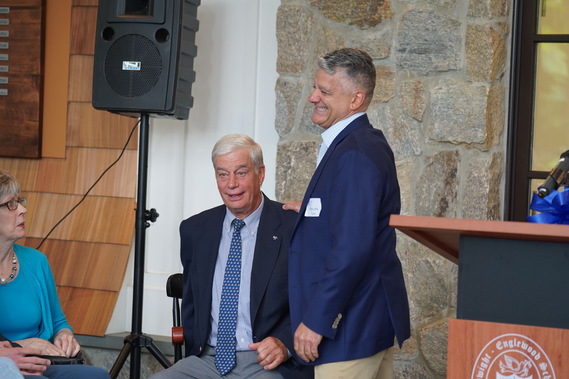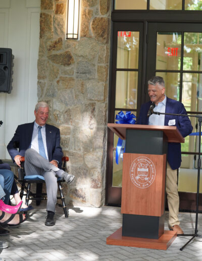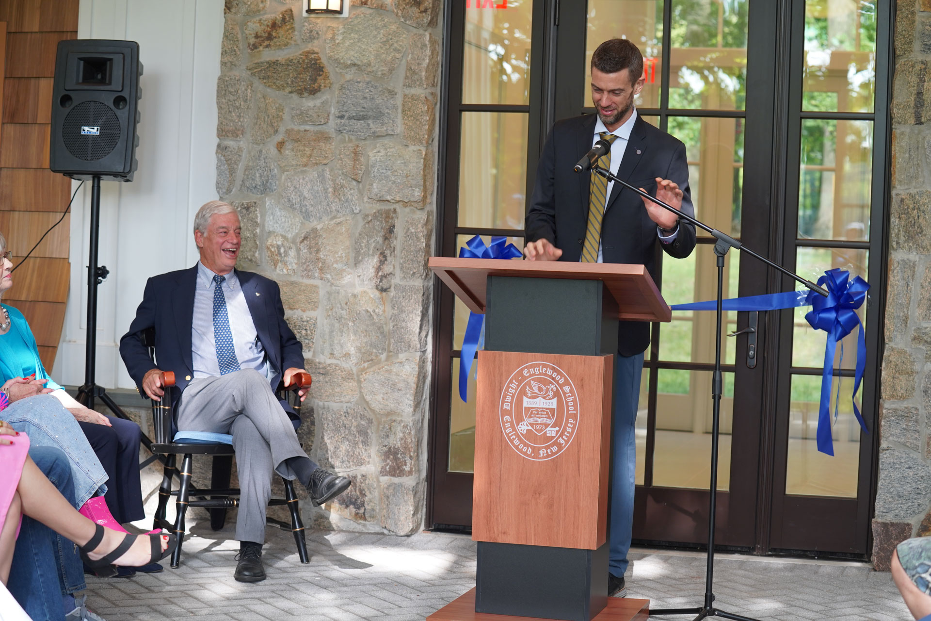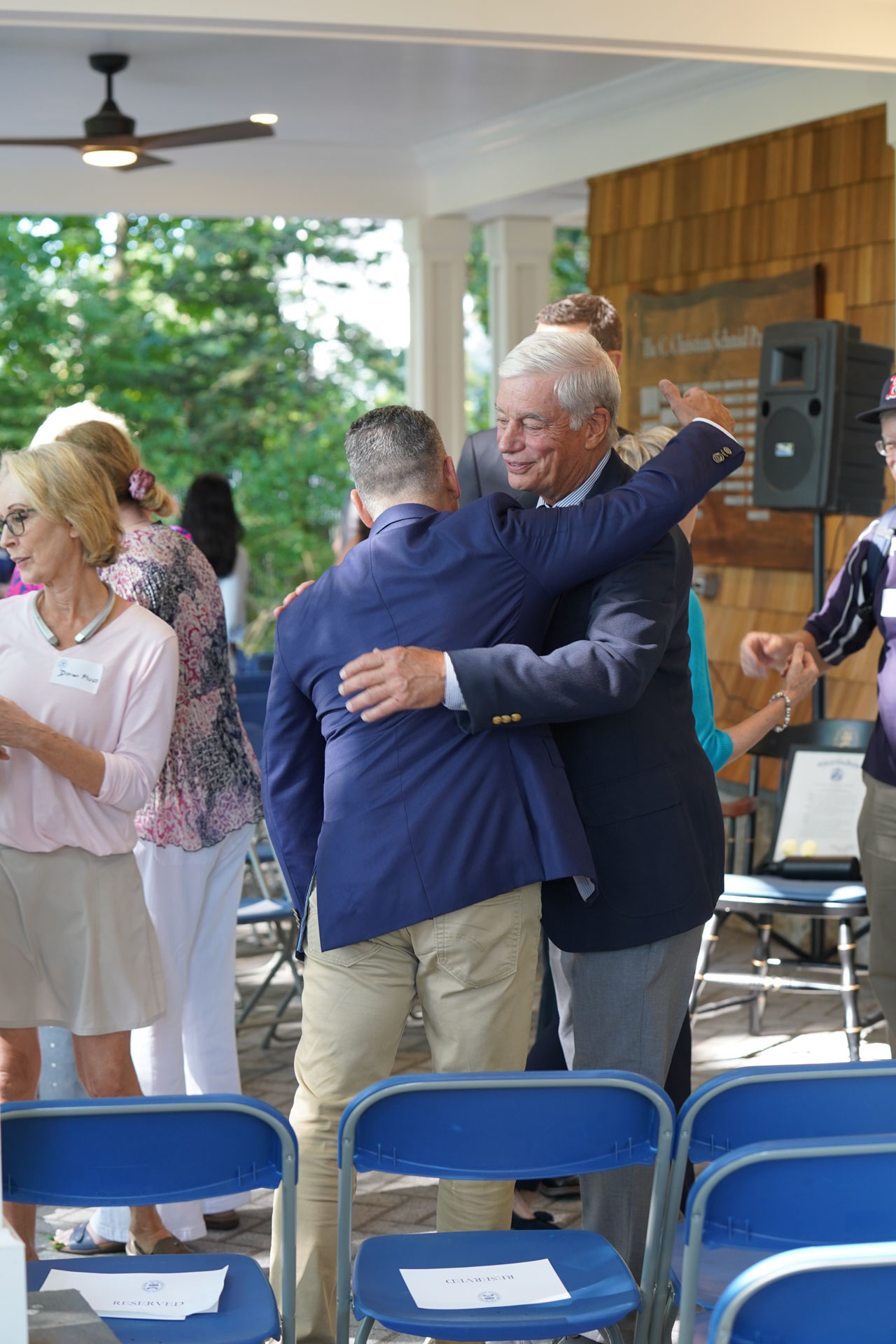 Other event highlights included words from Jay Agresta ’84 P ’22, ’28, who described Schmiddy as a pioneer and “a builder of programs, of teams, of opportunities, and mostly of character in his students and his players.” He also acknowledged D-E leadership and the Schmid Pavilion committee members, including Maria Sanchez Gardner ’78 and former D-E Interim Head of School / Assistant Head of School for Advancement Pat Boig, for working toward the completion of this years-long project.