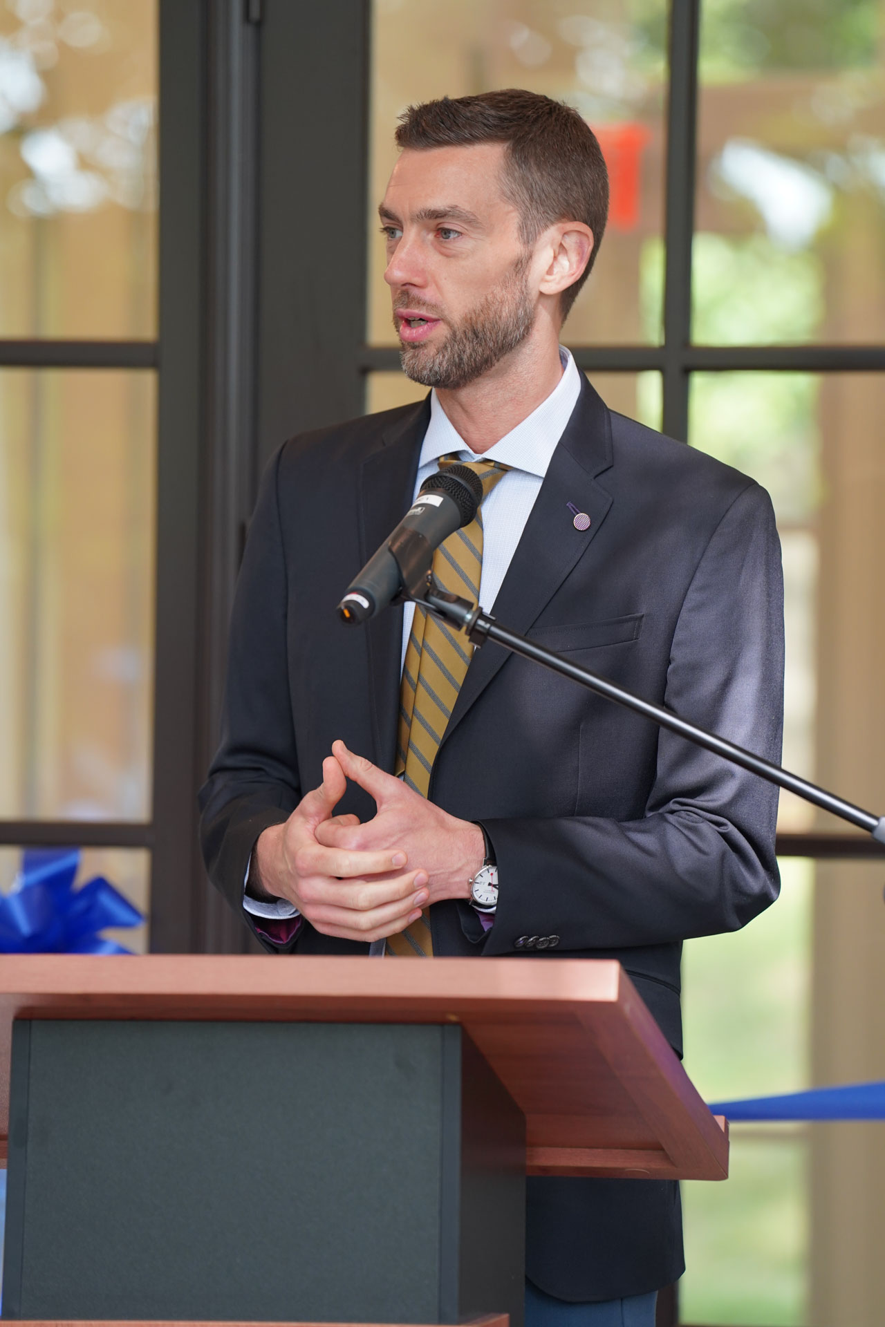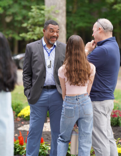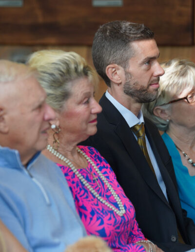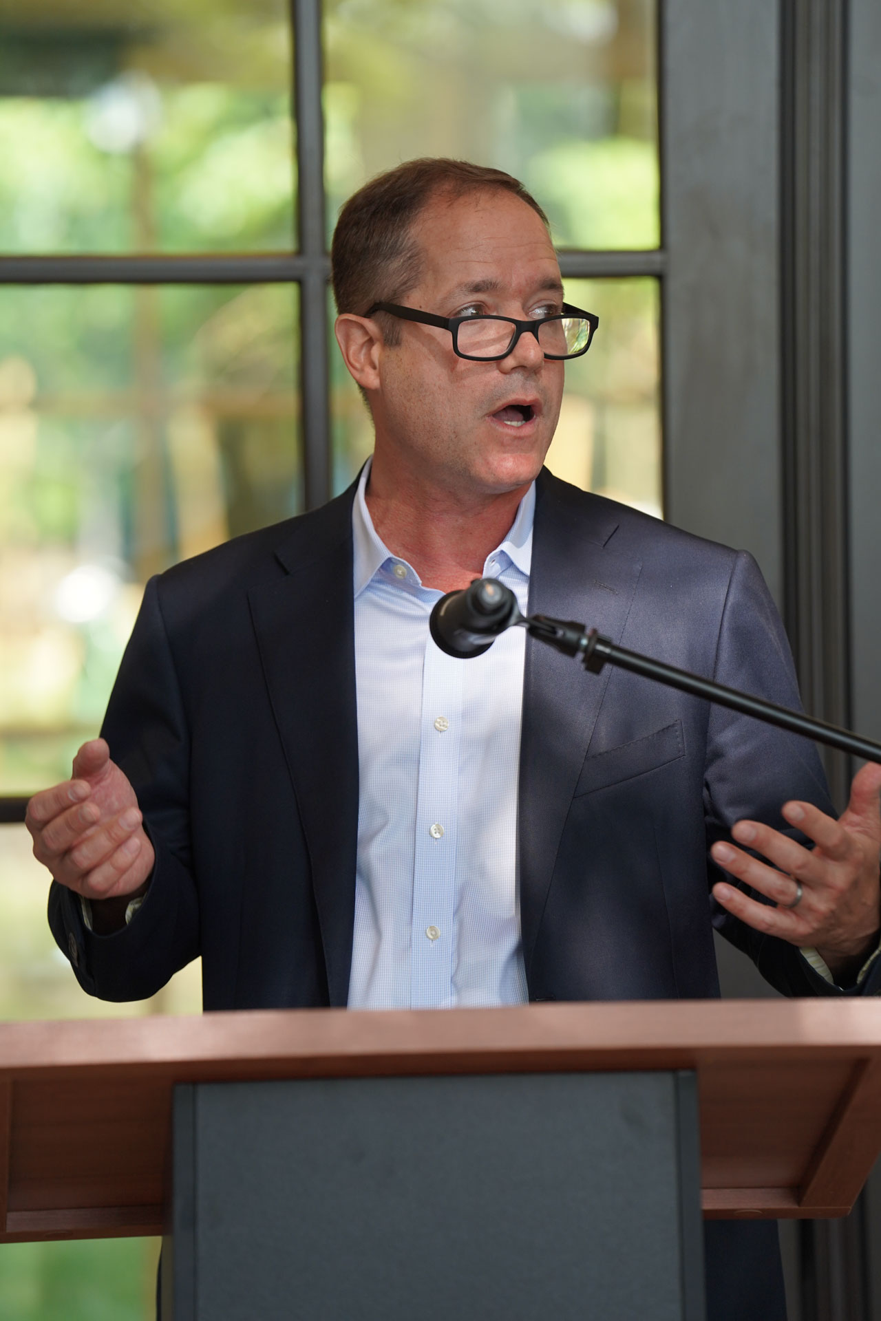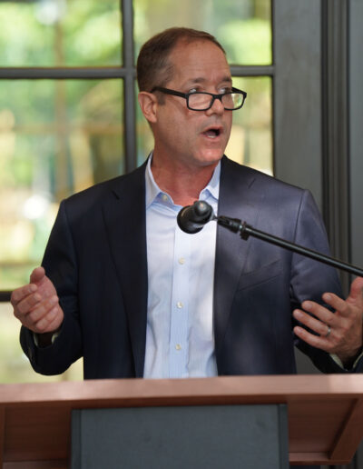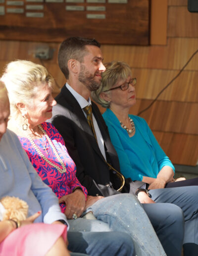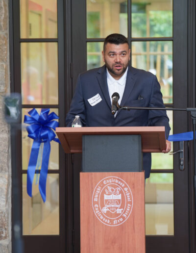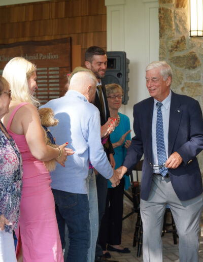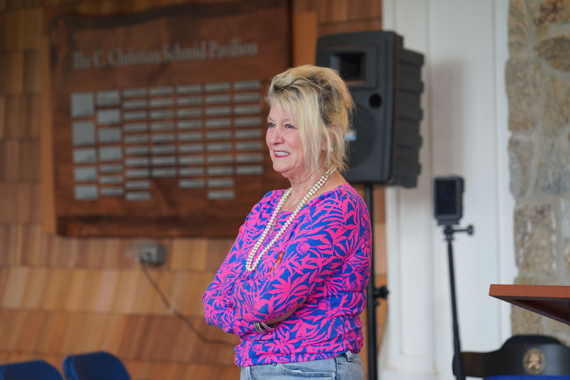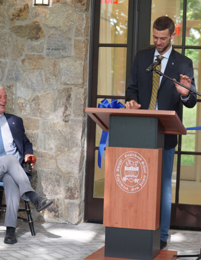 Other event highlights included words from Jay Agresta ’84 P ’22, ’28, who described Schmiddy as a pioneer and “a builder of programs, of teams, of opportunities, and mostly of character in his students and his players.” He also acknowledged D-E leadership and the Schmid Pavilion committee members, including Maria Sanchez Gardner ’78 and former D-E Interim Head of School / Assistant Head of School for Advancement Pat Boig, for working toward the completion of this years-long project.