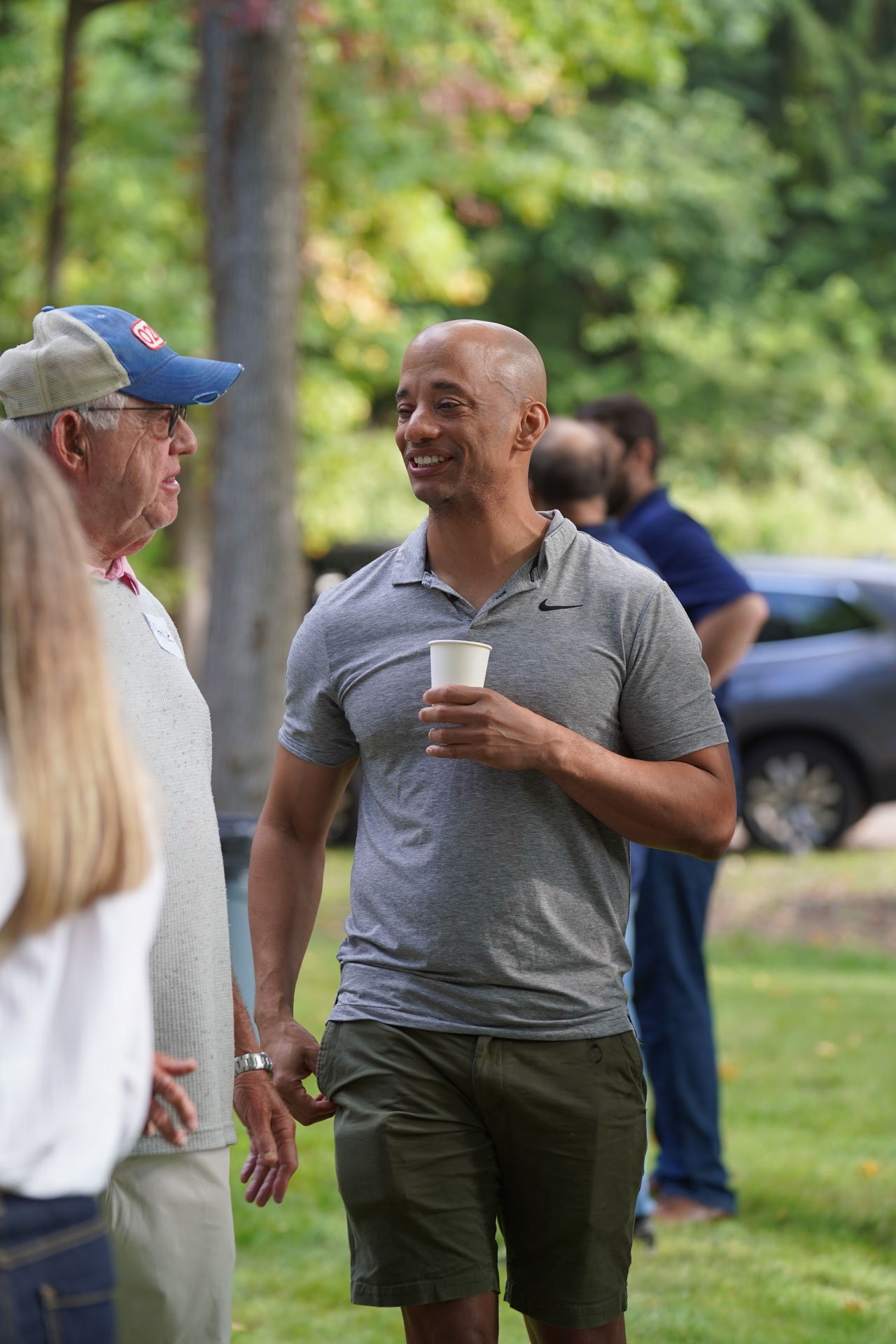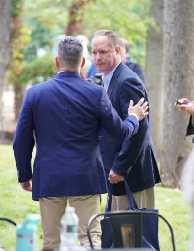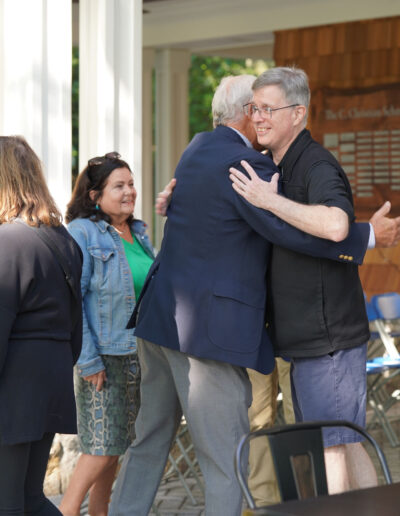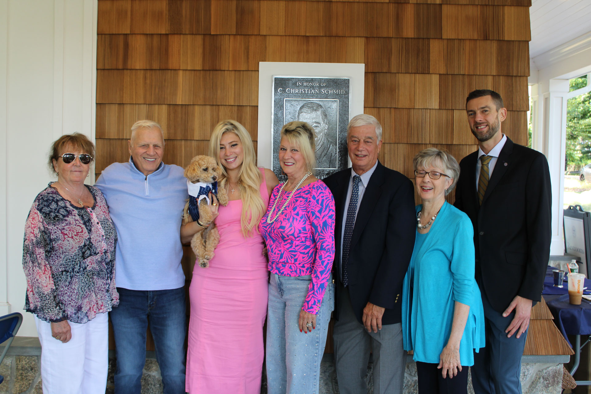Beautiful weather was in play for the official dedication of the C. Christian Schmid Pavilion at Solomon Field on Saturday, Sept. 13, 2025. The guest of honor, longtime former D-E Athletic Director and Coach Chris Schmid (aka “Schmiddy”), was joined by his family and more than 150 donors, alumni, students, current and former faculty/staff, and friends for this milestone event.
