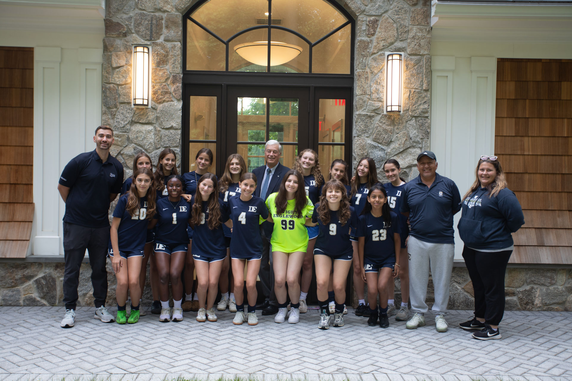 JD Sand, D-E Athletic Director, stood up next to provide amusing anecdotes and standout achievements from Schmiddy’s 40+ years at D-E, including turning “Dwight-Englewood Soccer into a dynasty before dynasties were cool”; racking up private school state championships, league titles, and multiple Coach of the Year awards; joining the 300-win club; and getting himself into three Hall of Fames.