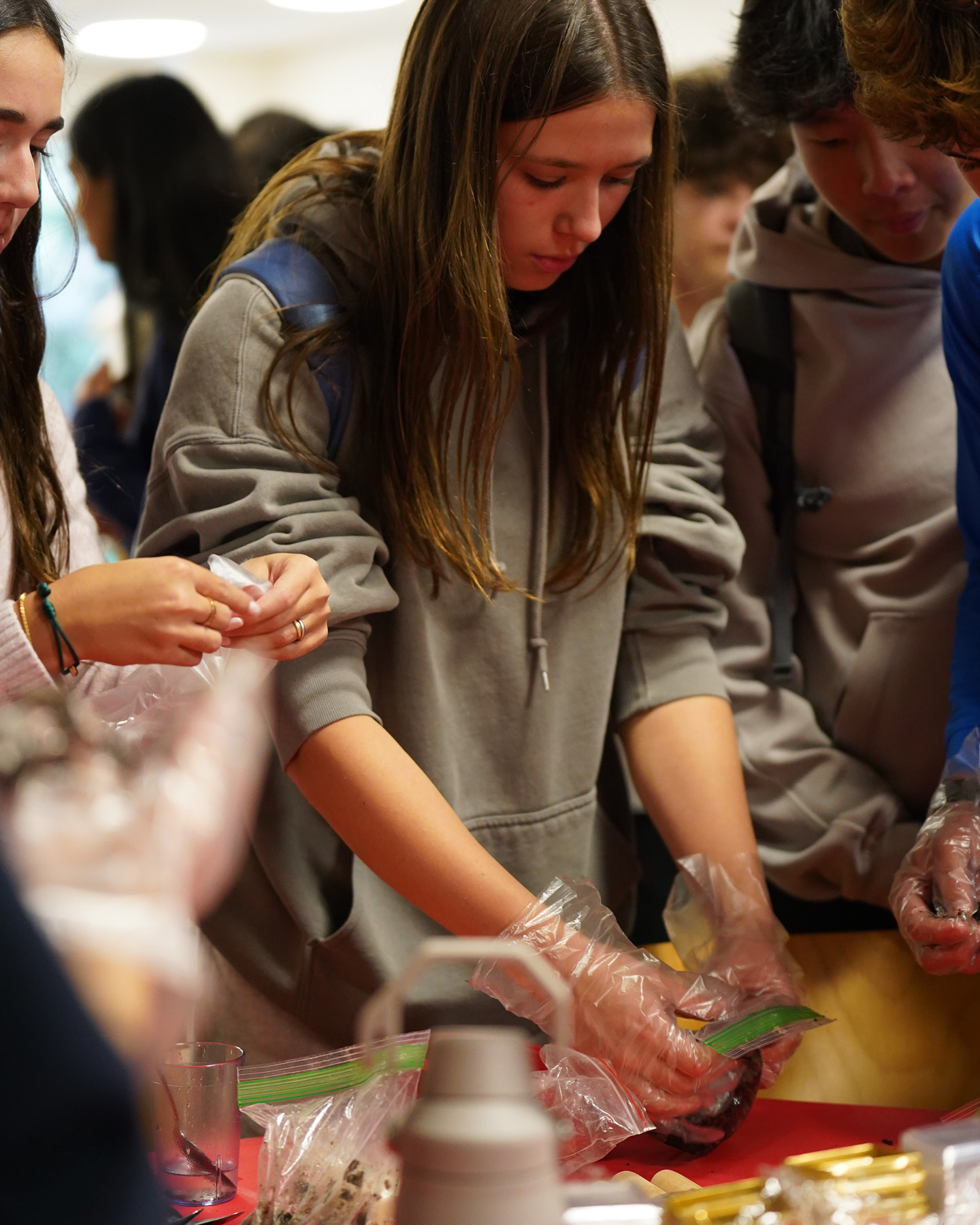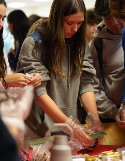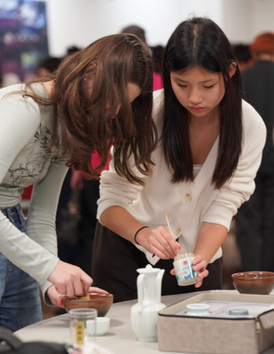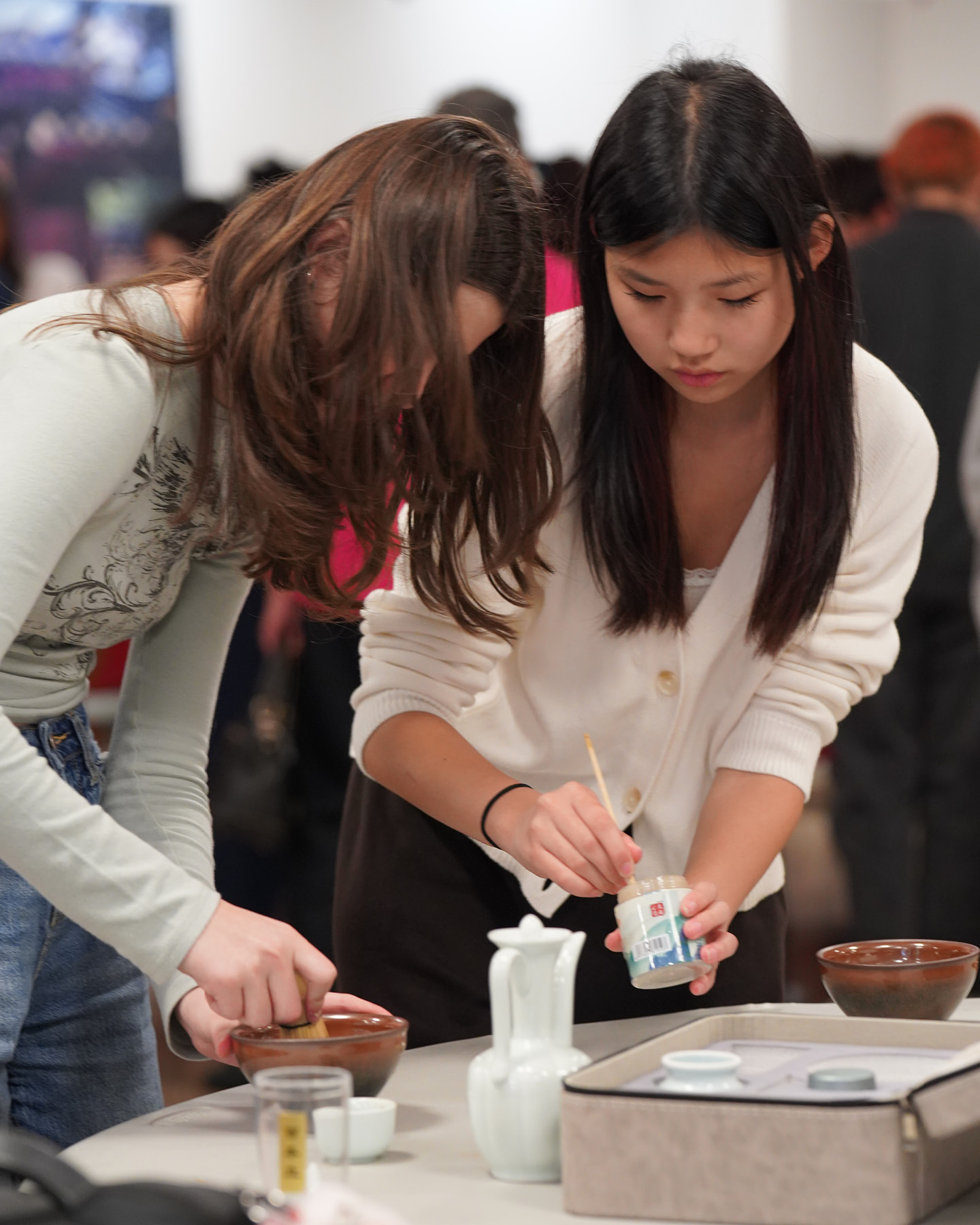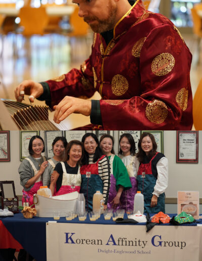 D-E’s Chinese Culture Club (CCC) and Korean Culture Club (KCC) hosted a joyful Chuseok and Mid-Autumn Festival Celebration earlier this week, in the Wharton Lessin Dining Hall. Mr. Lee ’17, Assistant Director of Diversity, Equity, Inclusion, & Belonging for the Upper School, explained that the two holidays are closely related and celebrate the harvest moon. “This is the first time we are doing a joint event!” he exclaimed. Chuseok, which was officially on Monday, October 6, is a Korean holiday during which one’s ancestors are honored, and the Chinese Mid-Autumn Festival is a time to be grateful and involves getting together with family. Korean and Chinese Parent Affinity Group members were on hand to help students make their own mooncakes, a Chinese tradition, using crushed Oreos and a mold that imprints a decorative design with the Chinese symbol for “moon.” There was also a tea-painting competition, a calligraphy station, Chinese and Korean treats and drinks, and traditional Korean games. Another highlight was a beautiful musical performance by World Language Chair Mr. Hegedus, who played the Gu-zheng, an ancient Chinese zither. He said the song evoked “an autumn moon over a calm lake.” In the spirit of the season, we are super grateful to the parents, faculty, and staff who helped make this event such a success!
