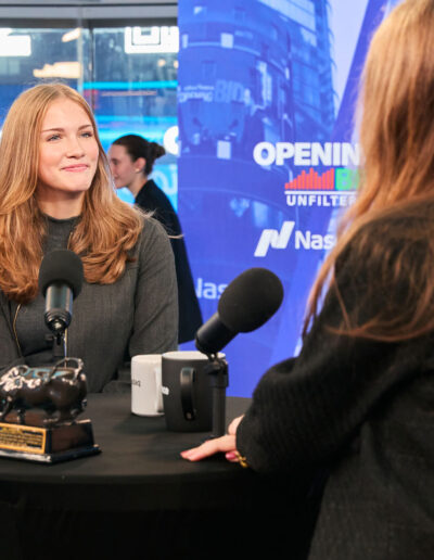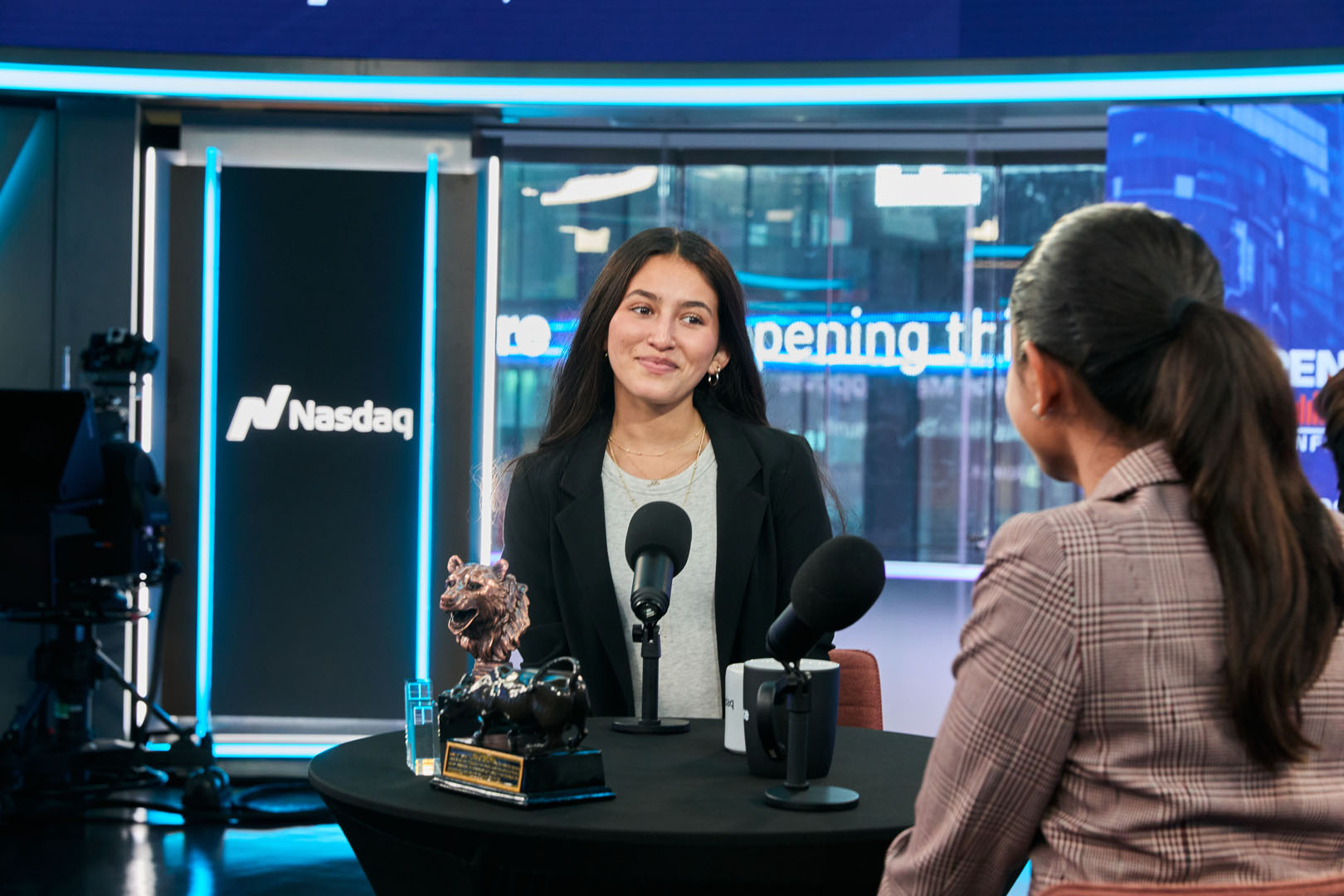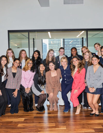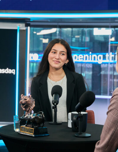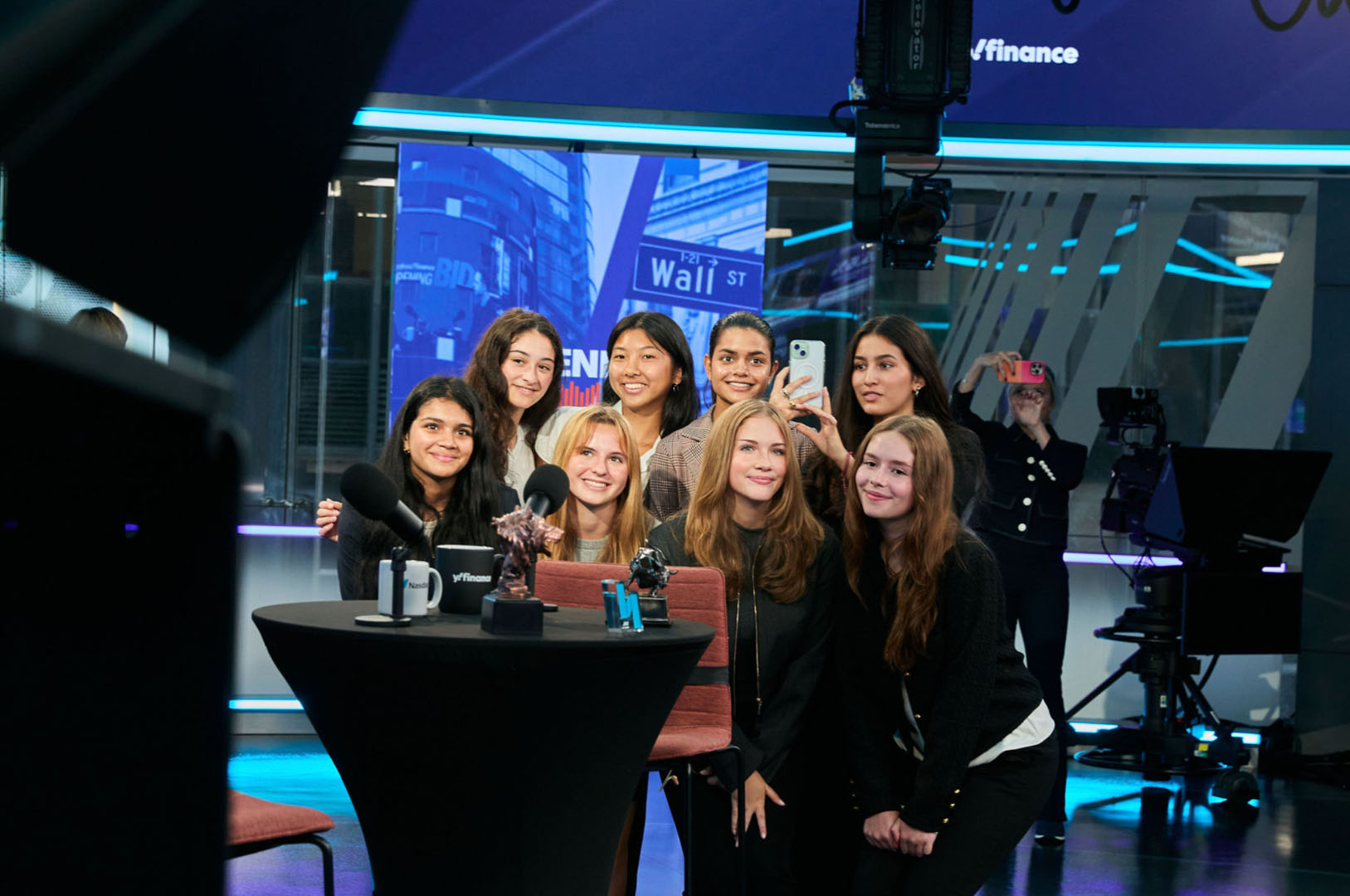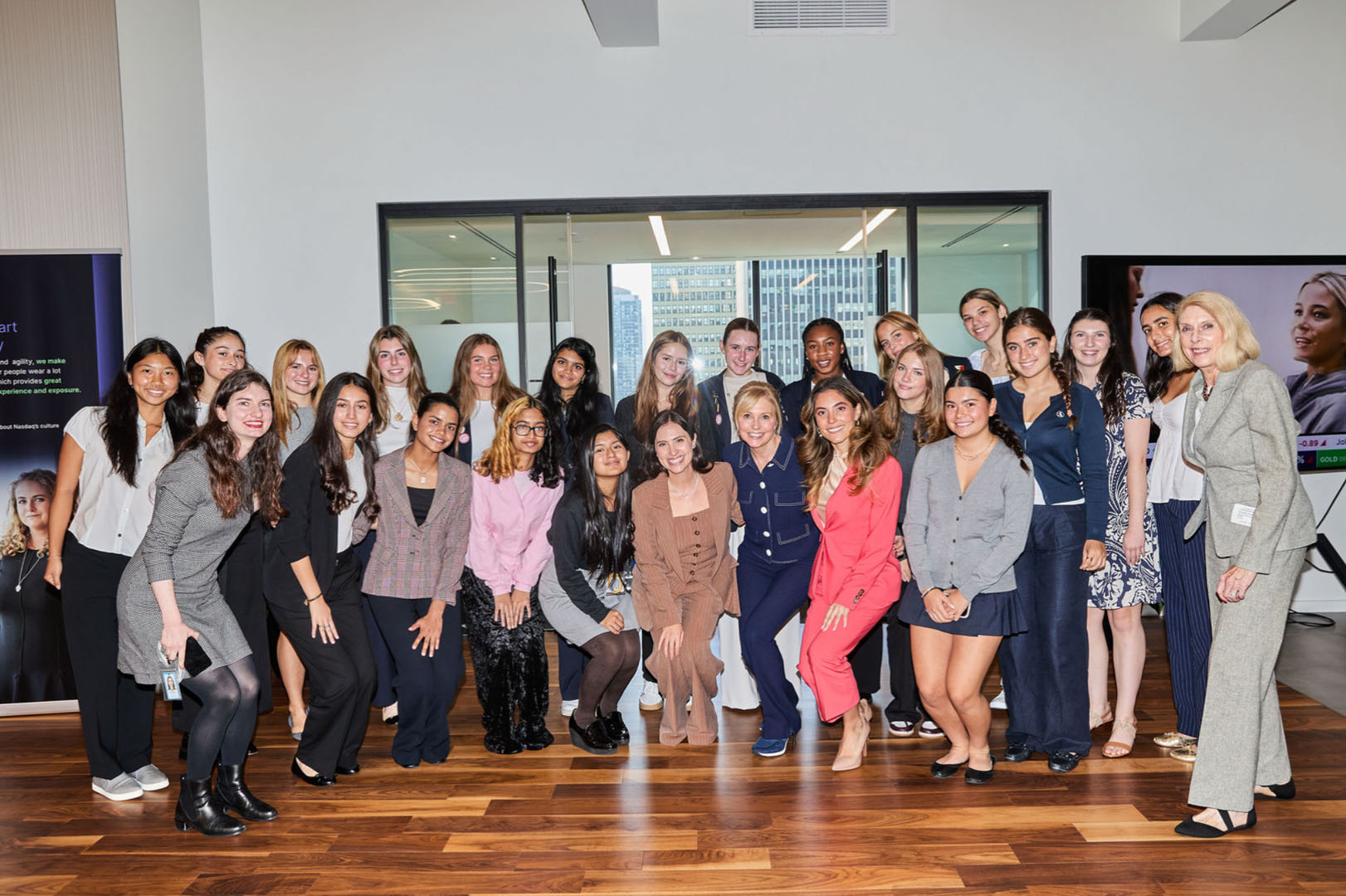 Club Être, a chapter of the greater Être organization run by D-E alumna Illana Raia ’86 and led by student leaders Anna Ibargüen ’26, Ella Siew ’26, and Daniela Hochstadt ’28, recently took a field trip to Nasdaq headquarters in New York. They were invited by the Golden Globe Foundation to celebrate the “Day of The Girl” and witness the opening of the market and bell-ringing ceremony at the Nasdaq MarketSite in Times Square. Later, they were given a tour of the Nasdaq building and listened to a female-led panel presentation featuring two Nasdaq employees and a representative from the Golden Globes. “This field trip helped us learn about possible career paths we might want to pursue in our future and allowed us to meet amazing women [who excel in their professions],” said Daniela, who added that opportunities like this help D-E students foster a desire for lifelong learning. Anna remarked that her personal highlight was hearing from the panelists about being a young woman in a male-dominated professional setting like finance and economics. “We got a lot of advice about holding your own ground, letting your work speak for your qualifications, and the importance of networking,” said Anna. “‘If you can see her, you can be her’ is one of the motivations behind a club like ours… [This] is so inspiring and shows us that there really is a world of possibilities out there!”