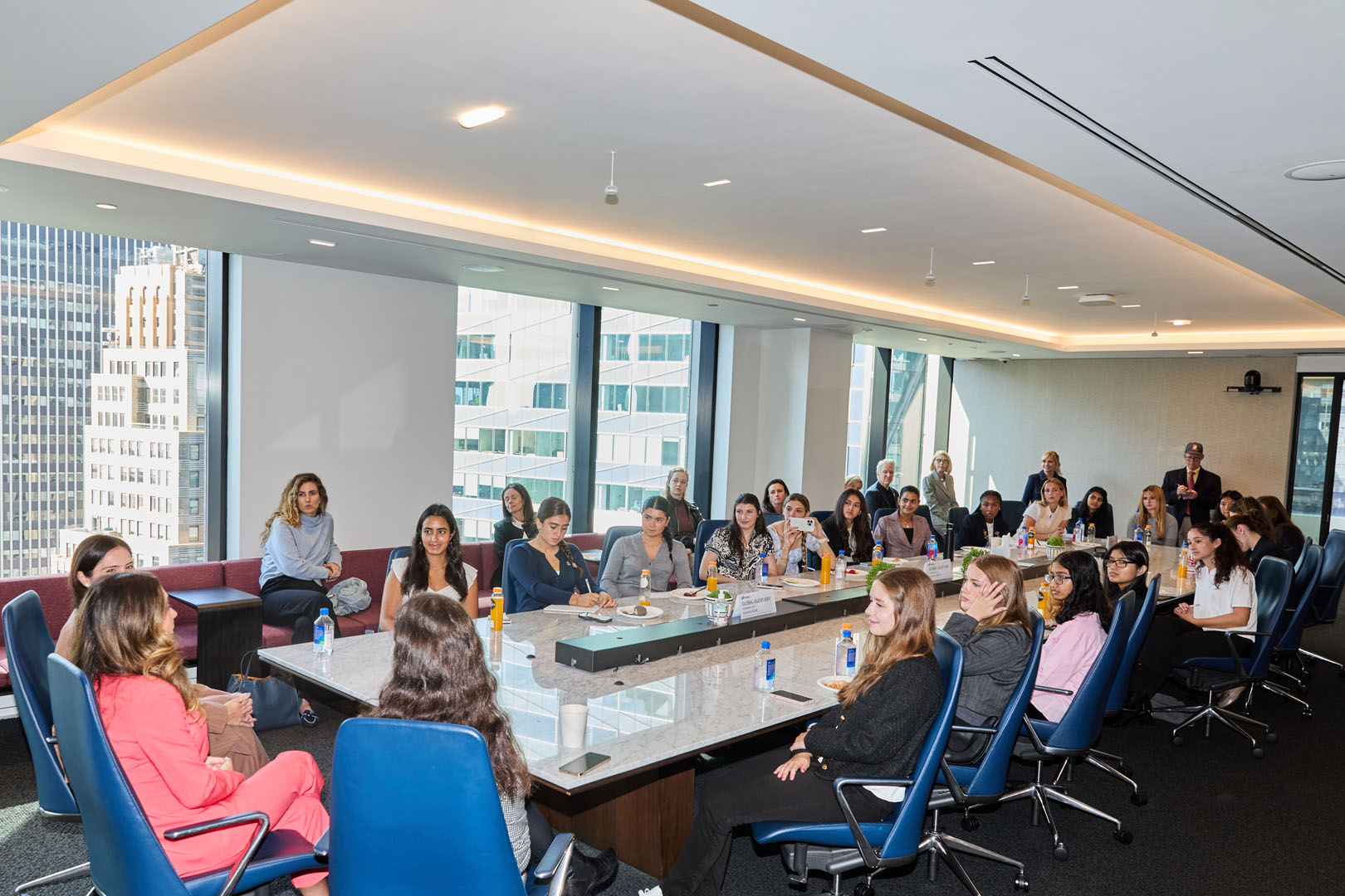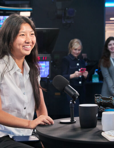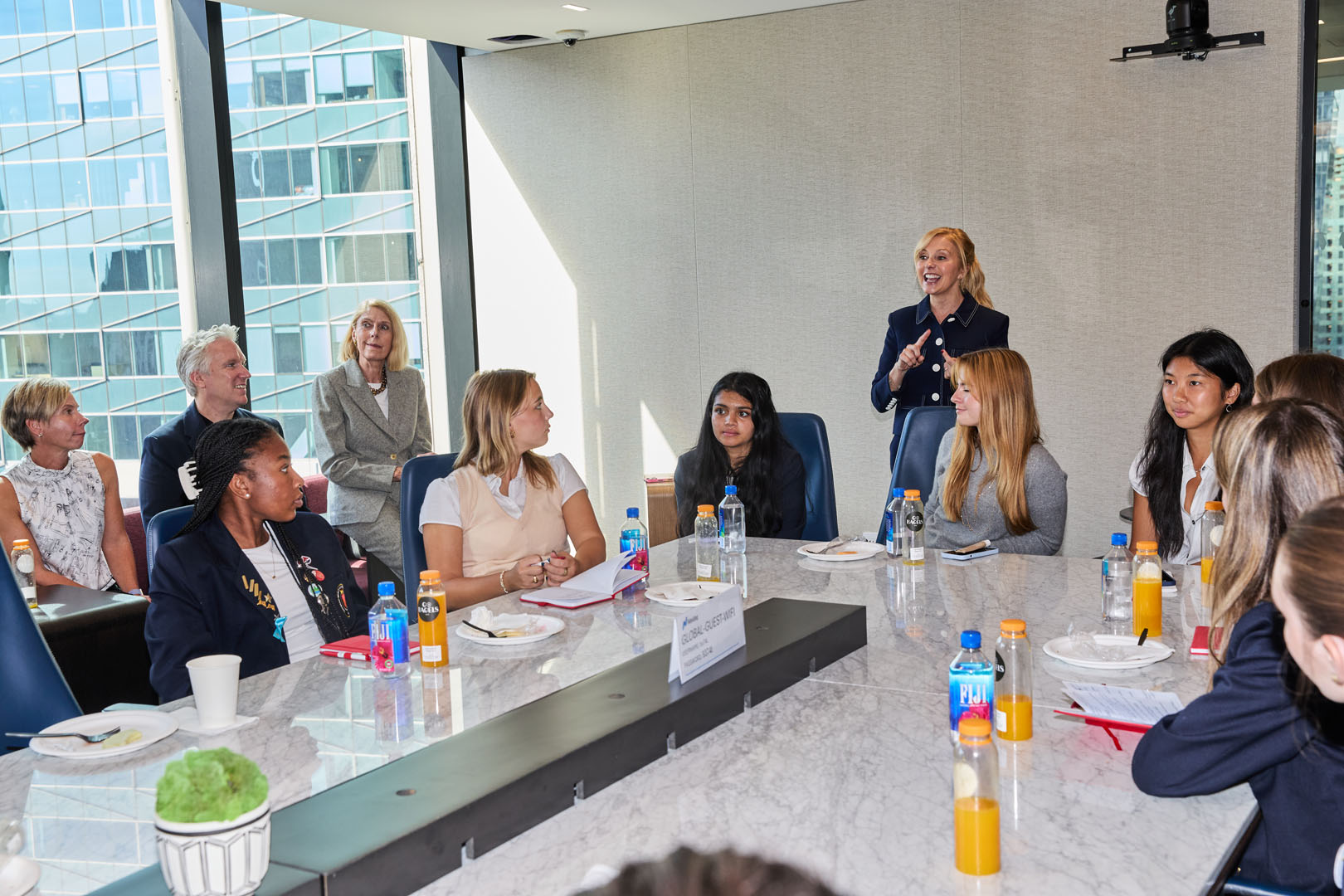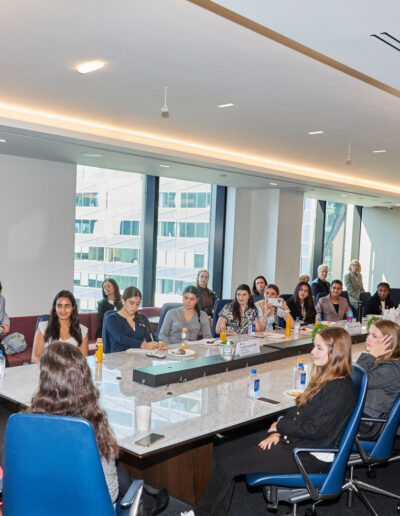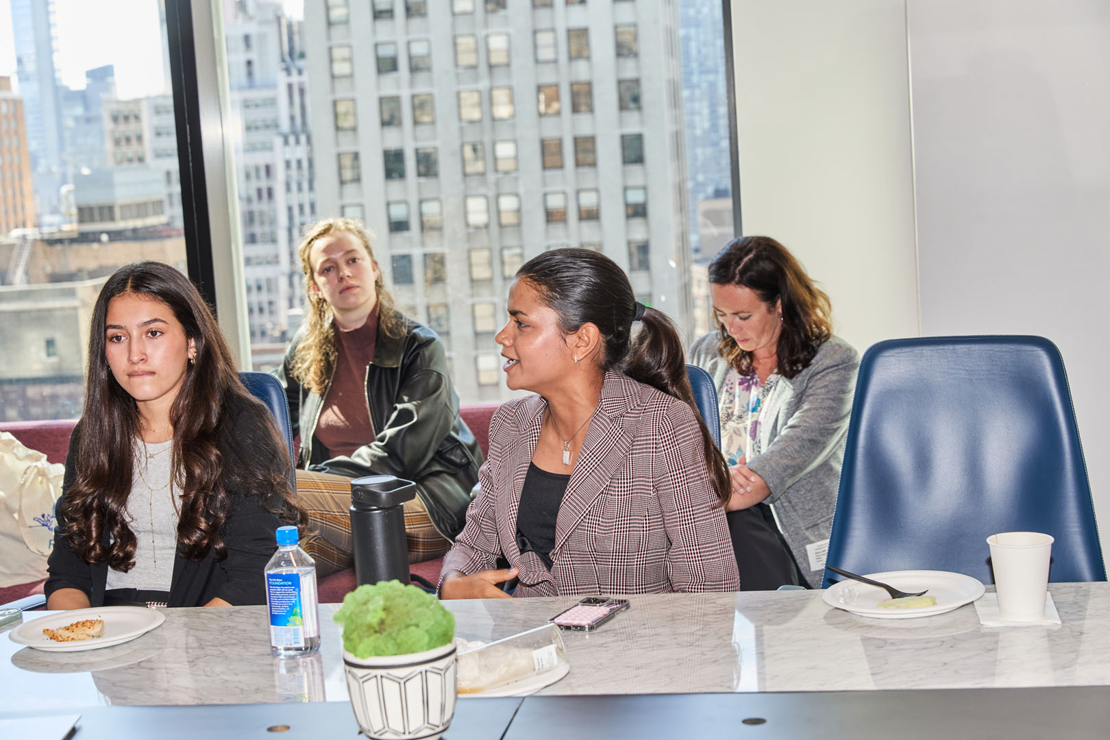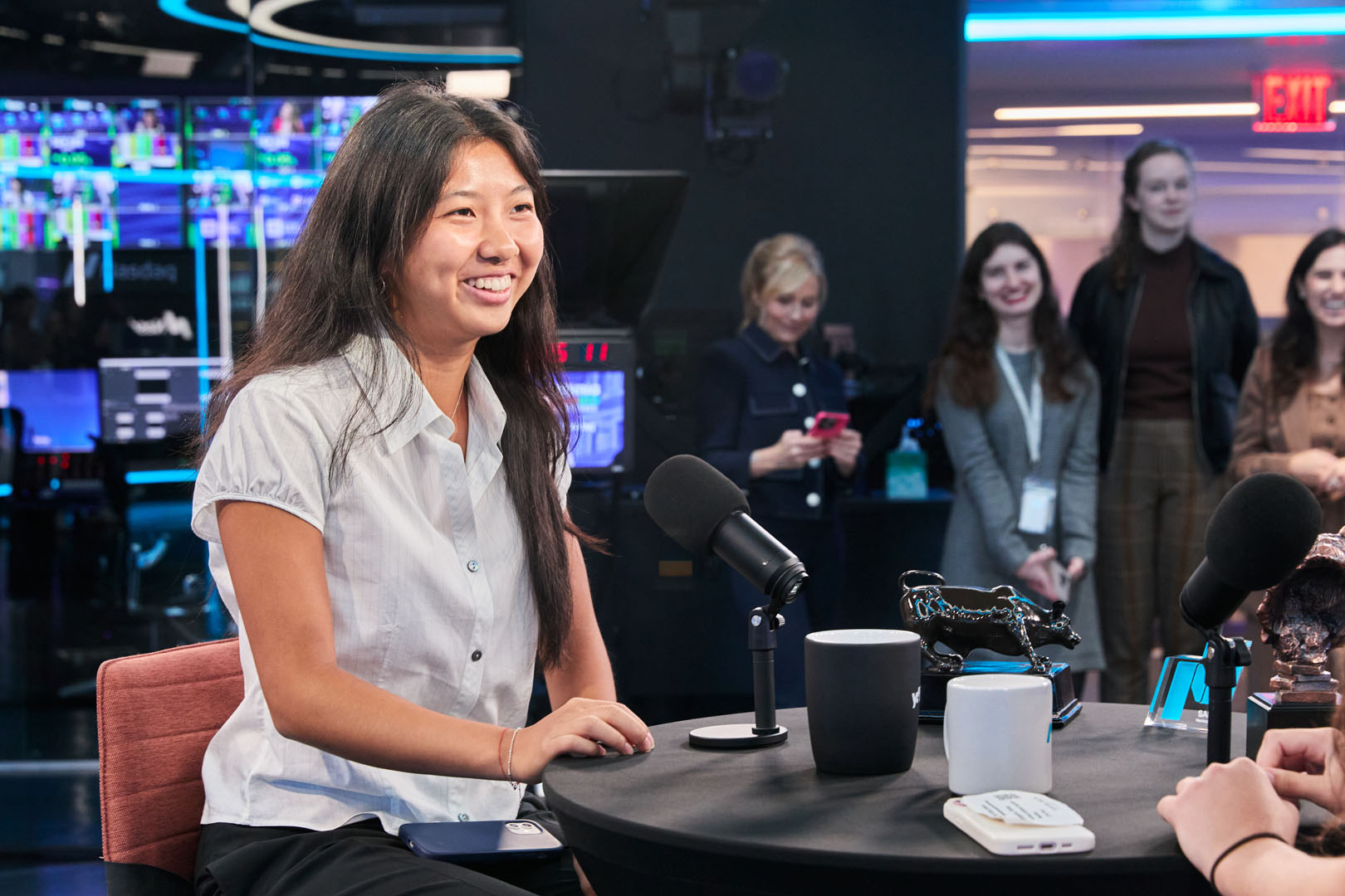 Club Être, a chapter of the greater Être organization run by D-E alumna Illana Raia ’86 and led by student leaders Anna Ibargüen ’26, Ella Siew ’26, and Daniela Hochstadt ’28, recently took a field trip to Nasdaq headquarters in New York. They were invited by the Golden Globe Foundation to celebrate the “Day of The Girl” and witness the opening of the market and bell-ringing ceremony at the Nasdaq MarketSite in Times Square. Later, they were given a tour of the Nasdaq building and listened to a female-led panel presentation featuring two Nasdaq employees and a representative from the Golden Globes. “This field trip helped us learn about possible career paths we might want to pursue in our future and allowed us to meet amazing women [who excel in their professions],” said Daniela, who added that opportunities like this help D-E students foster a desire for lifelong learning. Anna remarked that her personal highlight was hearing from the panelists about being a young woman in a male-dominated professional setting like finance and economics. “We got a lot of advice about holding your own ground, letting your work speak for your qualifications, and the importance of networking,” said Anna. “‘If you can see her, you can be her’ is one of the motivations behind a club like ours… [This] is so inspiring and shows us that there really is a world of possibilities out there!”