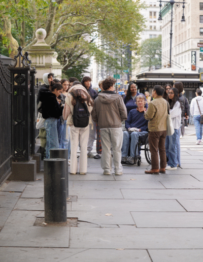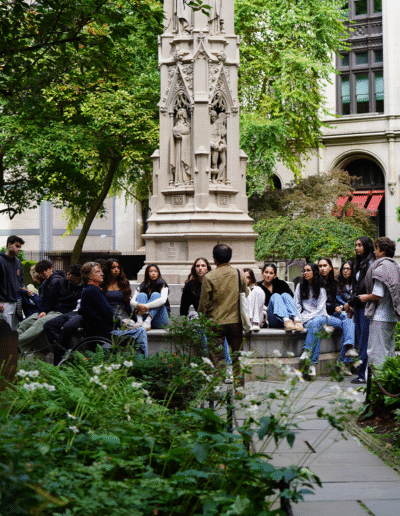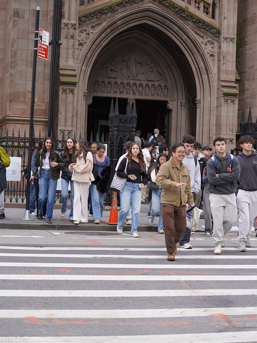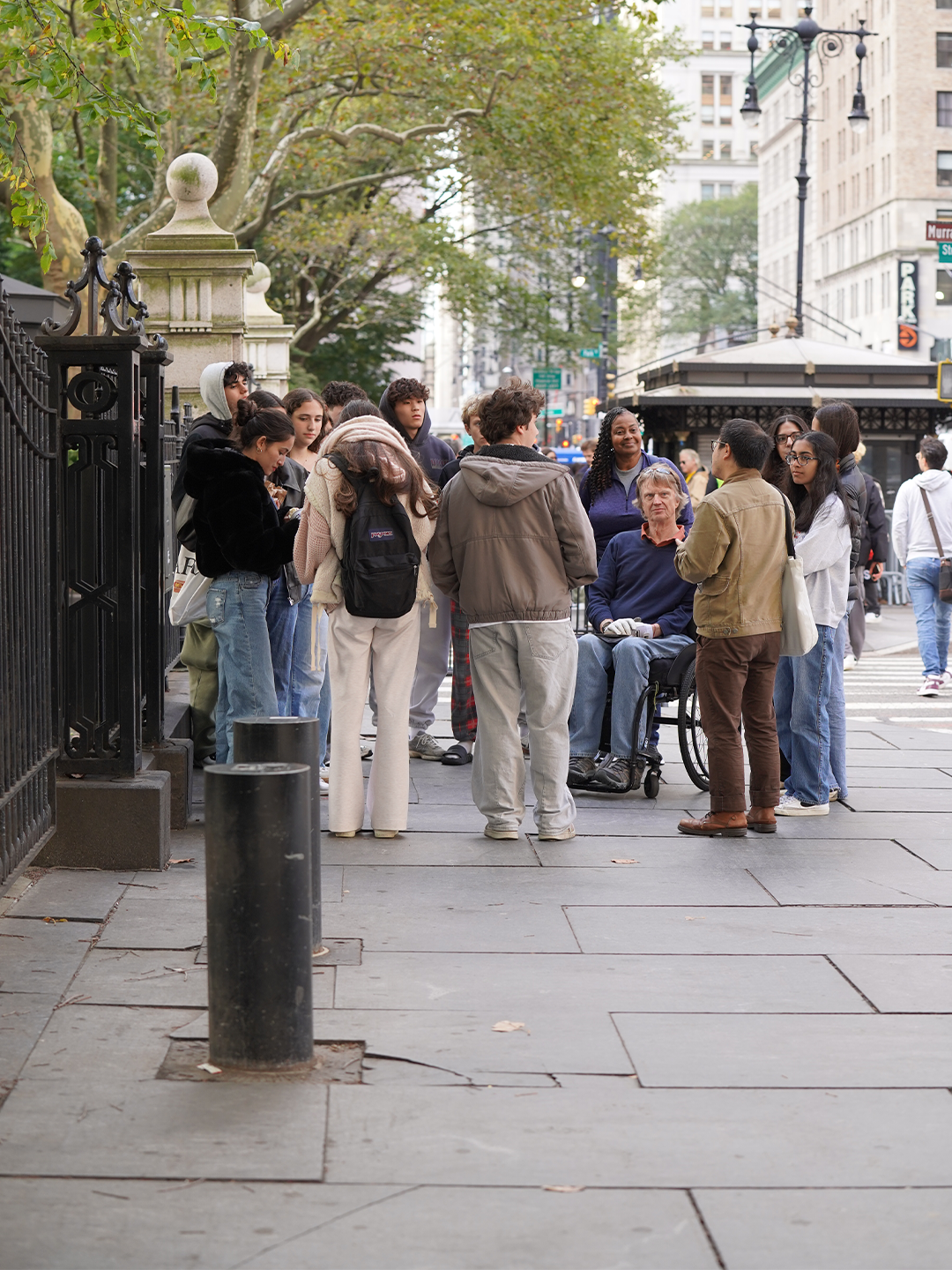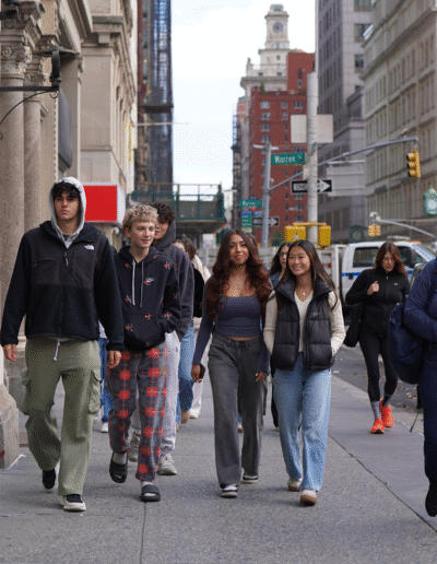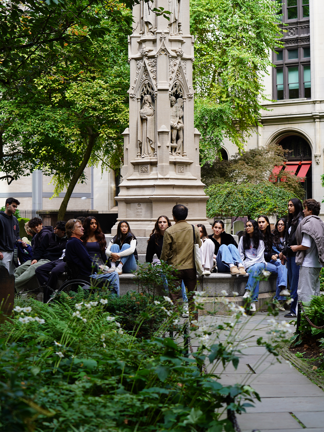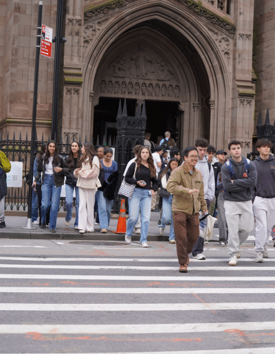Mr. Swirbul’s History of New York City class, consisting entirely of juniors, recently took a field trip to Lower Manhattan, where they went on a two-hour tour called “Revolutionary New York.” On the tour, the class learned about important events, people, and places associated with the Revolutionary era, including present-day City Hall Park, Trinity Church, Alexander Hamilton’s gravesite, Federal Hall, and Bowling Green, where a mob tore down a statue of King George III. “This experience gave the students a first-hand experience of what they have been studying in class and in textbooks, and it also helped them to imagine what life was like in NYC in that era,” said Mr. Swirbul. Ibelle Bahrampour ’27 said she found the tour both interesting and educational. “One thing that really stood out to me was visiting Alexander Hamilton’s grave,” she said. “I didn’t realize he was buried there, and it made the history feel more real. Overall, it was such a fun and memorable experience!”