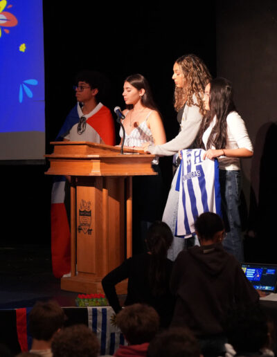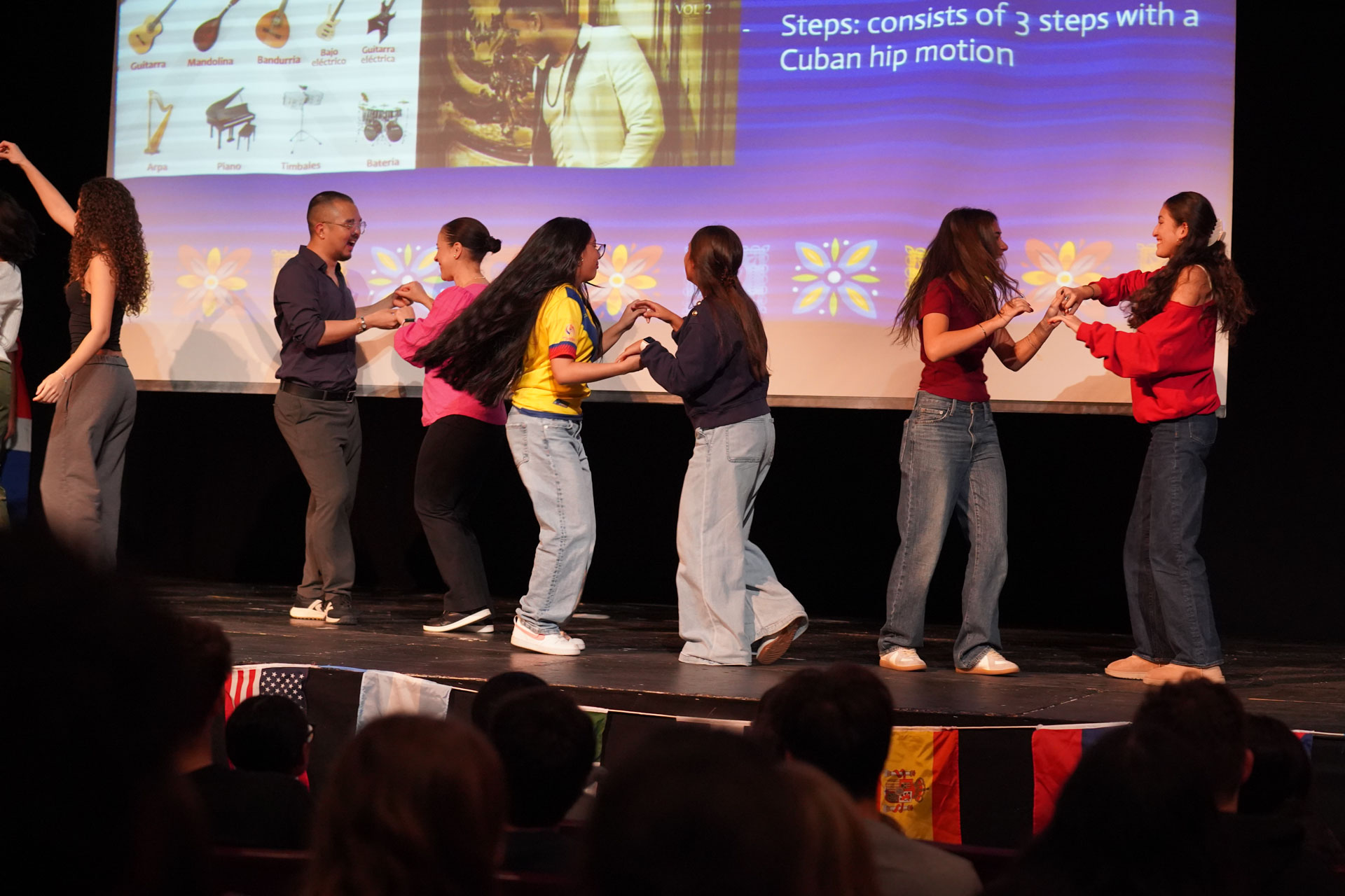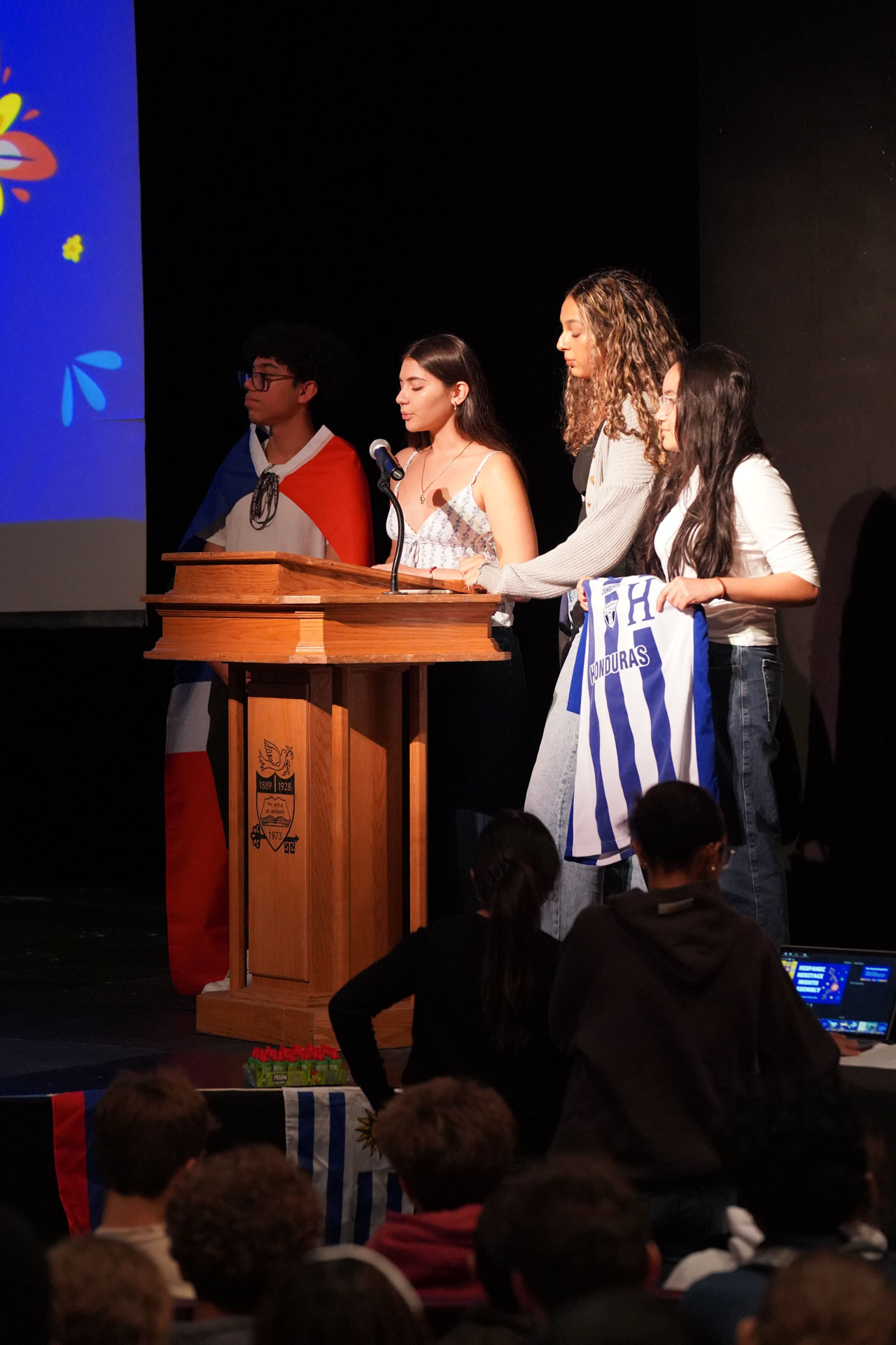 The Upper School concluded Hispanic Heritage Month, celebrated from Sept. 15 through Oct. 15, with an assembly and afternoon food tasting organized by the Latin American Student Affinity Club (LASA). Faculty Advisor and Dean of Student Life Ms. Murphy opened the assembly by announcing that this was D-E’s first student-run event of the year. The leaders of LASA subsequently announced the theme of “Unity in Hard Times” and gave the origin story of Hispanic Heritage Month, noting that one in five people in the country identify as Latino. Next, students in the audience participated in a fun trivia game based on Latin American geography, famous Latino artists, and song lyrics to be translated from Spanish. Faculty and students also demonstrated popular Latin American dances merengue, salsa, and cumbia. Following an update on current events, including controversial ICE raids around the country, the student leaders imparted a message on the importance of “celebrating who we are… now more than ever… as diversity makes us stronger.” Toward the end of the day, LASA set up tasting tables in the Wharton Lessin Dining Hall featuring delicious beef empanadas; mango, passionfruit, and pineapple with optional tajín seasoning and chamoy sauce; and horchata, a sweet, rice-based beverage. Salud!