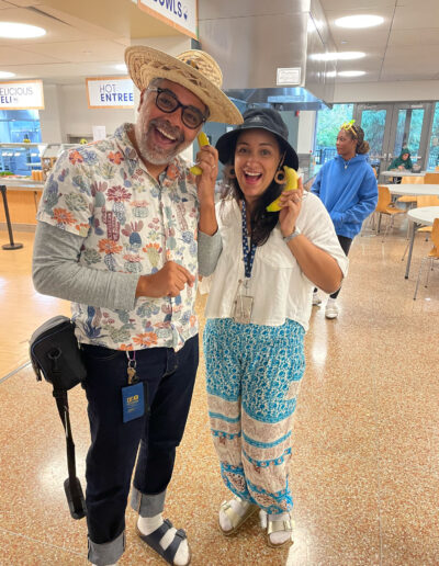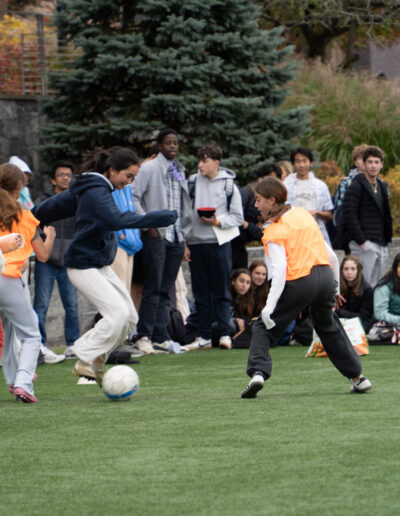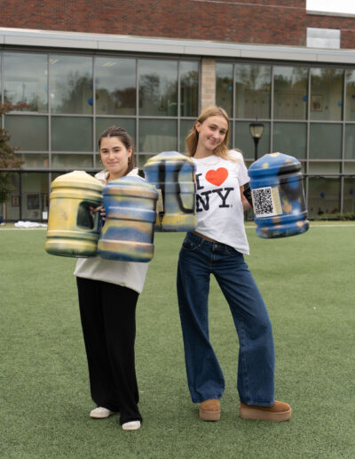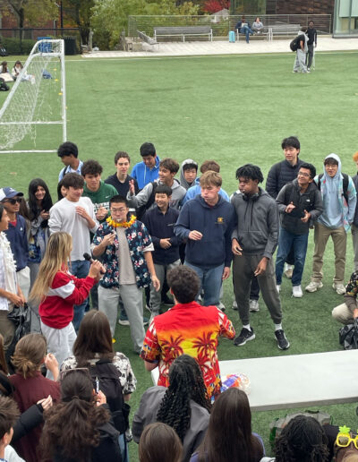 For Day 2 of Spirit Week, our Upper School (US) students (and faculty/staff) dressed as “tacky tourists”— and 11th graders defeated 9th graders during the lunchtime soccer game PLUS won the halftime game, during which players hilariously stuffed their mouths with marshmallows, increasing the amount each round until they could no longer say “Chubby Bunny” clearly. Coin Wars is also going strong! Throughout the week, US students can stop by the Student Activities Center and drop cash or coins in containers to earn points for their grades. Each physical cent is worth one point. You can also deduct points from any grade by scanning the QR codes affixed to the containers and donating money via Paypal. All proceeds go to The Center for Food Action, which helps combat food insecurity and homelessness in New Jersey. Grade 11 is currently in the lead, but our Seniors are close behind! Go Bulldogs!!!
