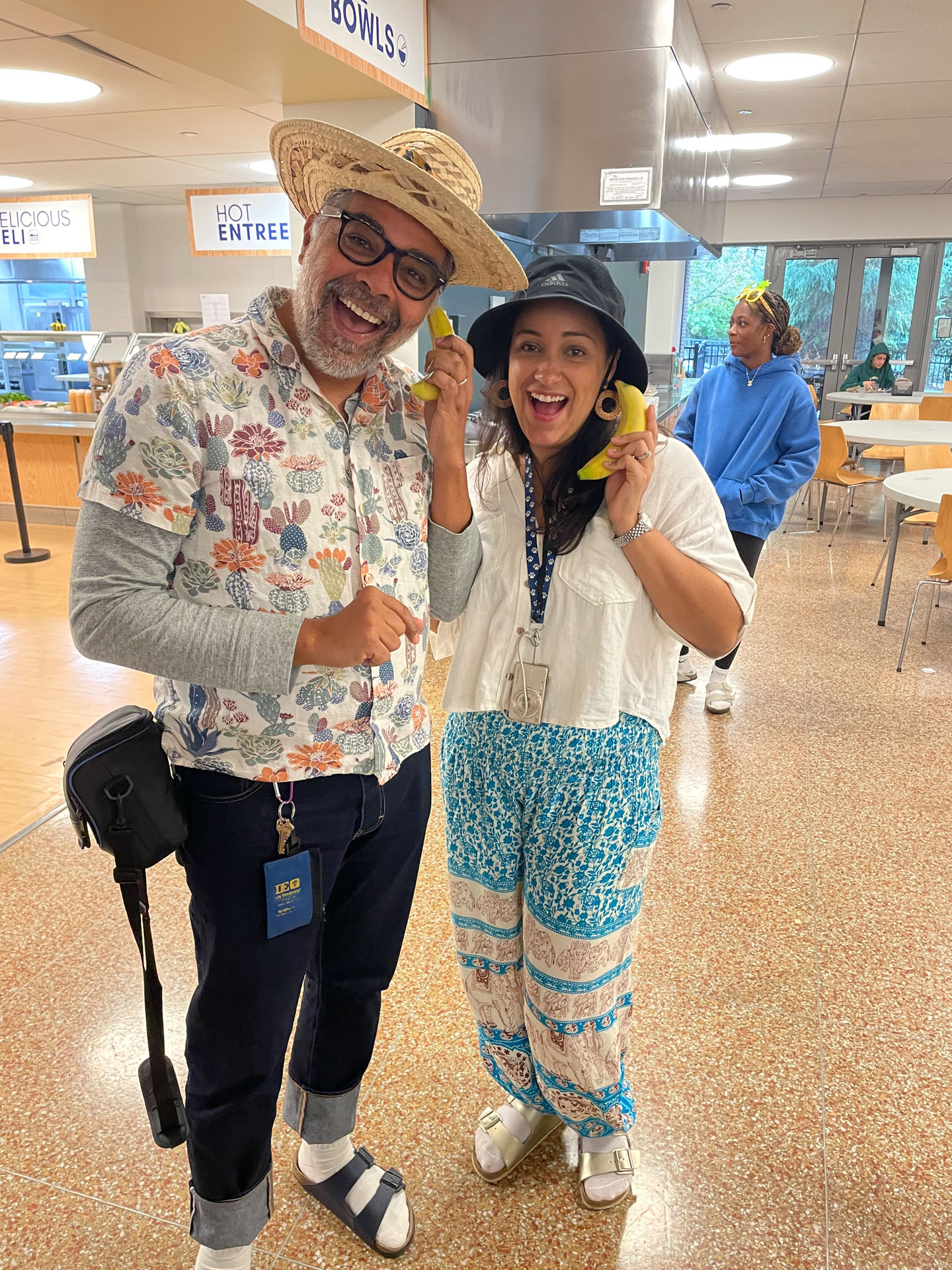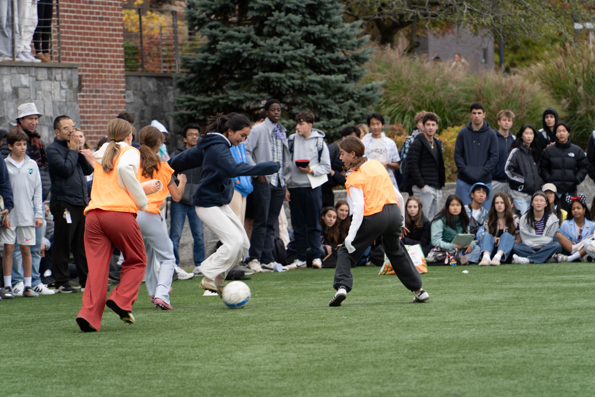 For Day 2 of Spirit Week, our Upper School (US) students (and faculty/staff) dressed as “tacky tourists”— and 11th graders defeated 9th graders during the lunchtime soccer game PLUS won the halftime game, during which players hilariously stuffed their mouths with marshmallows, increasing the amount each round until they could no longer say “Chubby Bunny” clearly. Coin Wars is also going strong! Throughout the week, US students can stop by the Student Activities Center and drop cash or coins in containers to earn points for their grades. Each physical cent is worth one point. You can also deduct points from any grade by scanning the QR codes affixed to the containers and donating money via Paypal. All proceeds go to The Center for Food Action, which helps combat food insecurity and homelessness in New Jersey. Grade 11 is currently in the lead, but our Seniors are close behind! Go Bulldogs!!!