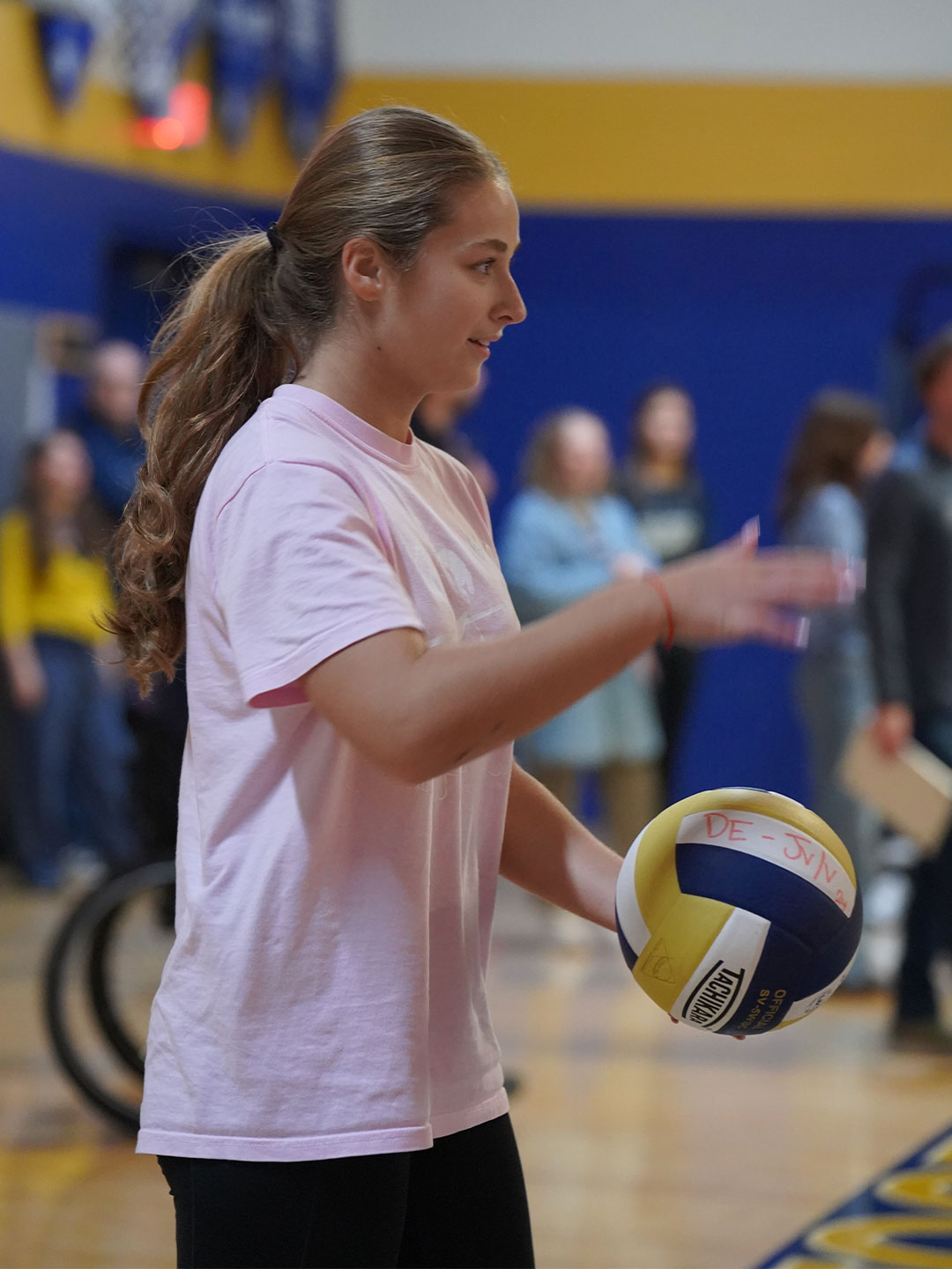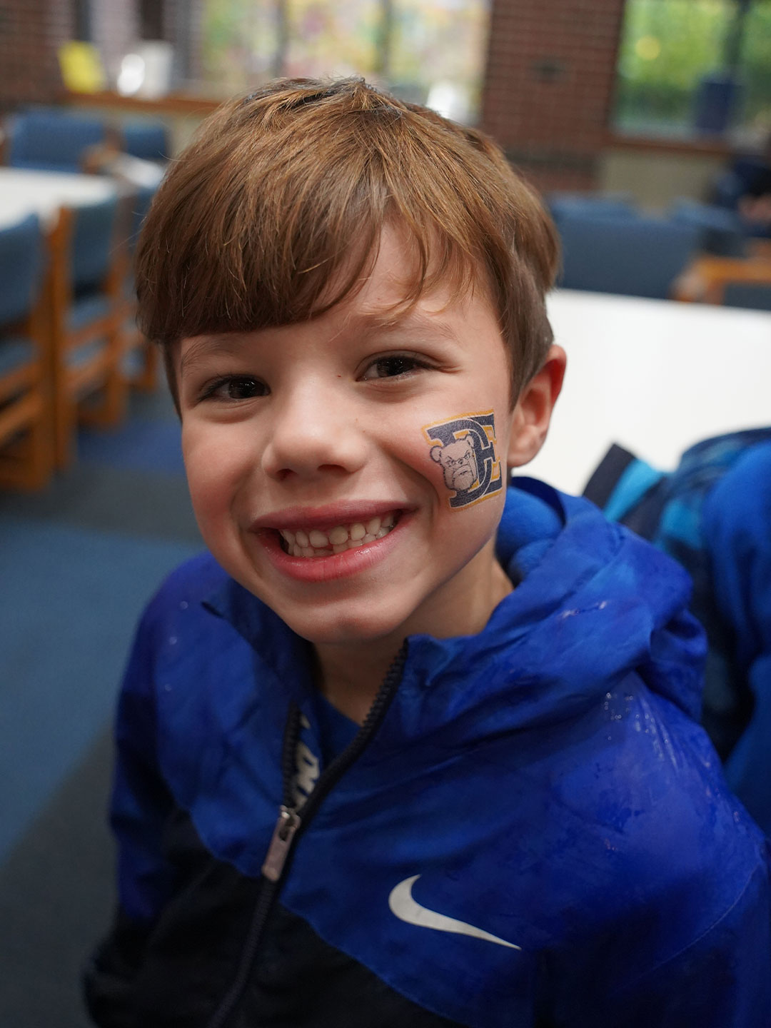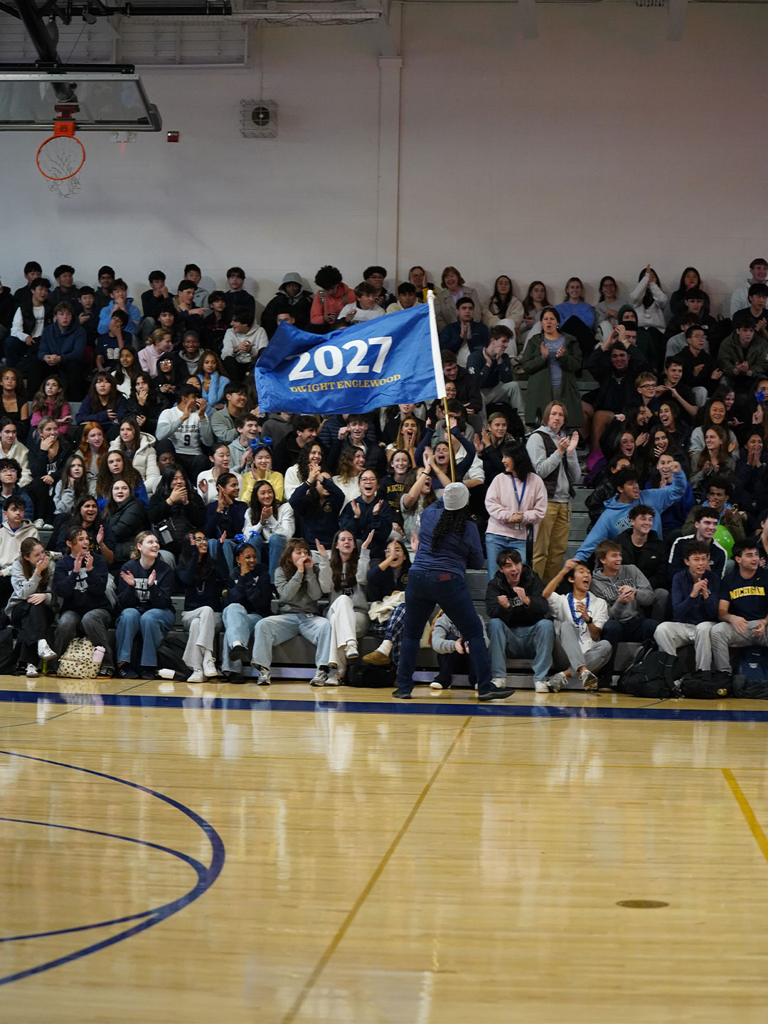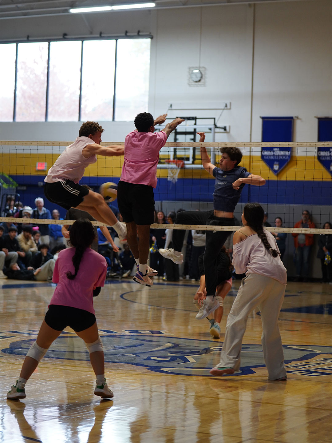 On the fourth day of Spirit Week—D-E Spirit Day—Bulldogs from every division wore their blue, gold, and white proudly! The Upper School’s Spirit Day Assembly kicked off with a lively pep rally and competitive volleyball tournament in the Myrna B. Sherman Gym. Juniors defeated the Freshmen in Round 1, and Seniors knocked out the Sophomores in Round 2 and ultimately beat the Juniors 16 to 9 in the final. During an exciting halftime challenge, the Class of 2028 pulled off the win by being the first to stack seven large cardboard boxes on top of each other. In addition to Coin Wars, students can collect points from a candy jar guessing game, as well as the Programming and Math Challenges of the Week. Keep up the incredible energy, Bulldogs!