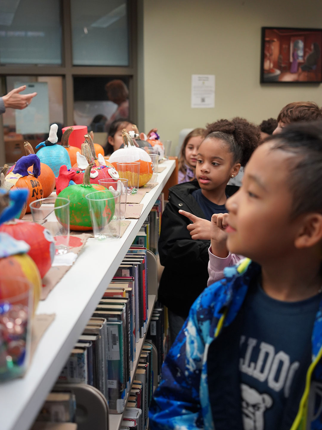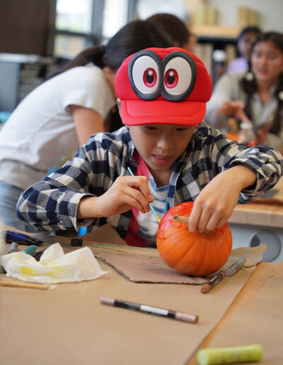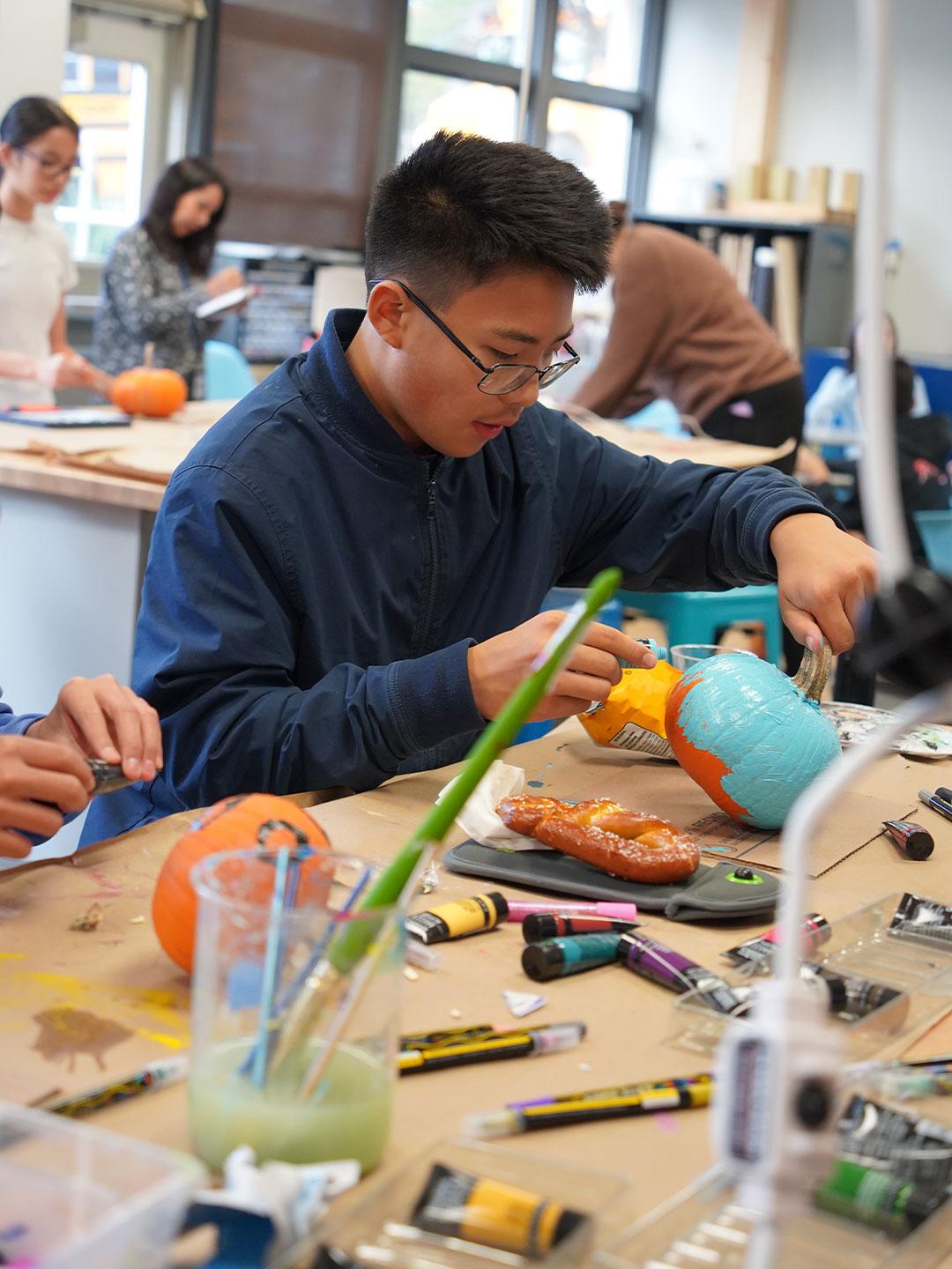 As part of Spirit Week, and another chance to earn points for their grade, our 8th-grade Middle School (MS) Robotics Team planned a cross-divisional maker competition. MS and Upper School students used their creativity to decorate pumpkins in the Makerspace as one of their favorite characters using paint, modeling clay, gemstones, and more. Lower School students were then invited to take a mini field trip to The Imperatore Library to vote on their favorite creations—including Charlie Brown characters, Hello Kitty, a Labubu, and the ever-popular 6-7 meme—plus enjoy Storytime with an 8th grader or Innovation Coordinator Ms. Larionoff. Arielle N. ’30, who helped organize the event, said this activity allows students who aren’t in Robotics to experience what goes on in the Makerspace. “Because both the Upper and Lower Schools get involved, it makes this an all-school activity, which is really fun,” she says. Good luck to all our creators!
