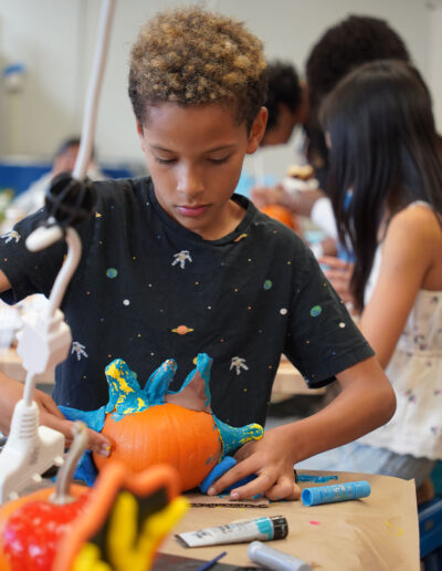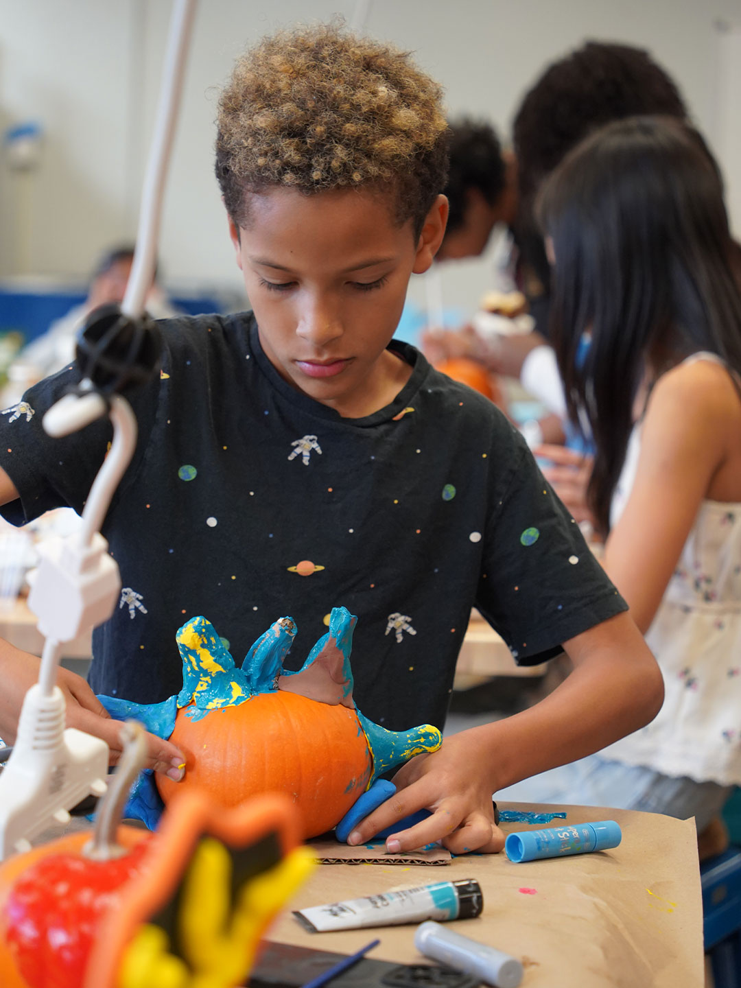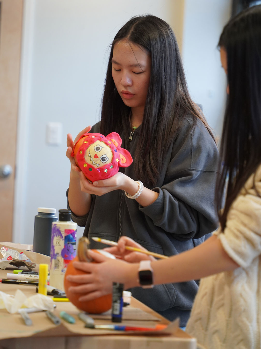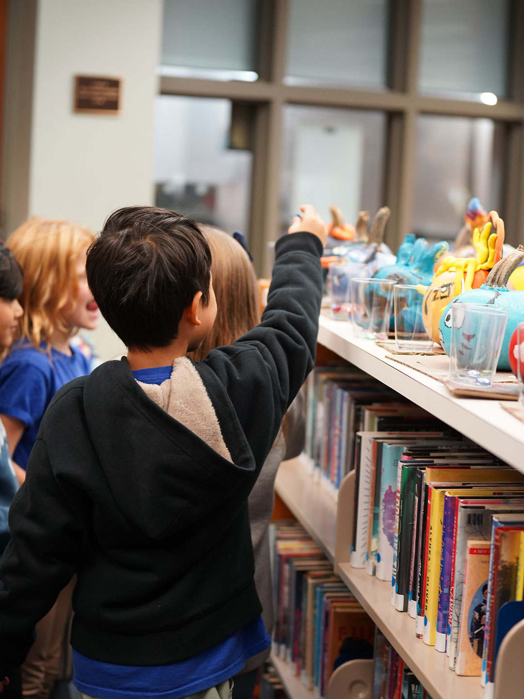 As part of Spirit Week, and another chance to earn points for their grade, our 8th-grade Middle School (MS) Robotics Team planned a cross-divisional maker competition. MS and Upper School students used their creativity to decorate pumpkins in the Makerspace as one of their favorite characters using paint, modeling clay, gemstones, and more. Lower School students were then invited to take a mini field trip to The Imperatore Library to vote on their favorite creations—including Charlie Brown characters, Hello Kitty, a Labubu, and the ever-popular 6-7 meme—plus enjoy Storytime with an 8th grader or Innovation Coordinator Ms. Larionoff. Arielle N. ’30, who helped organize the event, said this activity allows students who aren’t in Robotics to experience what goes on in the Makerspace. “Because both the Upper and Lower Schools get involved, it makes this an all-school activity, which is really fun,” she says. Good luck to all our creators!