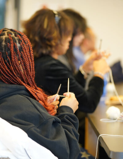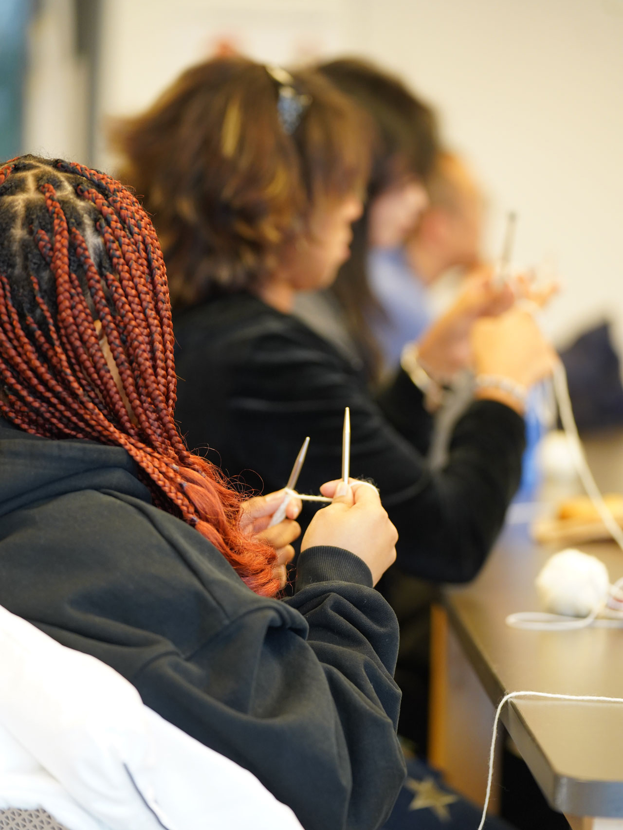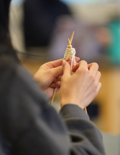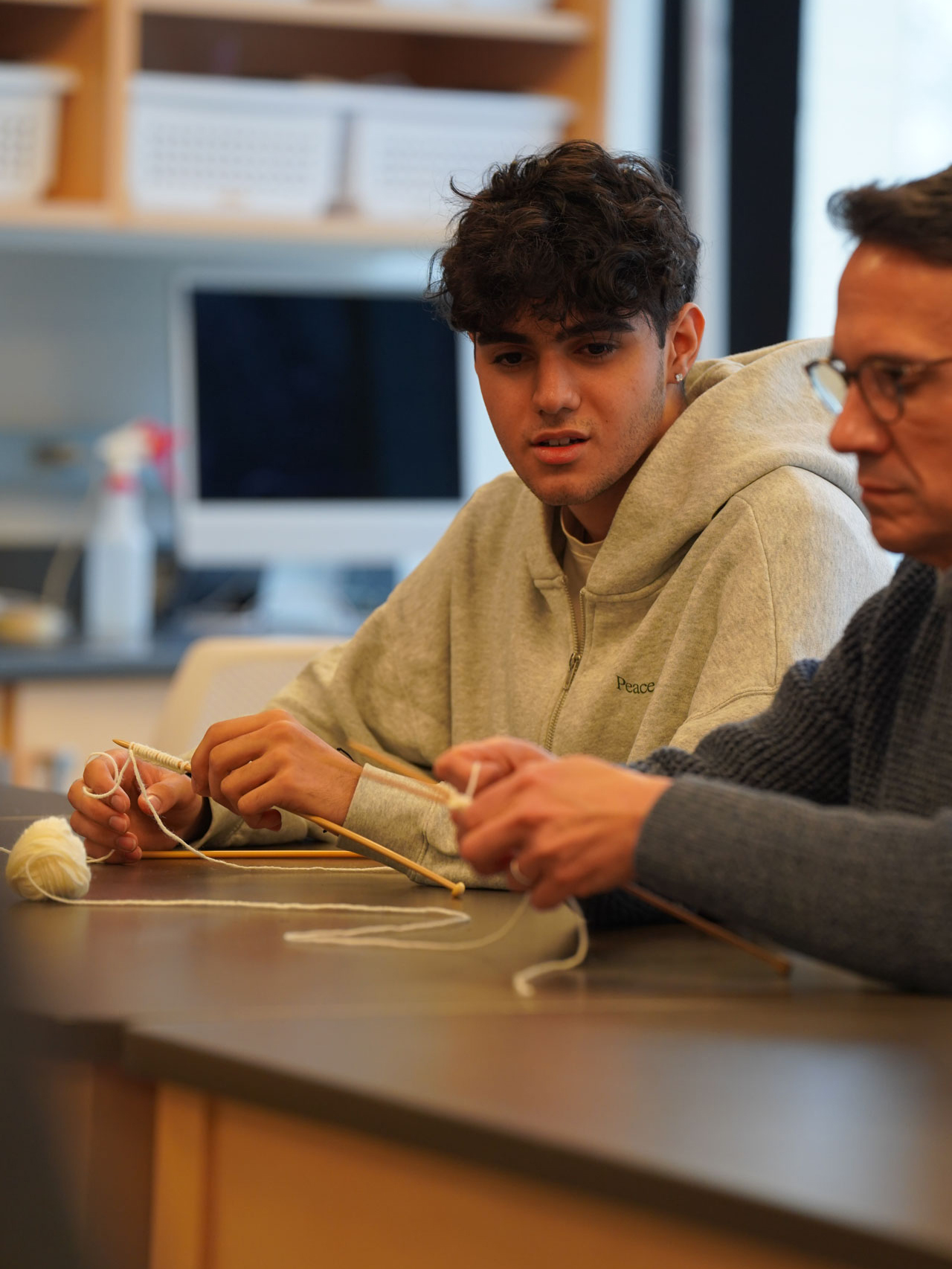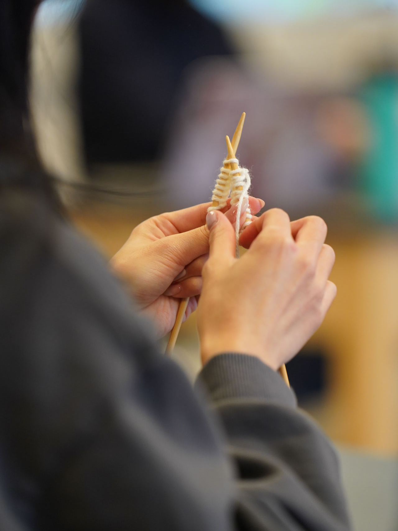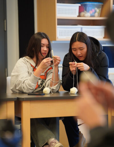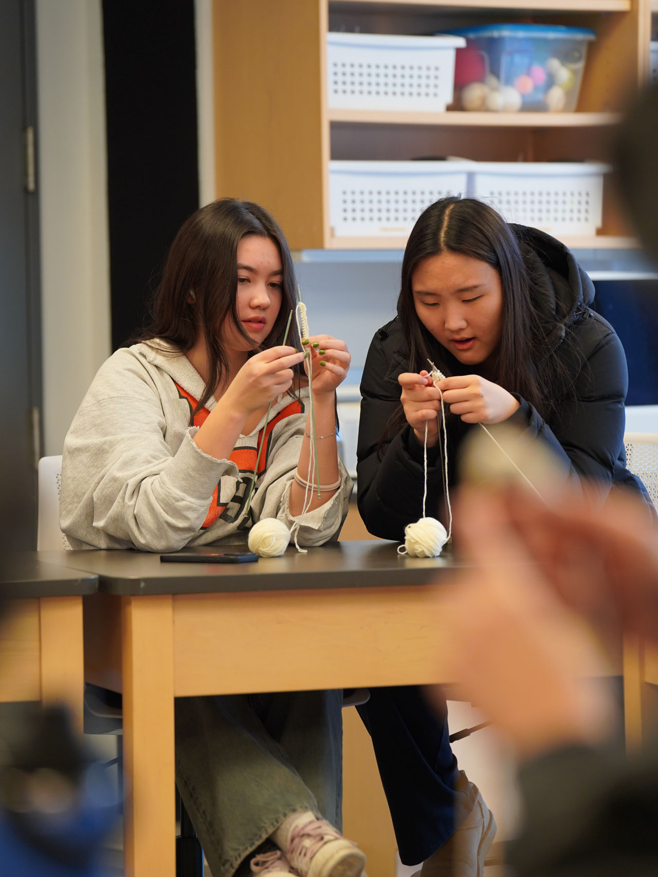 In the latest in a series of Lunch & Learn programming, hosted by the DEIB Department & Student Activities, Upper School students were guided through knitting basics courtesy of Ms. Weinstein, Science Department Chair. These workshops offer our students the opportunity to learn skills they may not otherwise learn in the classroom. It was also a lovely way to weave a bit of happiness into the day!