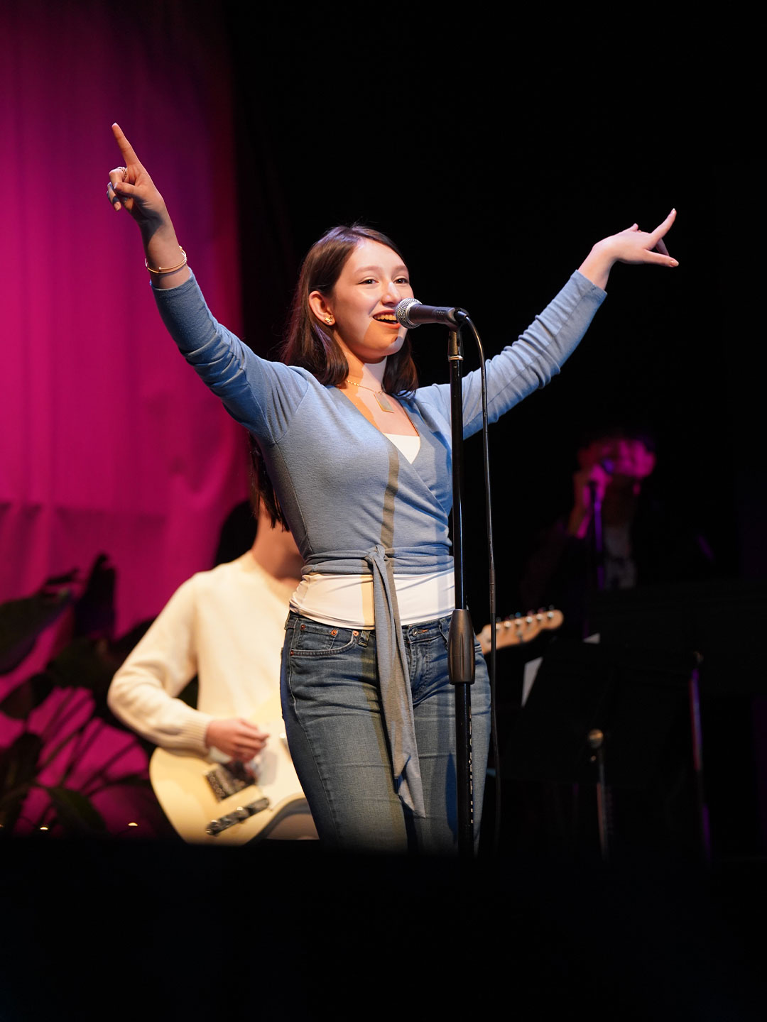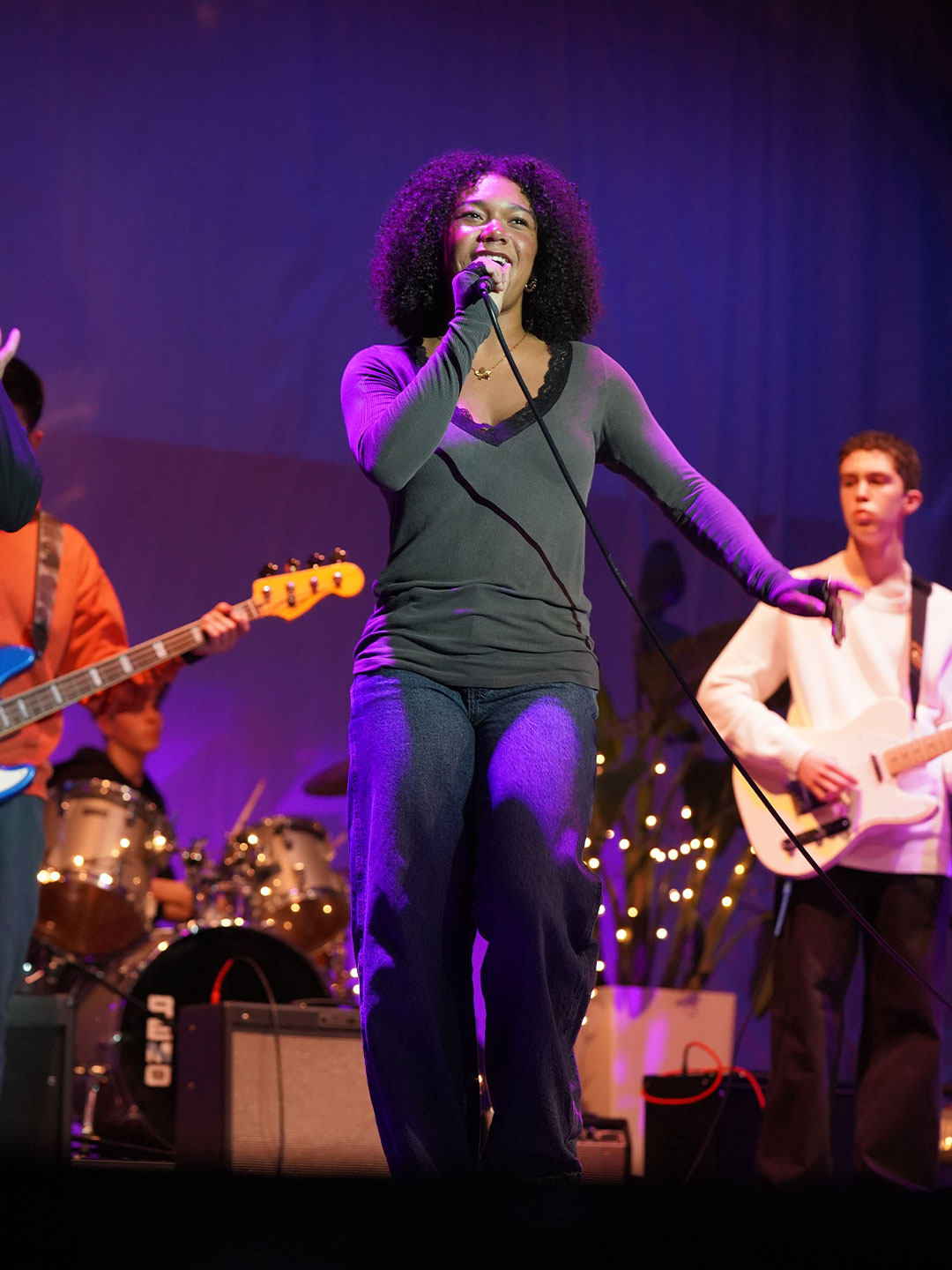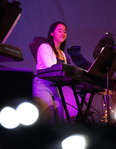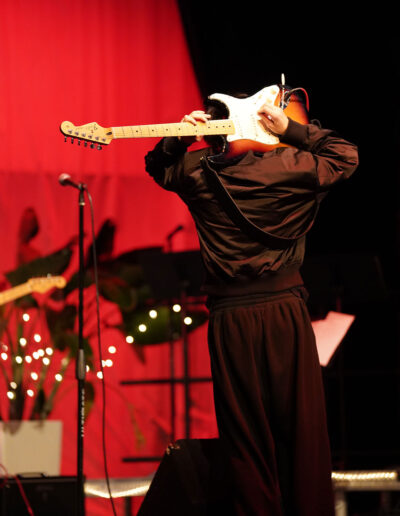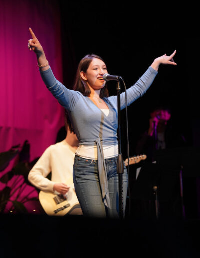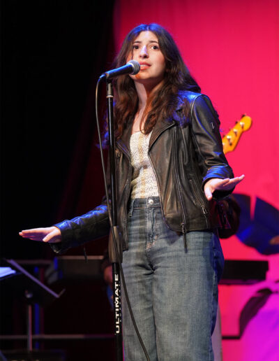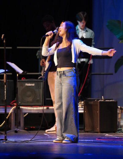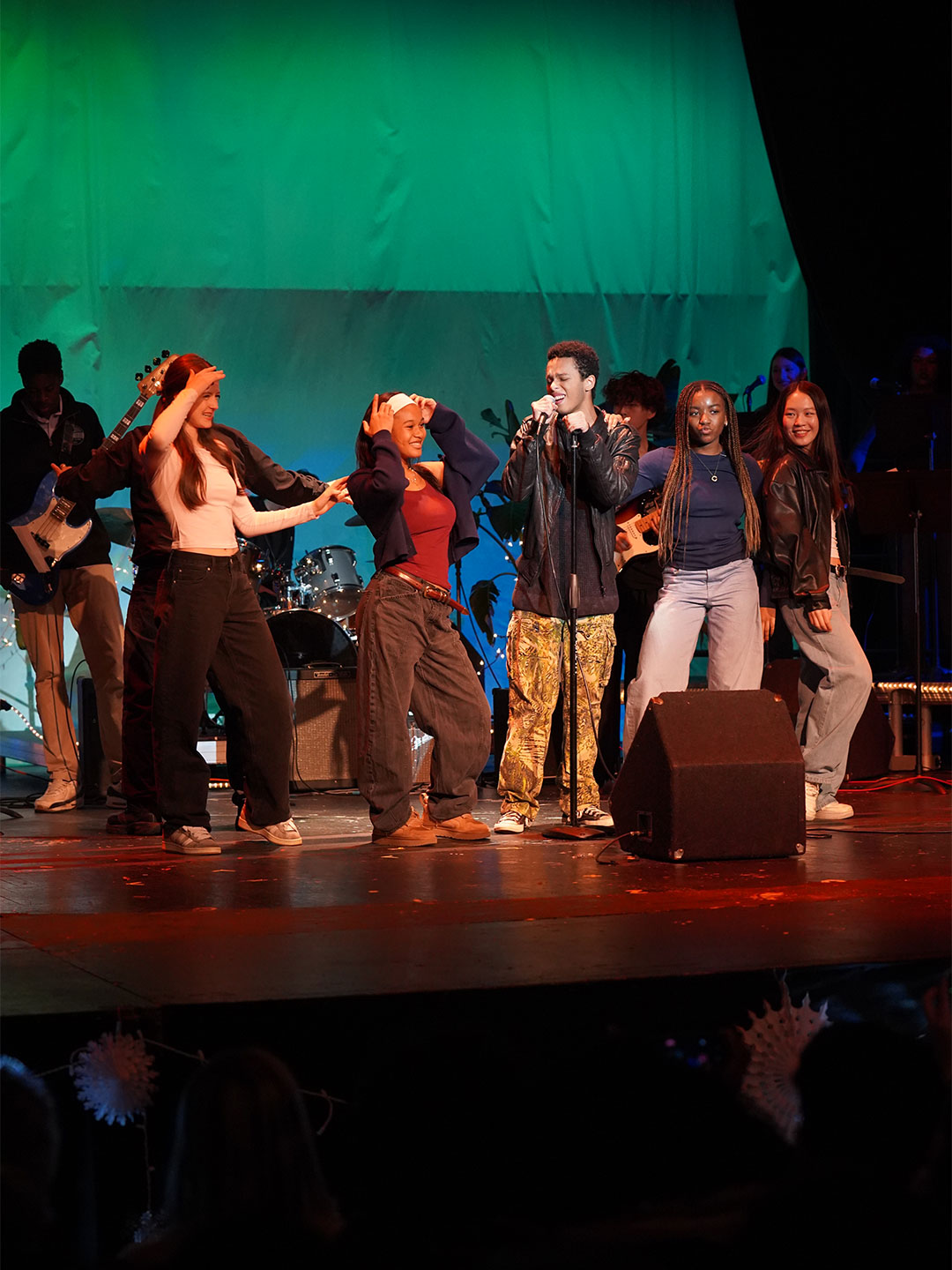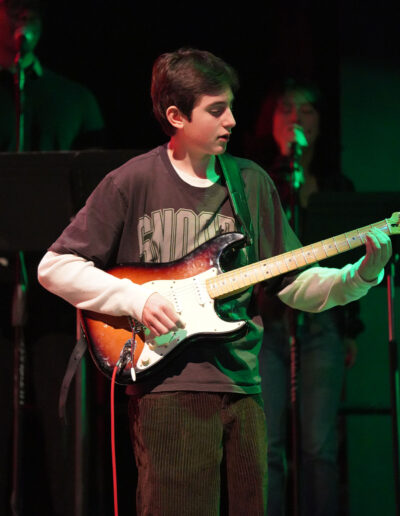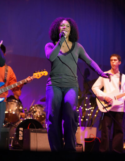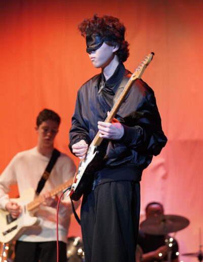 Way to Rock, D-E Jazz Rock! The Upper School’s annual Jazz Rock Winter Concert was performed earlier today to a packed, enthusiastic audience in Schenck Auditorium. Scheduled on the final day of classes immediately prior to winter break, this year’s concert held up to D-E tradition. This year’s show featured songs ranging from contemporary classics to pop hits including “Love Fool” (The Cardigans); “Treasure” (Bruno Mars); “Man I Need” (Olivia Dean); and “L’Amour De Ma Vie” (Billie Eilesh). Our student vocalists and instrumentalists clearly D-Elighted the crowd and inspired student lighting designs added to the experience. Highlights also included blindfolded and back-playing guitar solos, and a fantastic finale of “Moves Like Jaggar” (Maroon Five) featuring our D-E Dancers! Bravo & thanks to ALL our D-E Jazz ‘Rockers’ for a great holiday send-off!