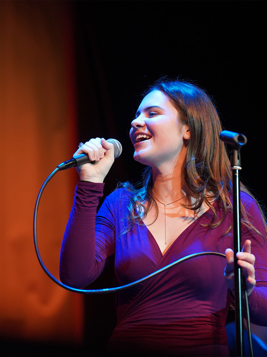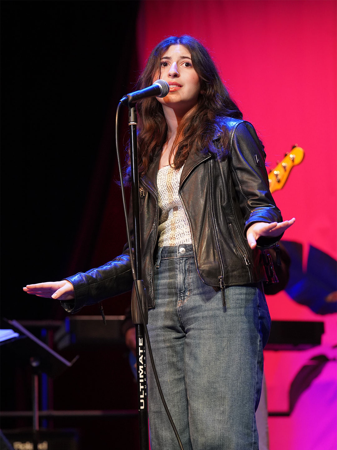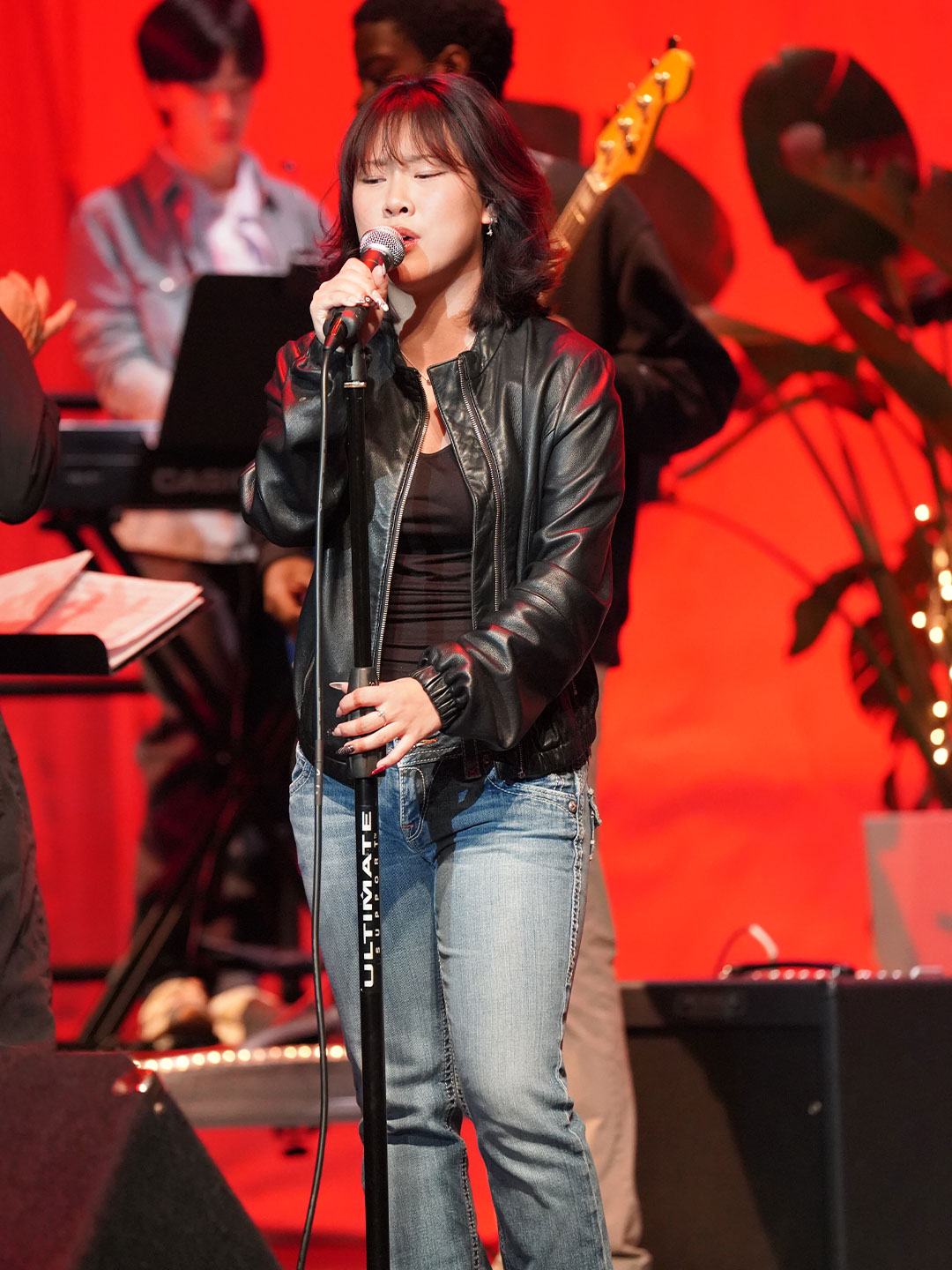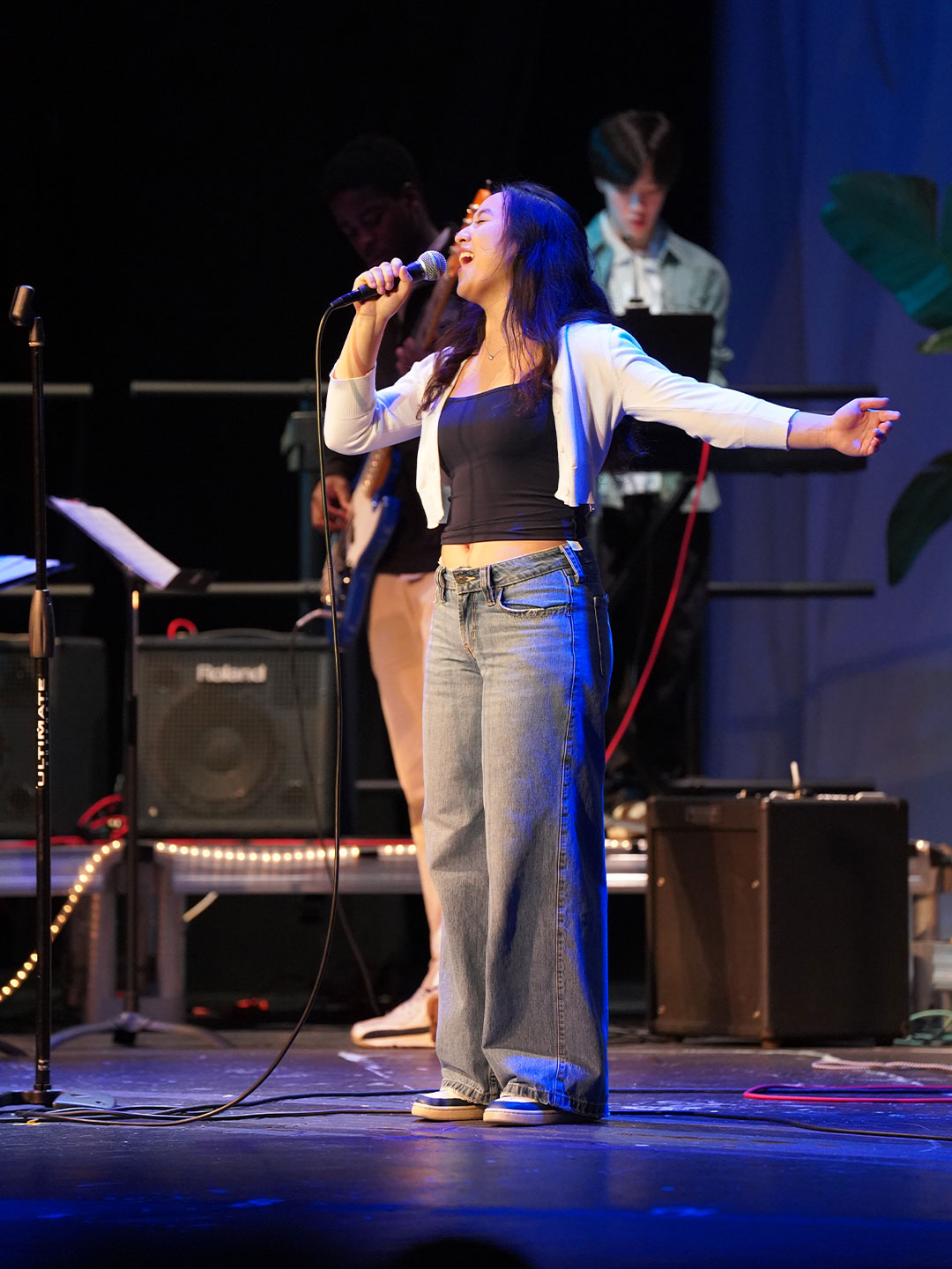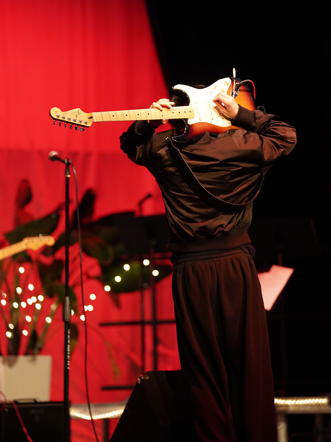 Way to Rock, D-E Jazz Rock! The Upper School’s annual Jazz Rock Winter Concert was performed earlier today to a packed, enthusiastic audience in Schenck Auditorium. Scheduled on the final day of classes immediately prior to winter break, this year’s concert held up to D-E tradition. This year’s show featured songs ranging from contemporary classics to pop hits including “Love Fool” (The Cardigans); “Treasure” (Bruno Mars); “Man I Need” (Olivia Dean); and “L’Amour De Ma Vie” (Billie Eilesh). Our student vocalists and instrumentalists clearly D-Elighted the crowd and inspired student lighting designs added to the experience. Highlights also included blindfolded and back-playing guitar solos, and a fantastic finale of “Moves Like Jaggar” (Maroon Five) featuring our D-E Dancers! Bravo & thanks to ALL our D-E Jazz ‘Rockers’ for a great holiday send-off!