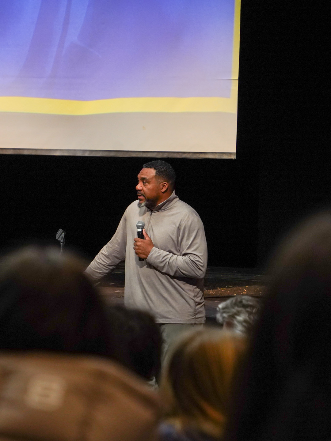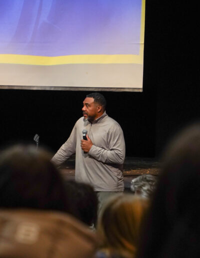 Meanwhile, Head of School Dr. Calleroz White spoke during the Upper School Assembly. He shared the fact that his grandfather went to a segregated school and how the many years he spent in Tanzania teaching children living in poverty revealed why we should not take our education for granted. He said his focus of the day was partnership—the answer to “What makes a community come to a place where we can be in one space together?” Dr. CW discussed the iconic March on Washington from a slightly different lens—shining a spotlight on other faith leaders who spoke that day about the fight for social justice, including Rabbi Joachim Prinz, Rabbi Abraham Joshua Heschel, and Father John LaFarge Jr. He then urged students to take our mission to heart and “look at this world as something you can make better.” Dr. CW concluded with words of the late statesman and civil rights leader John Lewis, whom he’d had the opportunity to meet: “When you see something that is not right, not fair, not just, you must have the courage to stand up, to speak up, and find a way to get in the way.”