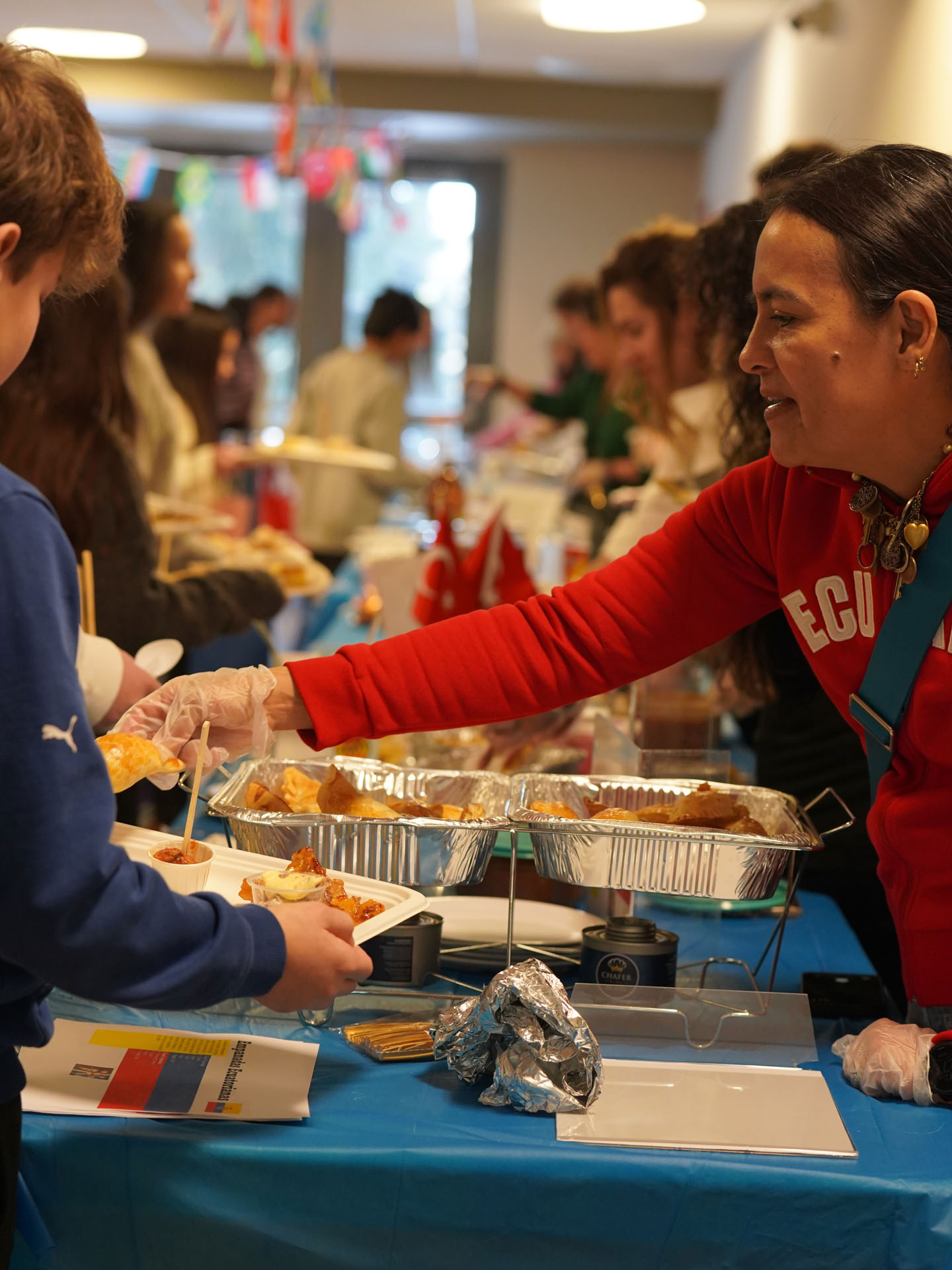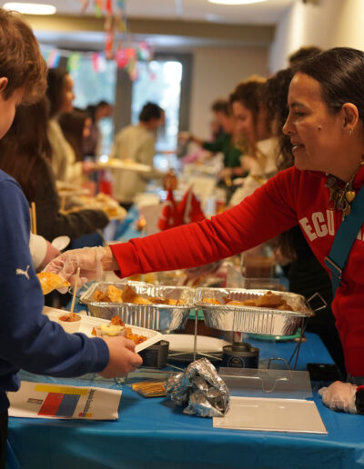 In a culmination of the Sixth Grade Food & Identity Unit that began two weeks ago, students recently presented their hard work across their MESH (Math, English, Science, and History) classes to D-E families in Hajjar Auditorium. The presentations were followed by a food-tasting celebration that was graciously and generously facilitated by our Parents’ Association Class Rep parent volunteers. The students’ presentations included essays and slideshows about meals that are culturally significant to individual students, data graphs based on their respective food logs, and infographics representing the origin of ingredients. The unit showed how foods can serve as a bridge between different cultures. This was further demonstrated during the festival in the Wharton Lessin Dining Hall, featuring a myriad of multicultural bites. Congrats to our Middle School (MS) for celebrating diversity through cuisine! Kudos to all our MS faculty members and Chef Alex and D-E Dining Services team for their involvement in this cross-curricular program’s success. Finally, thank you to our D-E PA volunteers for your partnership and enthusiasm in this important MS learning opportunity.