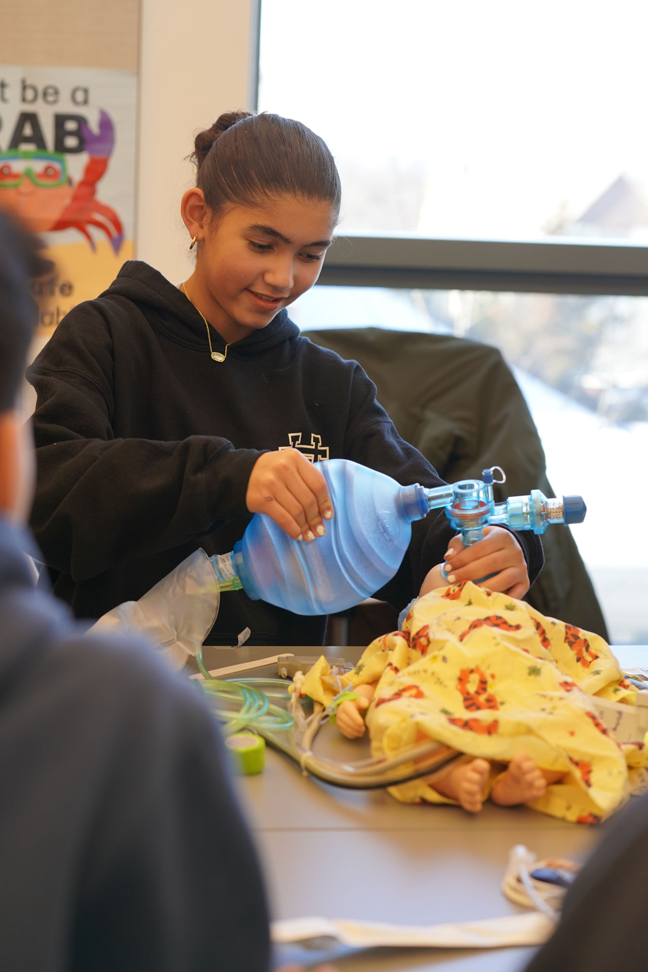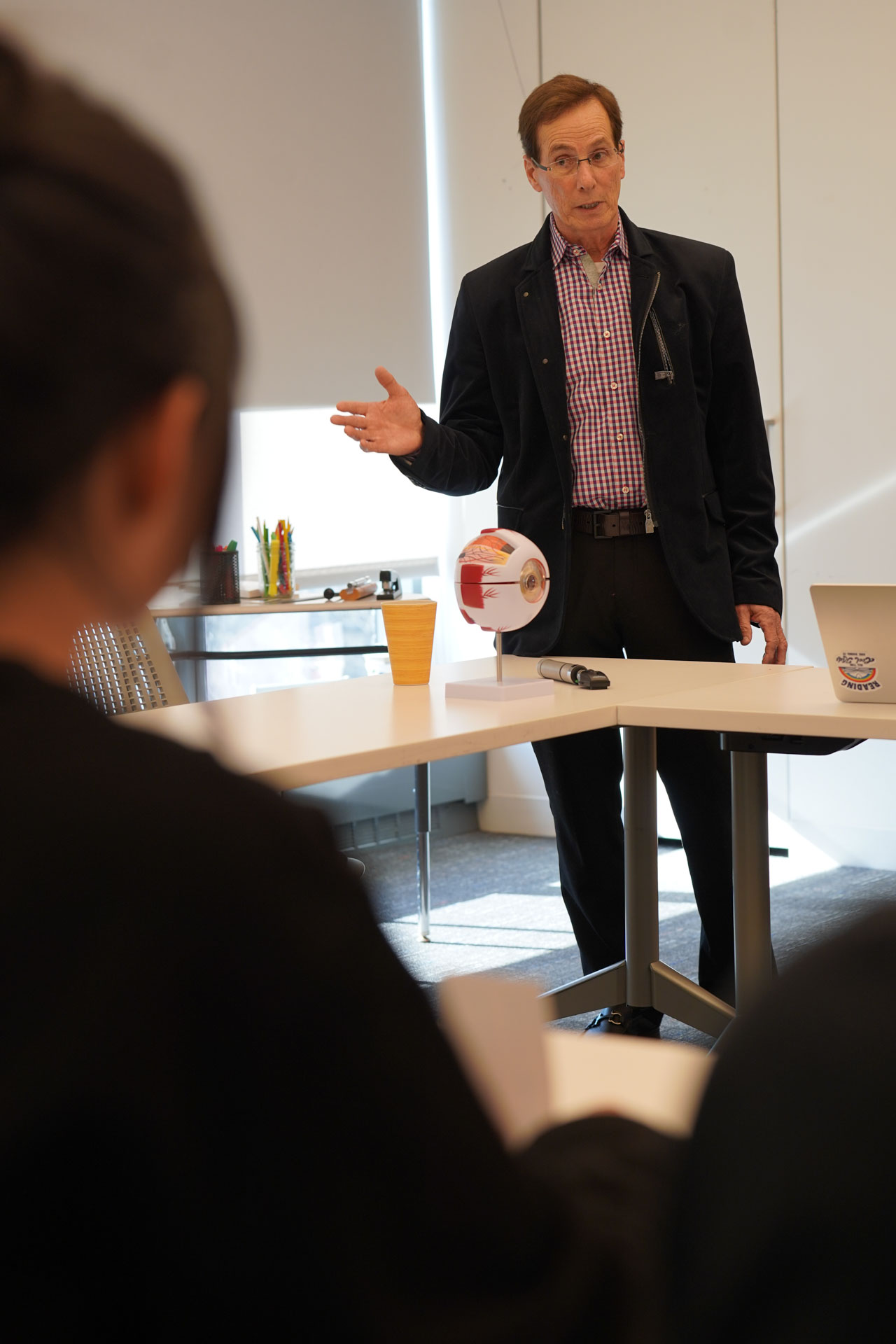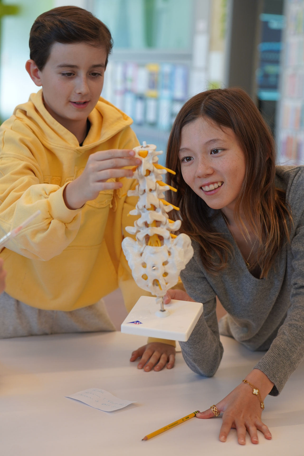 To launch its Anatomy of a Human Project, 7th grade faculty recently facilitated an Anatomy of Human Consortium, during which several D-E parents graciously took time out of their busy days in the medical field to visit the Middle School and share about their medical specialties. Dr. Robert Vitti (Ophthalmology), Dr. Michael Cho (Cardiology), Dr. Zeyad Baker (Pediatrics), Dr. Maya Fakhoury (Nephrology), Dr. Alizabeth Acevedo (Anesthesiology), Dr. Jaehon Kim (Orthopedics), and Dr. Ruby Kim (Pain Management) brought in anatomical models to assist in their interactive presentations. Students were locked in during the individual sessions and asked astute questions. “As a team, we felt this was a meaningful way for students to learn from real professionals in our community and generate excitement for the upcoming project,” said Mr. Larrowe P’30, P’32, 7th Grade Science Teacher & Team Leader. The project, which culminates in an exhibition open to all D-E families, is interdisciplinary, combining their study of body systems with literary characters, data, and historical analyses based on “The Distance Between Us,” a memoir by Reyna Grande. Kudos to our 7th graders for their rapt attention and engagement while learning about the wonders of the human body!