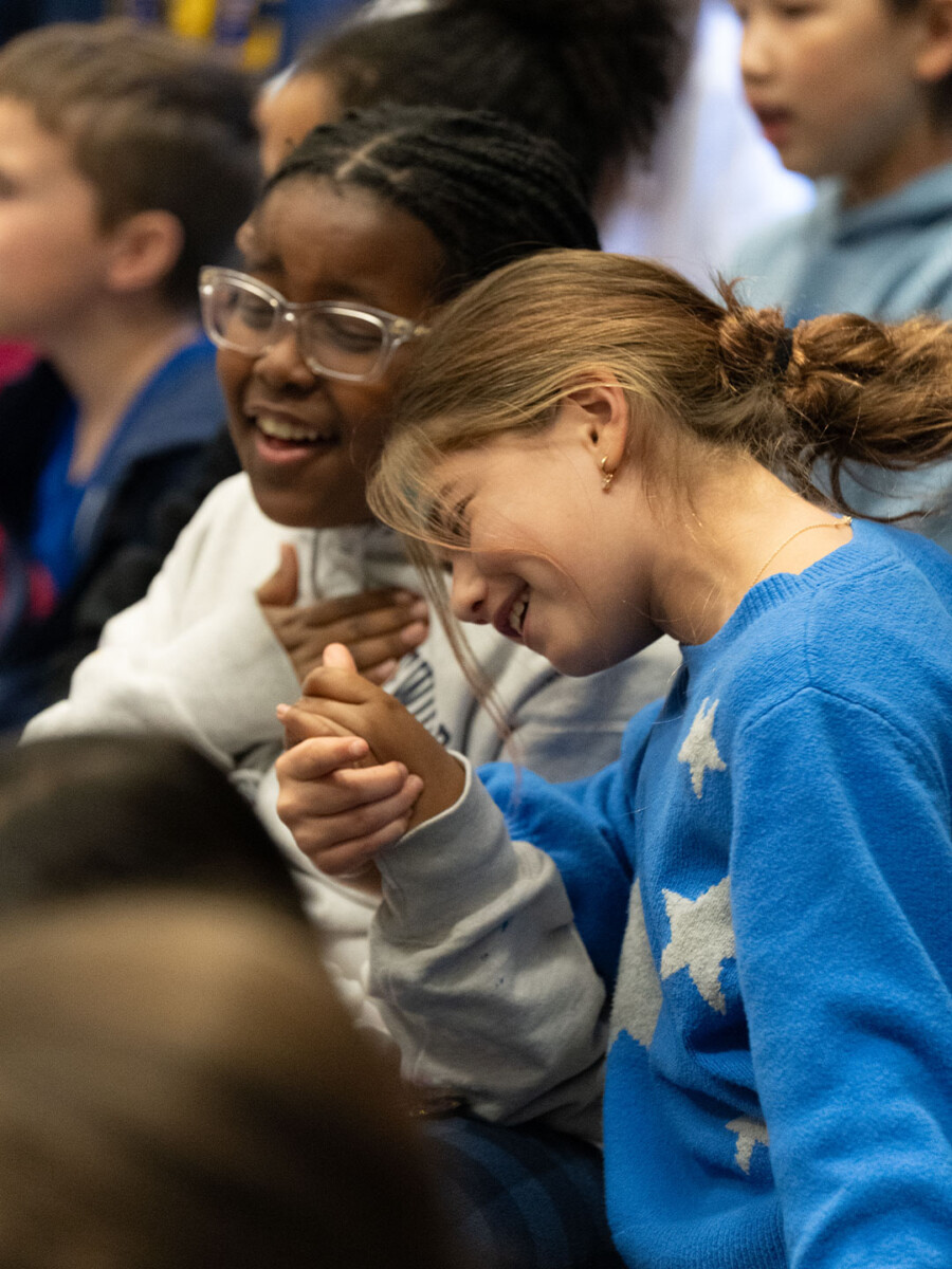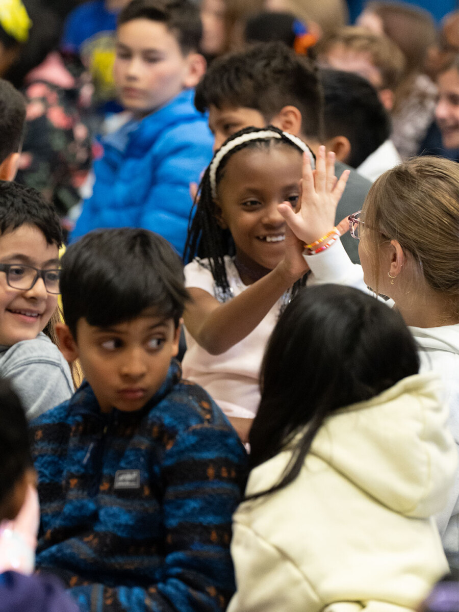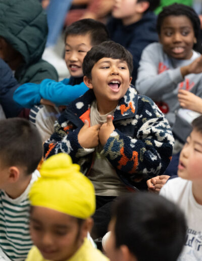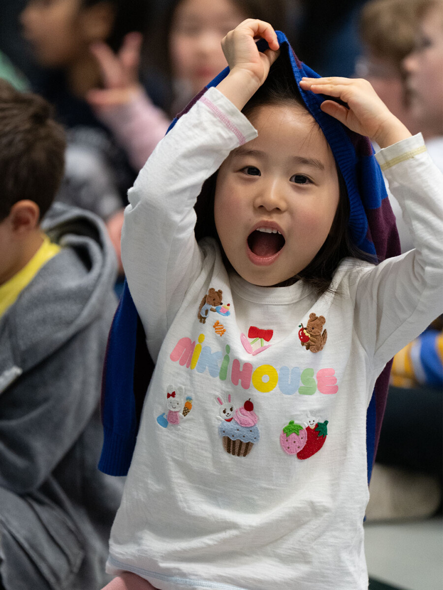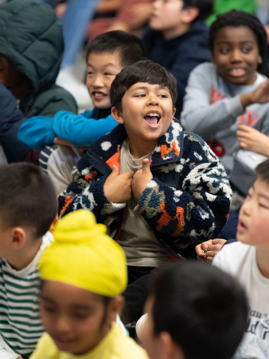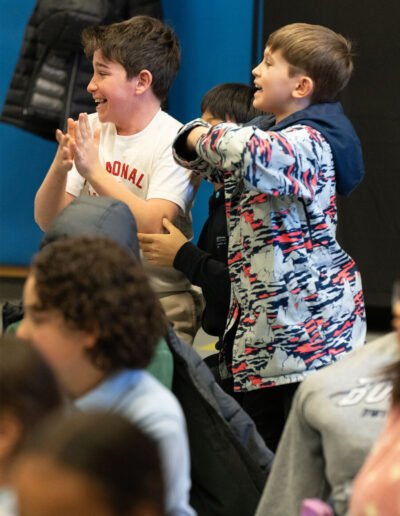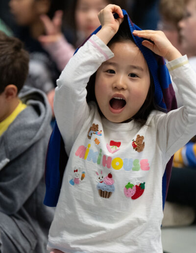 Singing it loud and proud! The first Lower School (LS) Assembly following the break was a spirited Spring Sing-Along, featuring tunes LS teachers and students have enjoyed so far this year. To kick off the event, the Parents’ Association generously arranged for the Donut Truck to provide tasty treats to all LS students, from morning through the afternoon. At the assembly, facilitated by LS Assistant Principal Ms. Madeleine Lopez and Ms. Marthe Salomon-Samedy, students first learned about the mental-health benefits of singing, and then enthusiastically sang along—and even danced—to “Golden” from “KPop Demon Hunters”; “Three Little Birds,” by Bob Marley and the Wailers; “I’d Do Anything” from “Oliver!”; “Sweet Caroline,” by Neil Diamond; “Count on Me,” by Bruno Mars; and more. An especially touching moment was when PreK 4 student Neev V. ’39 stood up to recite “The Gift to Sing,” a poem by James Weldon Johnson. The assembly ended on a high note with an announcement by Ms. Lopez about upcoming Spirit Days, voted on by Fifth Graders, on Wednesday, April 15 (Sports Day), and Friday, May 15 (Pajama Day).
