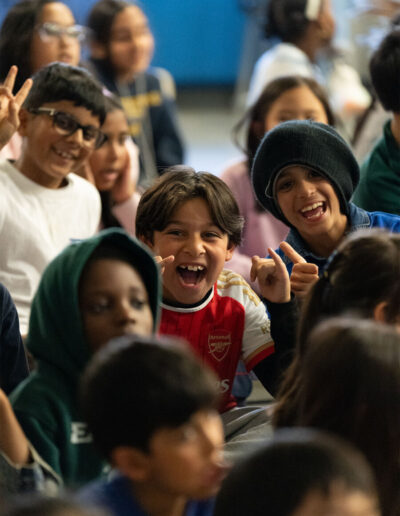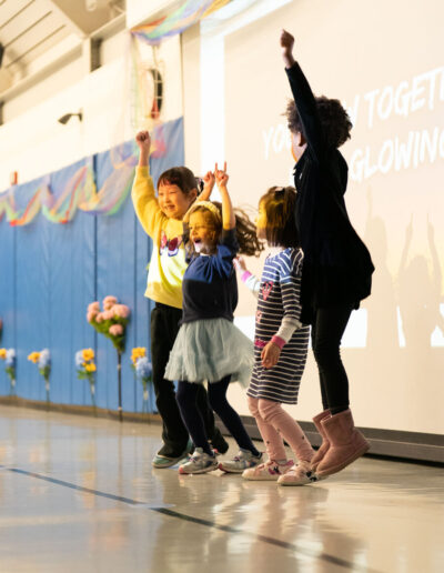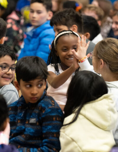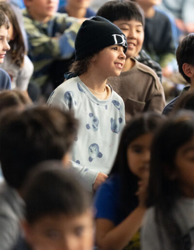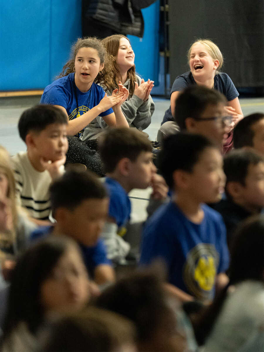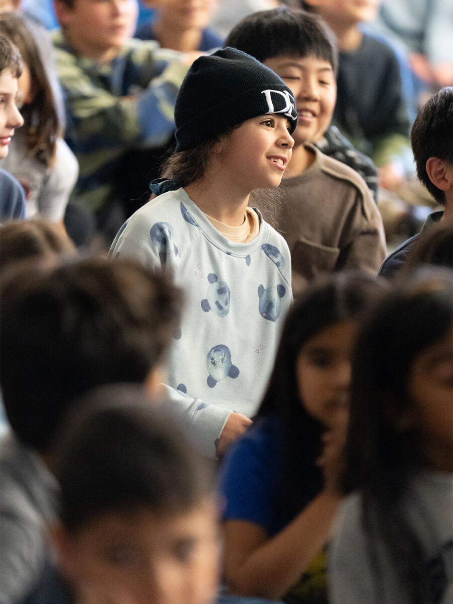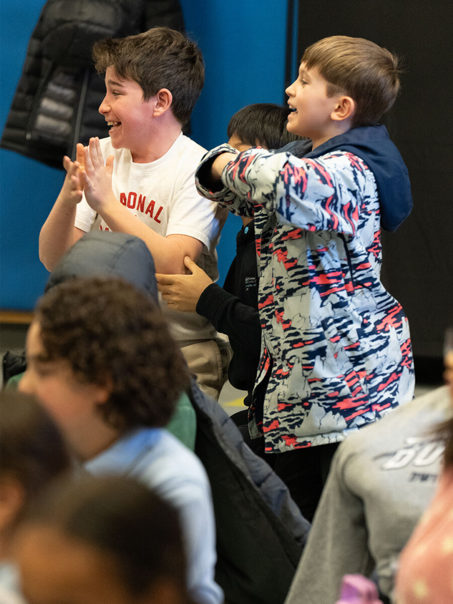 Singing it loud and proud! The first Lower School (LS) Assembly following the break was a spirited Spring Sing-Along, featuring tunes LS teachers and students have enjoyed so far this year. To kick off the event, the Parents’ Association generously arranged for the Donut Truck to provide tasty treats to all LS students, from morning through the afternoon. At the assembly, facilitated by LS Assistant Principal Ms. Madeleine Lopez and Ms. Marthe Salomon-Samedy, students first learned about the mental-health benefits of singing, and then enthusiastically sang along—and even danced—to “Golden” from “KPop Demon Hunters”; “Three Little Birds,” by Bob Marley and the Wailers; “I’d Do Anything” from “Oliver!”; “Sweet Caroline,” by Neil Diamond; “Count on Me,” by Bruno Mars; and more. An especially touching moment was when PreK 4 student Neev V. ’39 stood up to recite “The Gift to Sing,” a poem by James Weldon Johnson. The assembly ended on a high note with an announcement by Ms. Lopez about upcoming Spirit Days, voted on by Fifth Graders, on Wednesday, April 15 (Sports Day), and Friday, May 15 (Pajama Day).