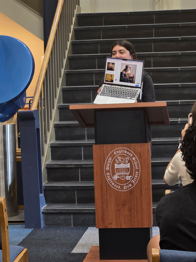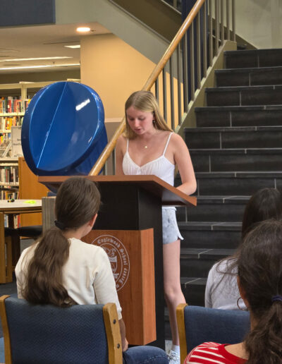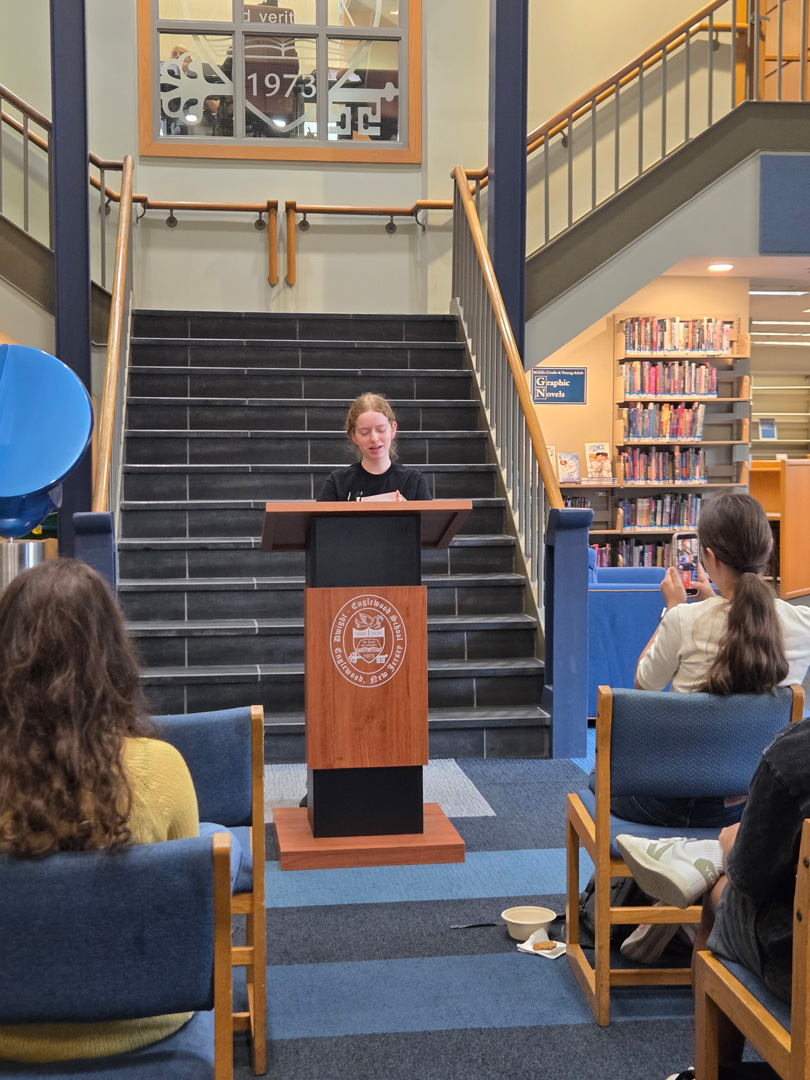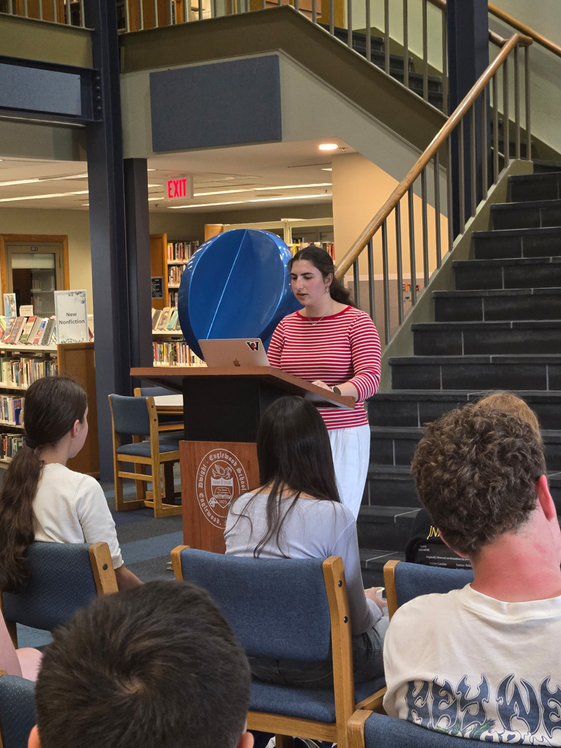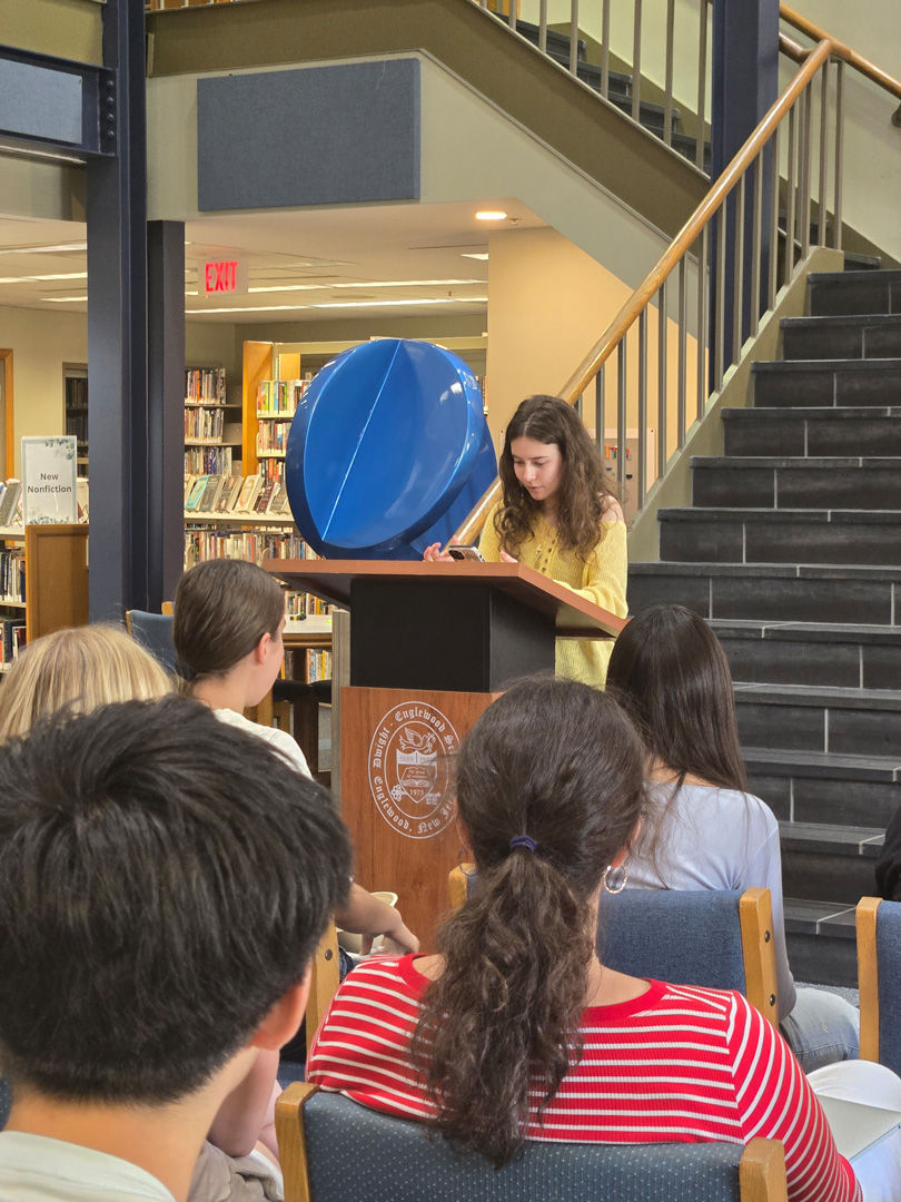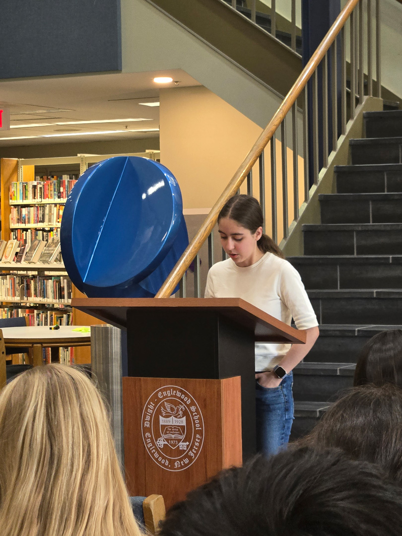 Happy National Poetry Month! In celebration, the English Department, in partnership with the Dwight-Englewood Writers (DEW) student organization, hosted Spring 2026 Write Night yesterday in The Imperatore Library, with a focus on poetry readings. Specifically, several Upper School students read original sonnets they wrote for Mr. Kosnik’s English class on themes such as memories, nature, friends, and letting go. Familiar poems were also read, including Robert Frost’s “Mending Wall.” As is tradition, D-E faculty and staff also shared their own poems. Bravo to all our amazing writers and presenters!