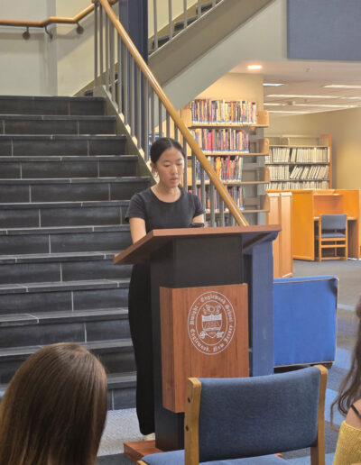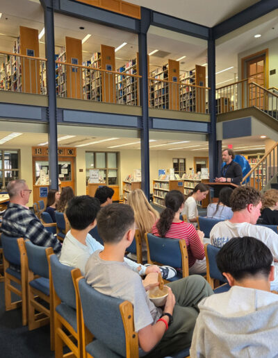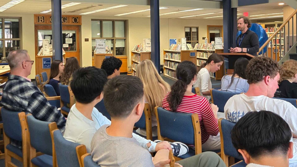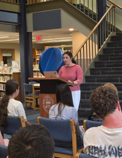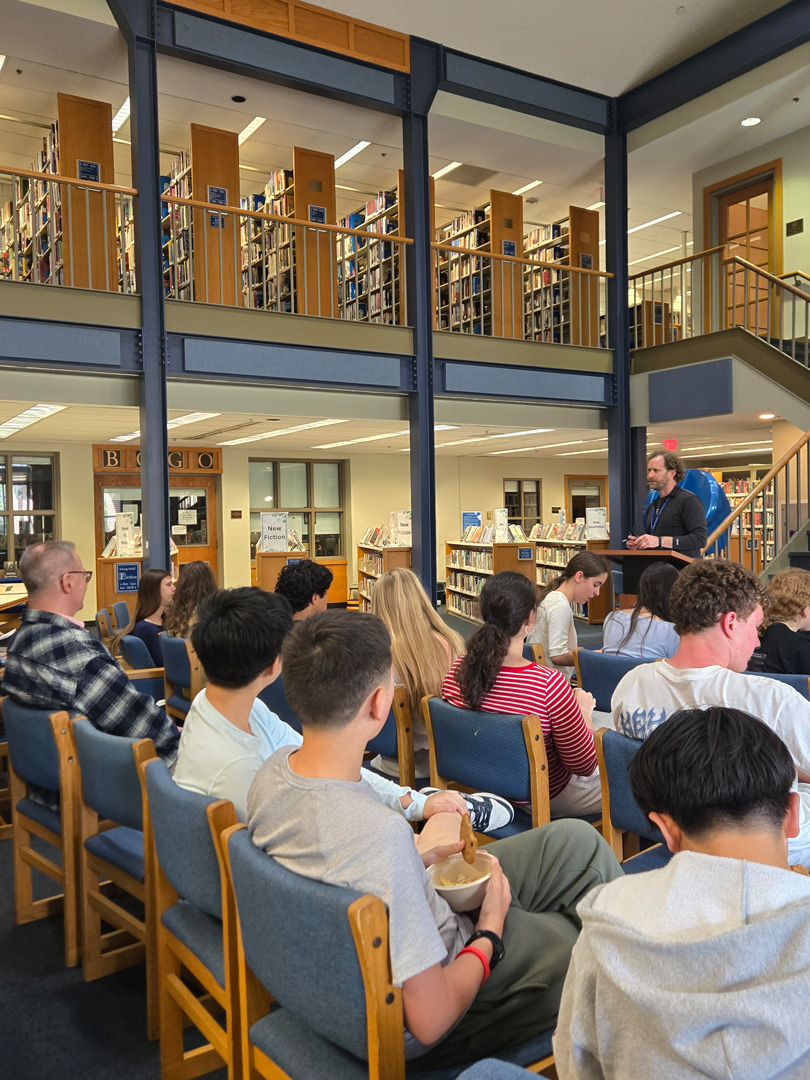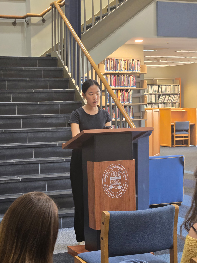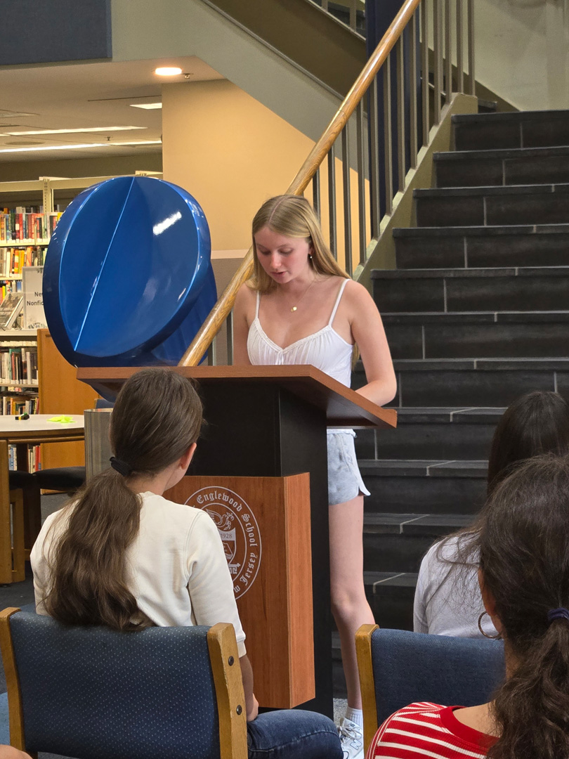 Happy National Poetry Month! In celebration, the English Department, in partnership with the Dwight-Englewood Writers (DEW) student organization, hosted Spring 2026 Write Night yesterday in The Imperatore Library, with a focus on poetry readings. Specifically, several Upper School students read original sonnets they wrote for Mr. Kosnik’s English class on themes such as memories, nature, friends, and letting go. Familiar poems were also read, including Robert Frost’s “Mending Wall.” As is tradition, D-E faculty and staff also shared their own poems. Bravo to all our amazing writers and presenters!