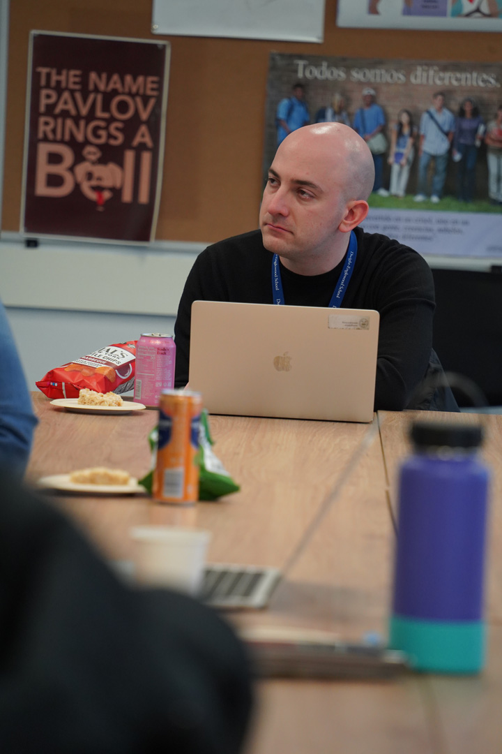 The PD opportunities continued this month with another D-E Tech Liaisons session on using AI tools to design human-centric lessons; designing study strategies using the Universal Design for Learning (UDL) framework, presented by US Learning Specialist David Wallin and MS Learning Specialist Julie Luchs P’16, P’19; and a presentation by Dr. O’Malley on the science of happiness.