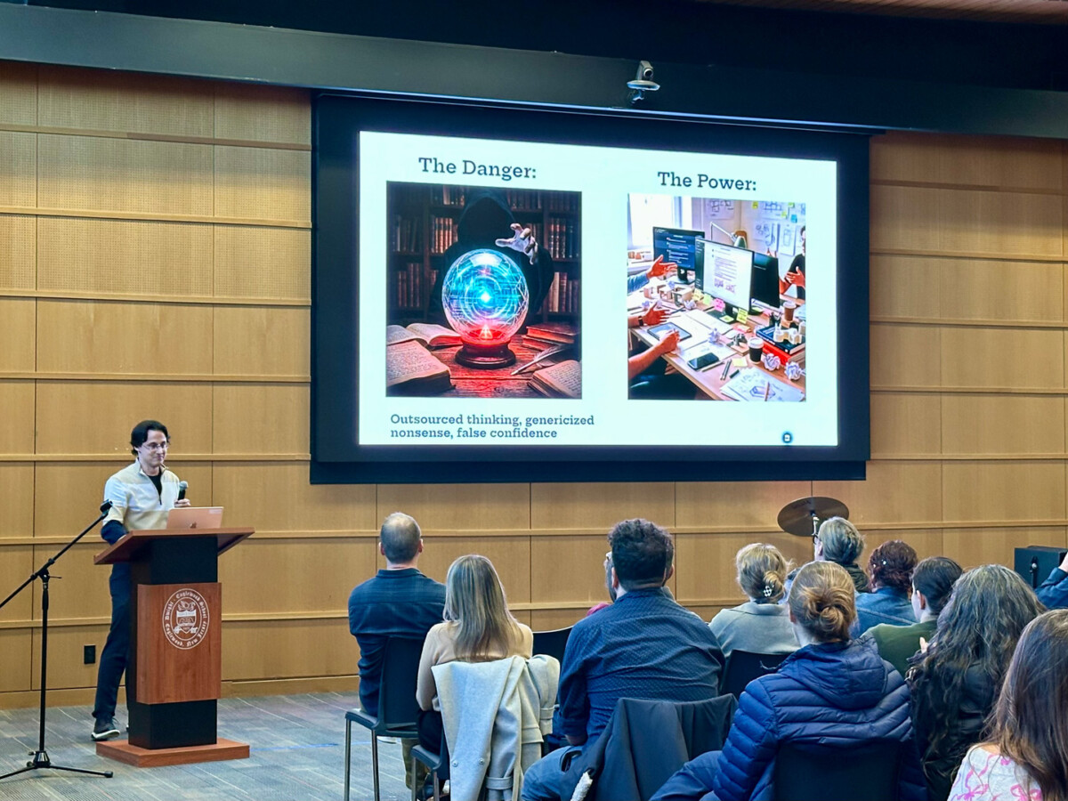 Sylvie Yao ’27, one of the student panelists, noted that AI tools can provide deeper learning if you know how to input clear and descriptive prompts. In addition, she added, “AI can see where you’re struggling and help you through those problems.”