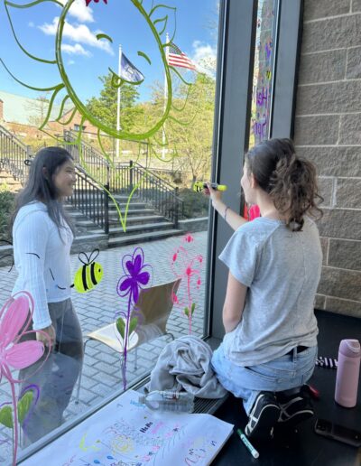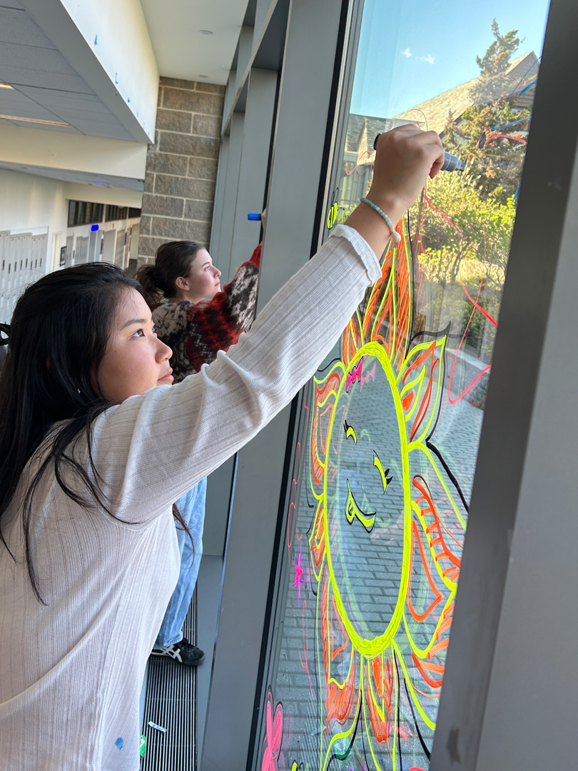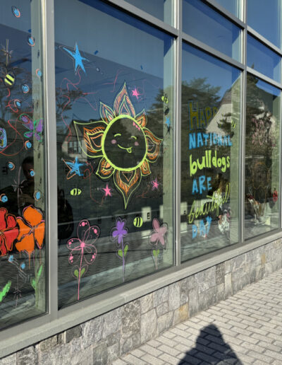 In what has become a D-E tradition for Bulldogs Are Beautiful Day, members of the student organization Art in Action, advised by Art & Design Faculty Rachel Brusky, wielded window-painting markers for a vibrant spring refresh of the Campus Center windows. These beautiful designs are sure to warm the hearts of our Bulldogs right here from every division!