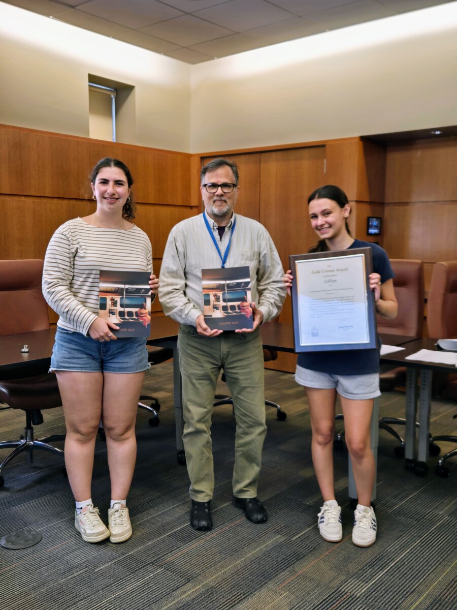 Kudos to Calliope 2025 for receiving national recognition by earning its 1st Gold Crown Award in 43 years! This is the highest award given by the Columbia Scholastic Press Association (CSPA) to arts-literary magazines. “This has been the most incredible news,” said Steve Petkus, Magazine Advisor and MS/US Librarian. “I’ve been an advisor to this club for over two decades, and we’ve gotten a handful of Silver Crowns in that time, but to get Gold is something special indeed.” The editors of Calliope 2025 are recent D-E graduates Red Nochomovitz ’25, Rebecca Kreynin ’25, and Casey Law ’25. In praising the magazine, the Crown judges wrote: “Dwight-Englewood School’s Calliope magazine leads with bold art and punchy photography that elevate the visual experience as the reader first meets these pages. The writing is equally strong and demonstrates a breadth of styles and originality.”