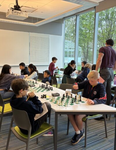Our 2nd Annual D-E 360° ChessFest is in the books! More than 70 players from all over the region joined us in the STEM Building, including our own D-E Bulldog Chess Team. The daylong event balanced intense matches with casual blitz play with Grandmaster Mac Molner and other coaches. For added fun, there was also face painting and balloon-animal-making, courtesy of Summer the Clown. “Families got a ‘Grandmaster’ view of the world of chess with a special presentation on the recent FIDE Candidates Tournament, [an international chess federation],” said Dr. Sherronda Brown P ’31, ’31, Director of D-E 360°. “Such a treat for our budding chess masters.” We’re already looking forward to next year! Next up, our Lower School Chess Team will travel to Baltimore May 1-3 with Coach Mac to represent D-E at the 2026 National Elementary (K-6) Chess Championship. Let’s hear it for our chess stars! Photo Credit: Washington Young